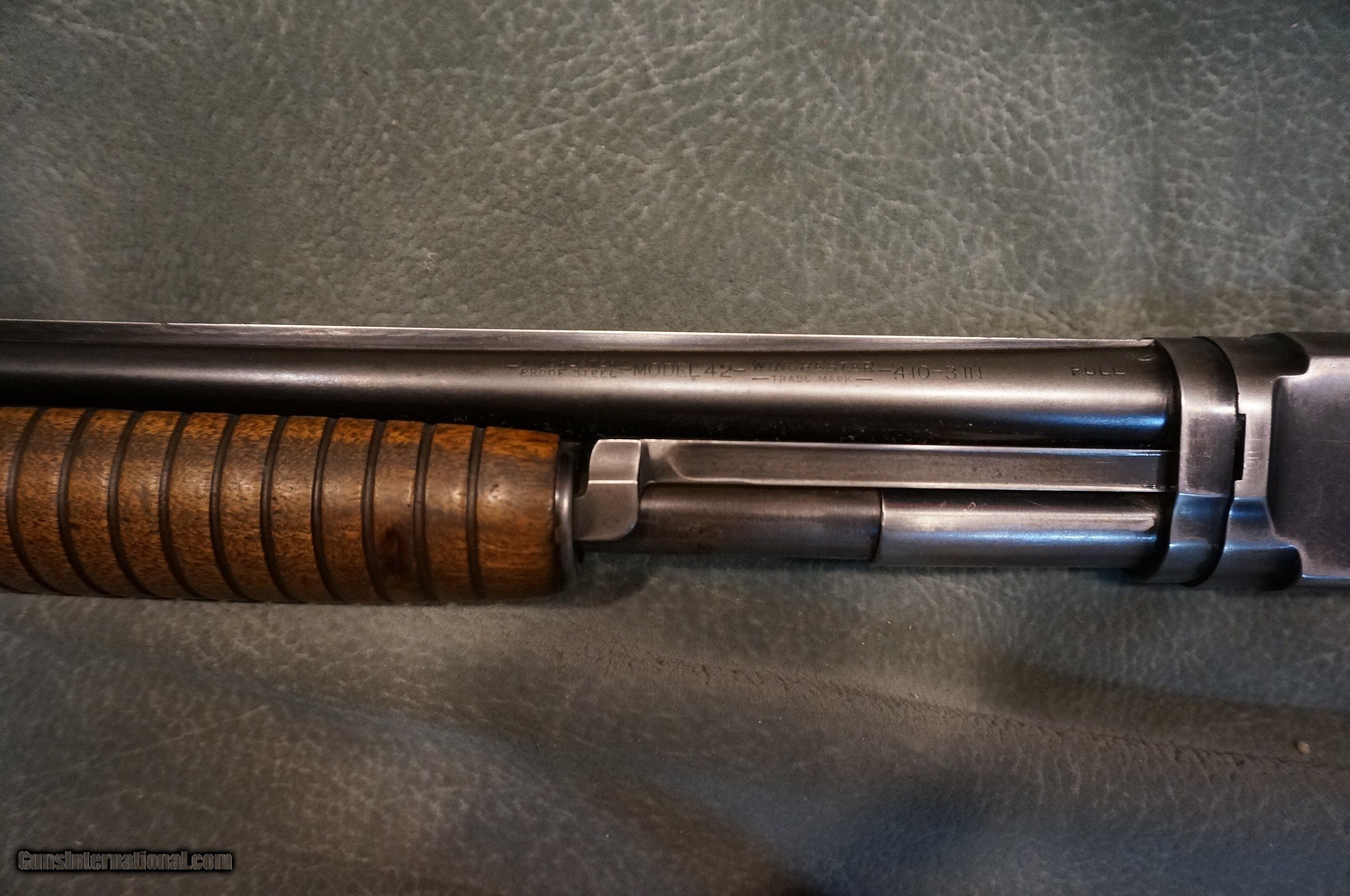 Description: Winchester Model 42 410ga 3" prewar 28" full choke,solid rib,serial #24795 made in 1936,original condition with good bluing on the barrel and receiver. GUN COLLECTIONS WANTED FOR CASH! We buy, sell, consign and trade new and used firearms.We will pay finders fees and travel for large collections. This is our 45th year in business. We offer 90 day layaways with 20% down. No return on layaways. Firearms will need to be transferred through a FFL dealer. Prices reflect a cash discount. There will be 3% added to credit card sales. We trade for gold and silver. THANK YOU! SOLD |