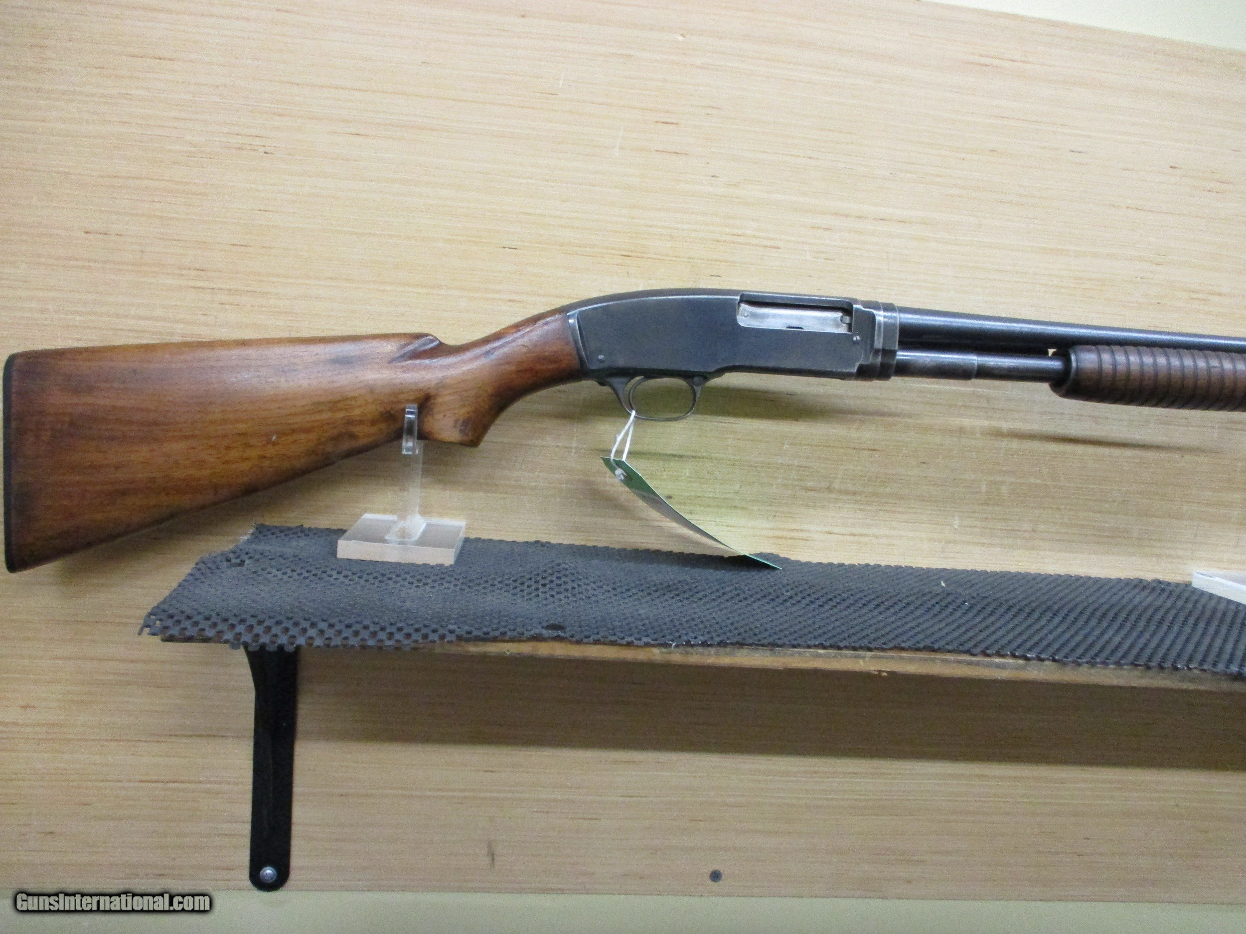 Description: CONSIGNMENT USED FAIR-GOOD CONDITION WINCHESTER MODEL 42 PUMP .410 GAUGE -- 28" MOD BARREL -- 3" CHAMBER HAS SOME PITTING ON BARREL -- BORE IN GOOD CONDITION MADE IN 1947 PRICE SET BY OWNER NOT NEGOTIABLE ****PLEASE CALL IN THE WITH THE SELLER’S INVENTORY NUMBER IF INQUIRING ABOUT A FIREARM****** WE DO NOT SHIP FIREARMS AND/OR FIREARMS’ PARTS OUT OF THE 50 UNITED STATES, SO DON’T ASK—YOU NEED TO KNOW IF FIREARM IS LEGAL FOR YOUR STATE PRICE REFLECTS PAYMENT BY MONEY ORDER / CASHIERS CHECK. A 3% PREMIUM IS ADDED FOR CREDIT CARDS. WE DO ACCEPT PERSONAL OR BUSINESS CHECKS, BUT THERE IS A GRACE PERIOD OF 10 BUSINESSS DAYS ON THEM. Shipping is $40 for handgun and $30 for long gun. Shipping to Alaska and Hawaii will be more based on weight of firearm. USPS SHIPPING IS HIGHER. WE DO OFFER LAYAWAY PLANS FOR 30,60, OR 90 DAYS. THERE IS A $5.00 CHARGE FOR EVERY 30 DAYS ITEM IS ON LAYAWAY. WE ALSO REQUIRE A 20% DOWN PAYMENT ON TOTAL OF LAYAWAY SALE. LAYAWAYS ARE NON- REFUNDABLE. HERE IS HOW THIS PROCESS WORKS. YOU WOULD CALL US AT 540-337-9218 WITH LISTER # TO PURCHASE THE GUN. THEN ONCE I HAVE RECEIVED PAYMENT AND AN FFL (FEDERAL FIREARMS LICENSE) FROM A LICENSED DEALER IN YOUR AREA OF YOUR CHOICE. WE WILL THEN SHIP THE GUN TO THEM. YOU WOULD THEN PICK UP THE GUN AT YOUR LOCAL DEALER AND DO PAPER WORK THERE. Please have your FFL Dealers contact information when you call. DOMINION OUTDOORS 15 ANGELA COURT FISHERSVILLE, VA 22939 540-337-9218 540-337-2422 fax M – F 9 a.m. to 6 p.m. ETZ Sat 9 a.m. to 4 p.m. ETZ ****PLEASE CALL IN THE WITH THE SELLER’S INVENTORY NUMBER**** ***PLANO SINGLE RIFLE HARD CASES AVAIABLE FOR PURCHASE $25.00 WITH THE PURCHASE OF A FIREARM** *** Online prices compared to in store prices will vary. *** SOLD |