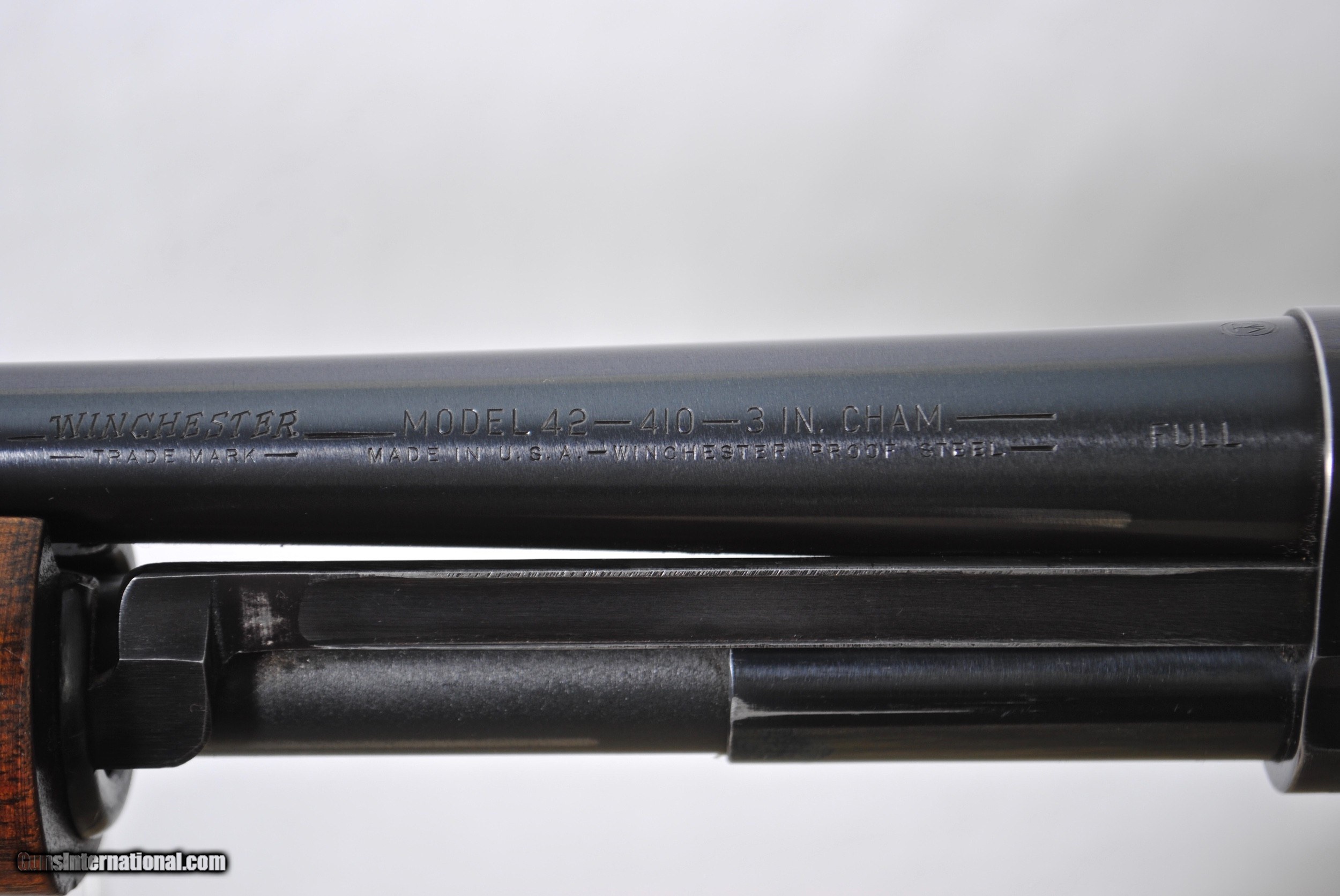 Description: Here is a Winchester Model 42 Pump in 410 with great original condition. Original blue at 99%, wood finish at 98%. Barrel is 26" with full choke. Chamber is 3". Mirror bore. Fine functioning. LOP is 14". Weight of gun is 5 LBS 15 OZ. Great Christmas present. Shipping and insurance is $40. For inquiries please call Guy - 407-721-3748 SOLD Curio/Relic: Yes |