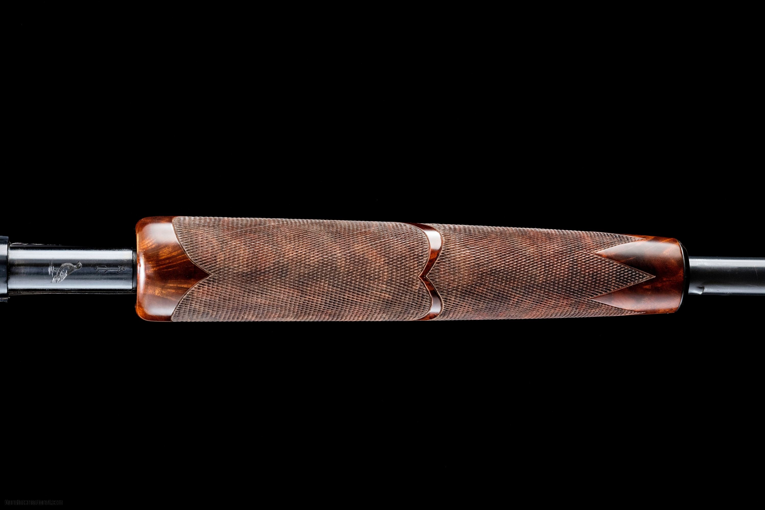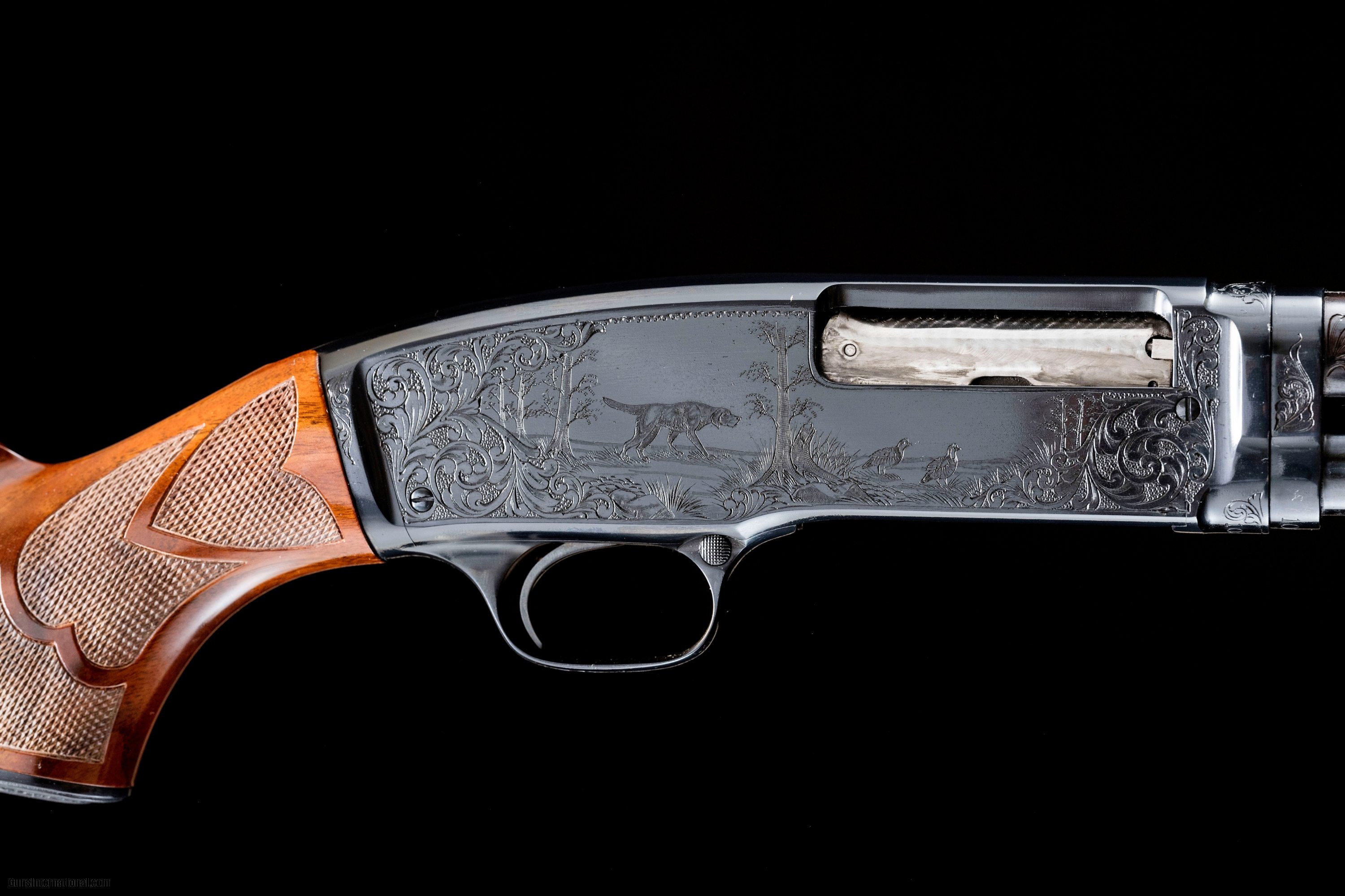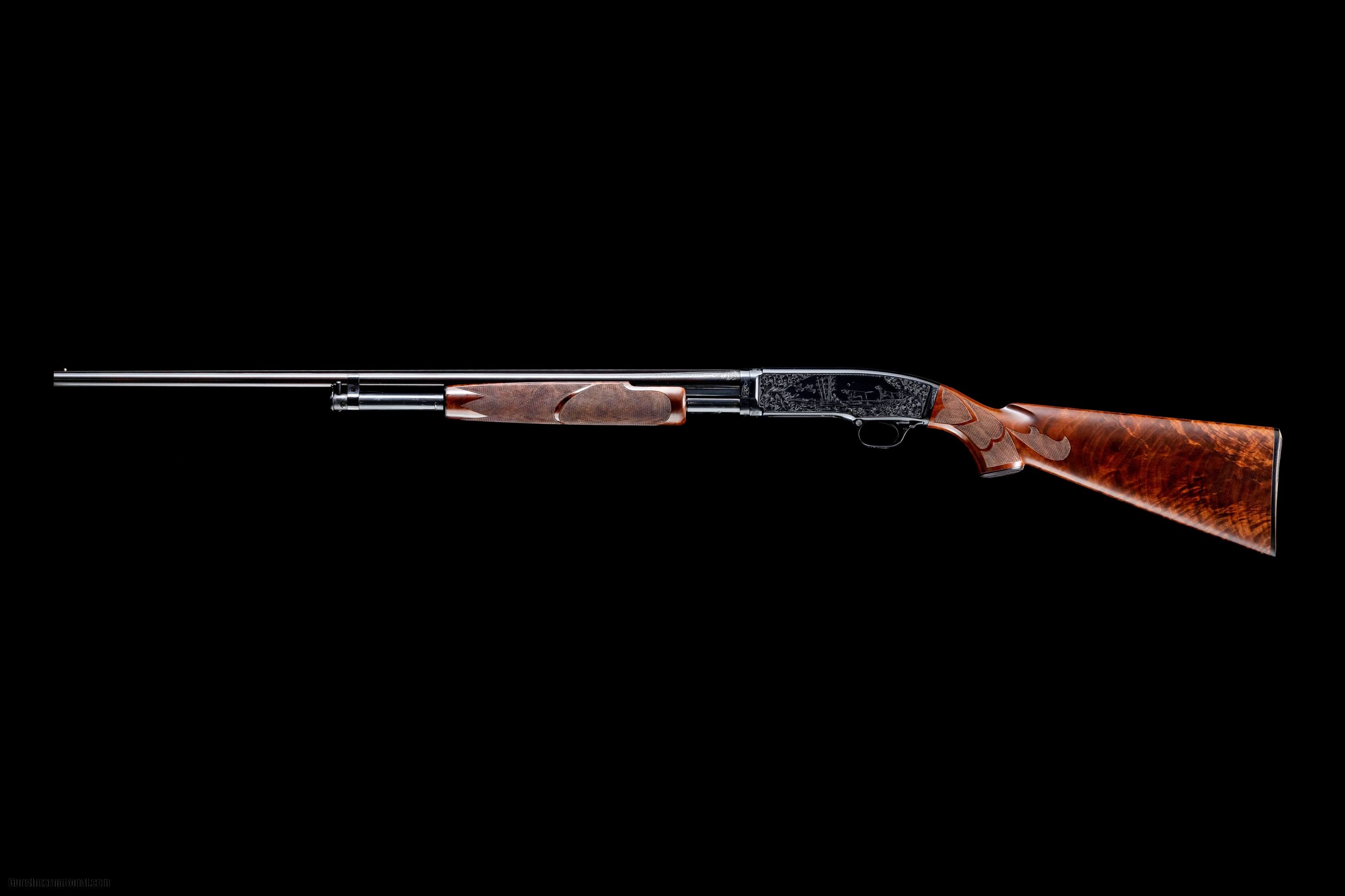 Description: Designed by William Roemer and introduced in 1933, the Model 42 Slide Action Shotgun was chambered exclusively for .410 gauge in 3? and 2-1/2? shells. The Model 42 was produced from 1933 thru 1963, with a production of about 160,000. Referred to as “Everybody’s Sweetheart”, variations include: Standard Grade, Deluxe Grade, Trap Grade, Skeet Grade and Pigeon Grade. Various chokes, barrel lengths, plain barrels, solid ribs, ventilated ribs, engraving patterns, and checkering patterns were offered. SOLD Manufacturer: Winchester Model: Model 42 Caliber Info: 410 Barrels: 27 Triggers: Sinlge Gauge Info: 410 Stock: 1 Stock Heel: 2-1/4 Stock Cast: 1-1/2 LOP: 15 Rib: Vented Weight: 7.8 Chokes: Fixed |