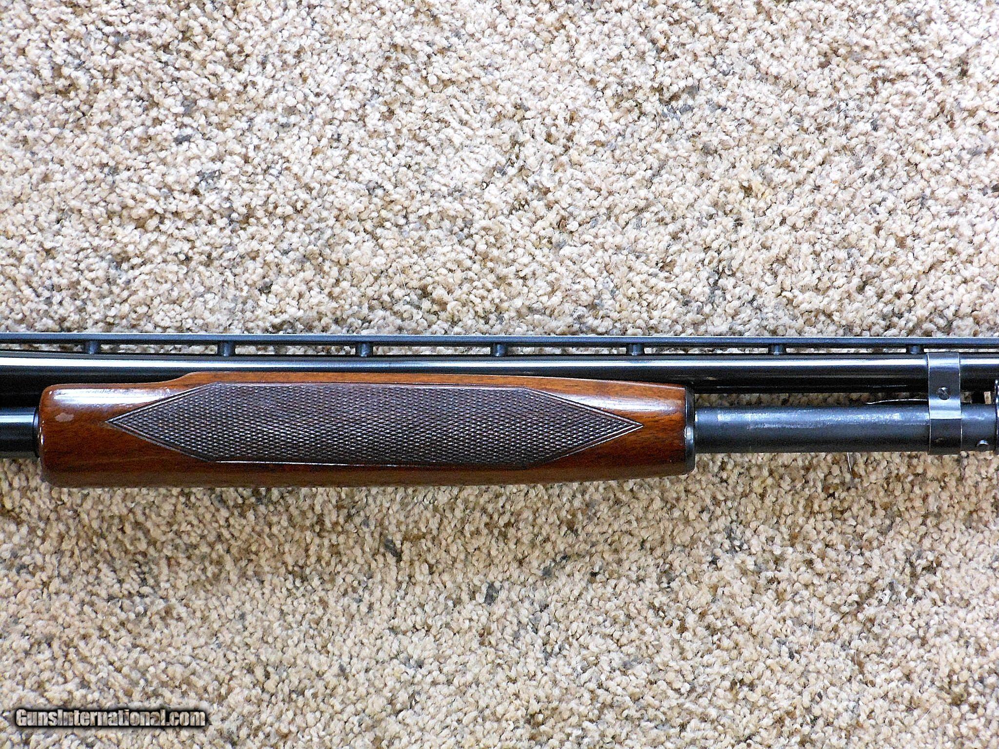 Description: This Winchester was produced in 1961. The shotgun's serial number is 147995. It has the straight round post for the rib. This is a second variation of the rib posts. This style is the hardest of the posts to find on the vent rib. It falls into the correct serial range for this style of post. The shotgun is choked Modified. The ribbed barrel is 26 inches. The takedown is tight with no play. The action works smoothly. The original factory bluing would rate a 98% or better. The wood would rate the same. The buttplate is original to the stock. The bore is bright and clean. This shotgun has the standard 3 inch chamber. There is very light wear under the pump handle from operating the slide. This is a very fine condition Skeet grade in a unusual choke and the rare factory vent rib. This is certainly a collectors dream shotgun! Search for hlvfineguns on google for more details. Curio&Relic WLL Consn. (2) F. No. 367 -18 SOLD Curio/Relic: Yes Manufacturer: Winchester Model: 42 Serial Number: 147995 Condition: 98% Overall Bore Condition: Minty Barrels: 26 Inch Barrel Type: Vent Rib Action: Pump Gauge Info: 410 Stock: Pistol Grip Butt Pad: Factory LOP: 13 3/4 Inches Rib: Vent Rib Finish: Blued Manufacture Date: 1961 Chokes: Modified |