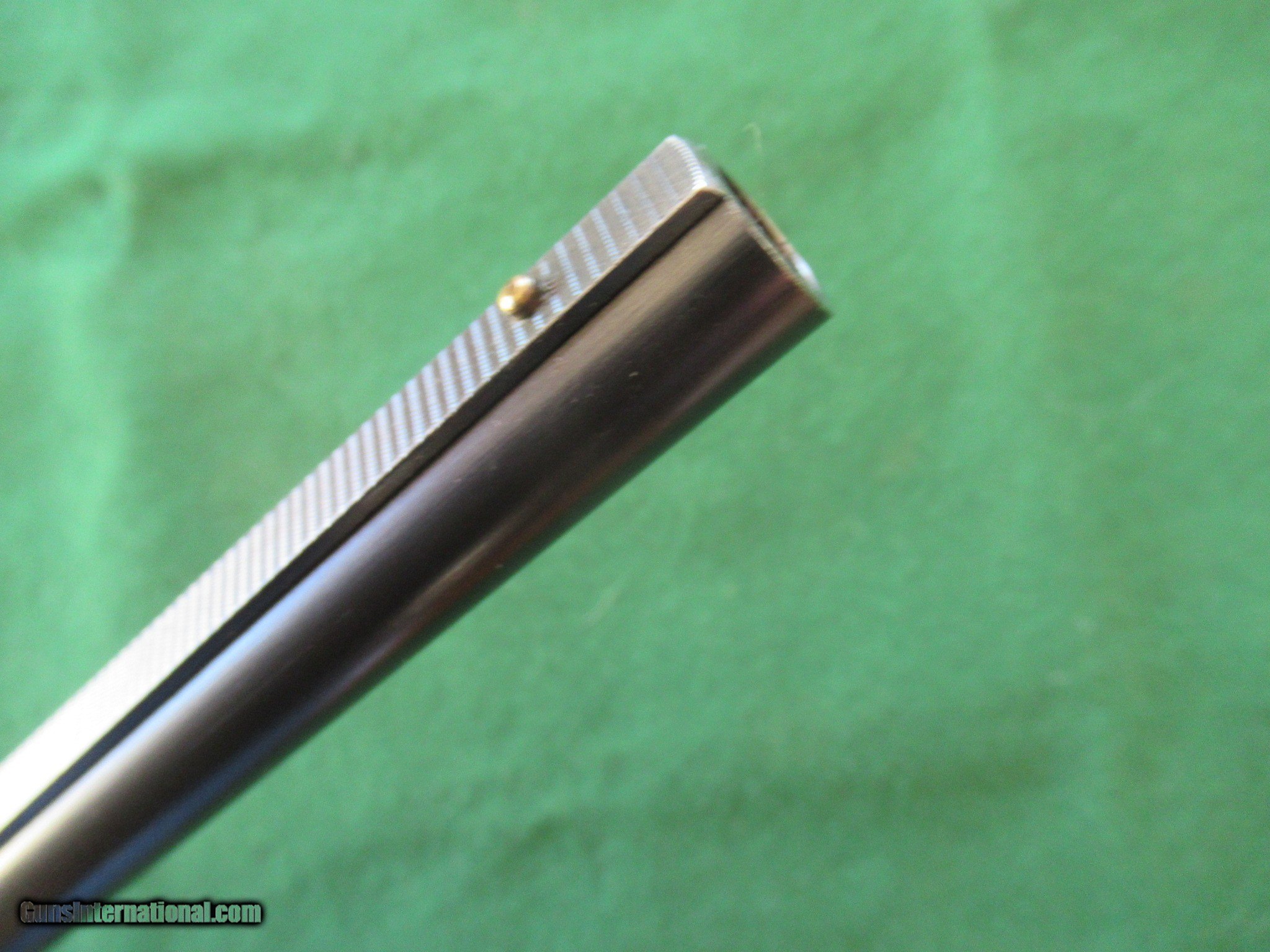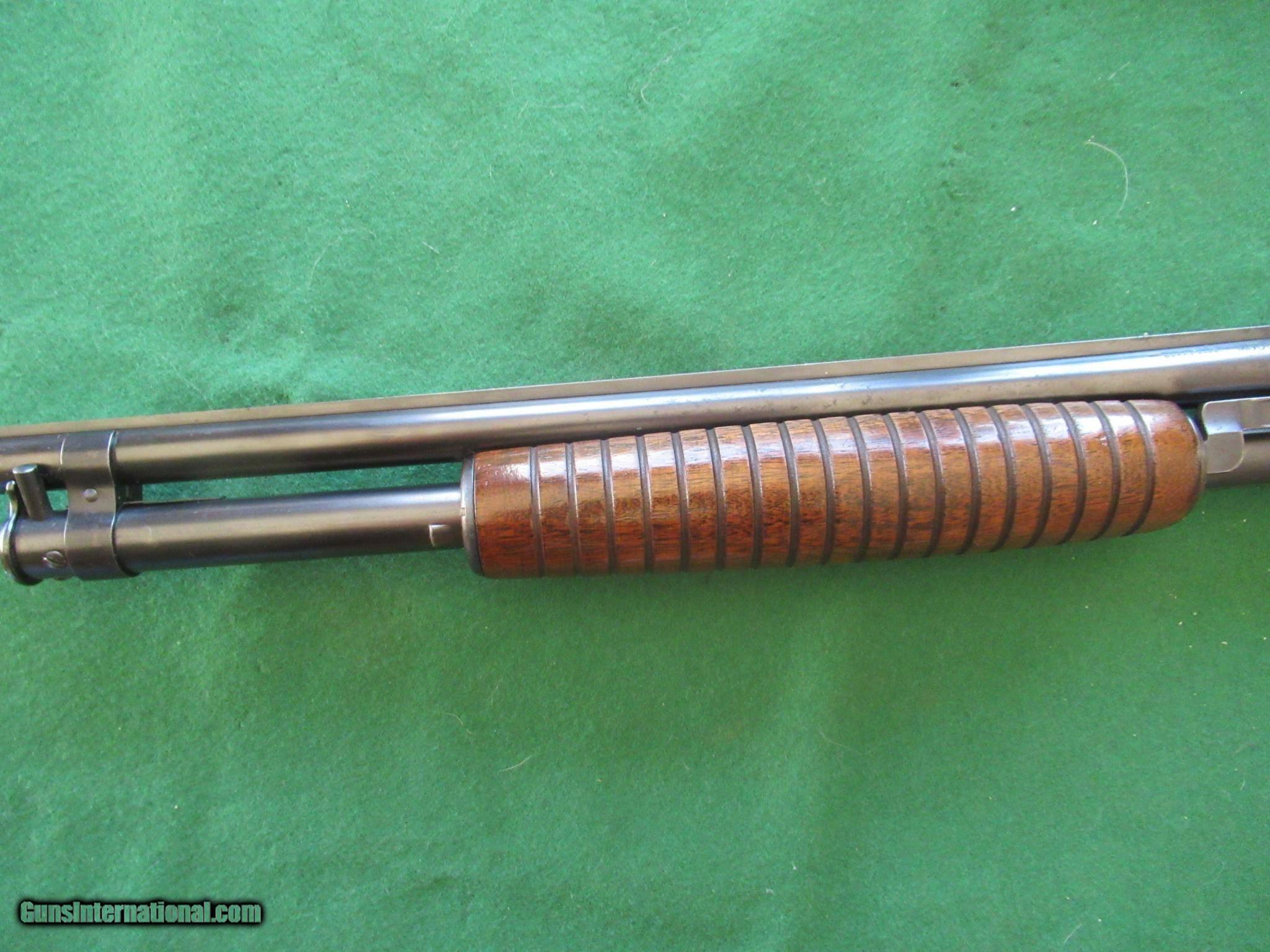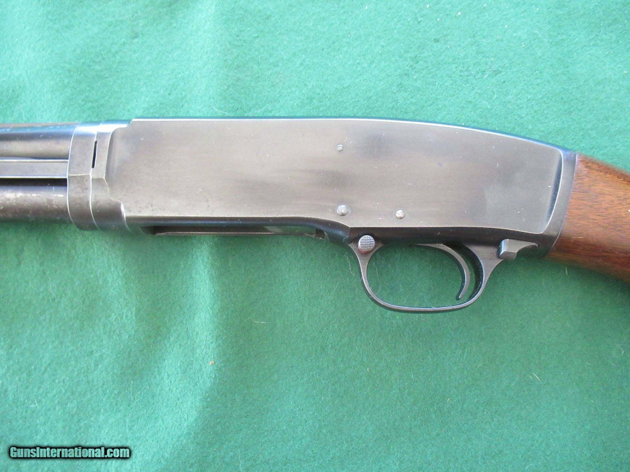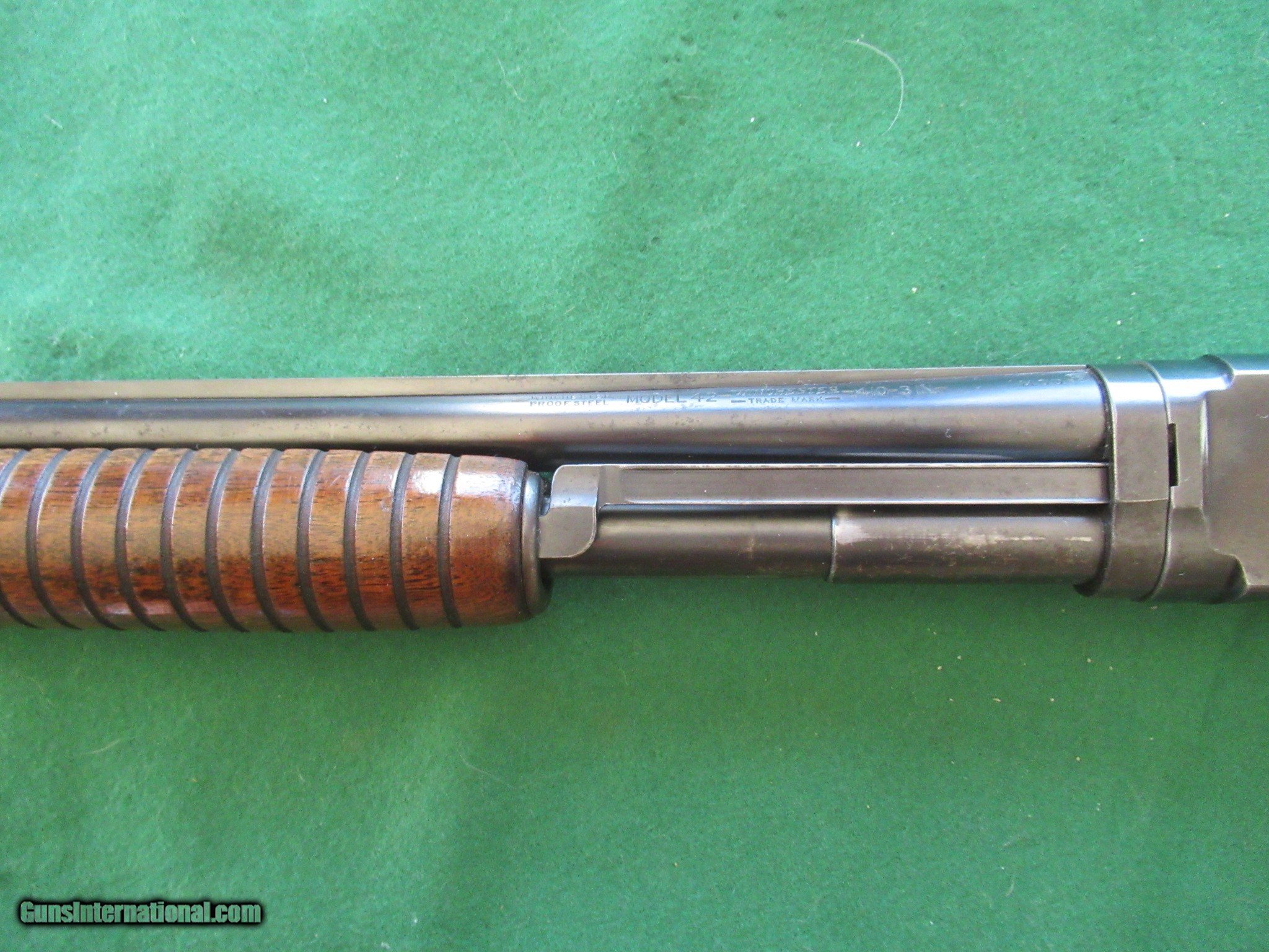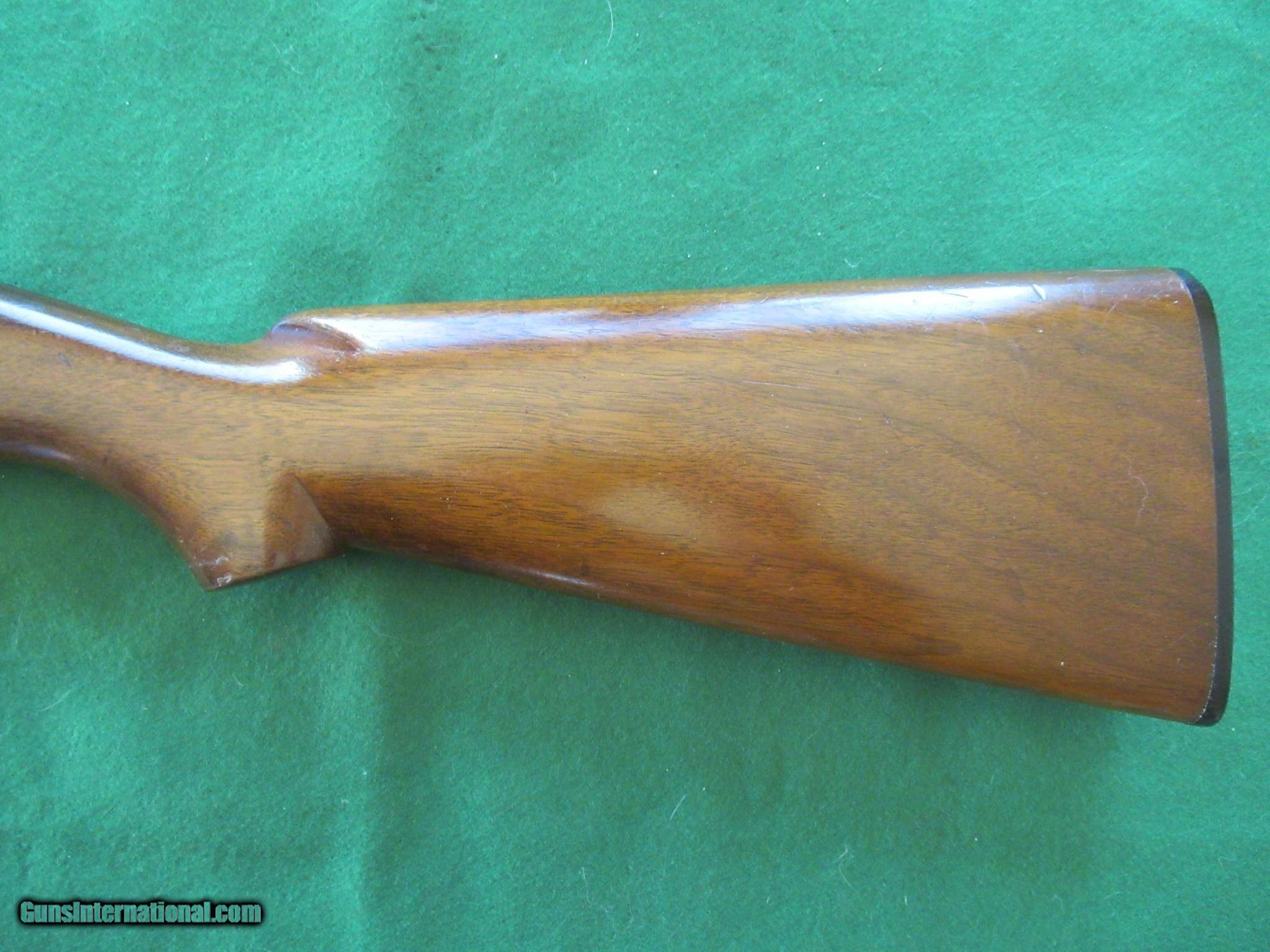 Description: Winchester pre-war Model 42 in 90%+ original condition. 26" barrel chambered for 3" shells with a modified choke. The solid rib is in excellent condition with a gold front bead. The barrel markings are correct and well struck. The Bore is like new. It chambers and feeds 410 shells flawlessly. There is cycling wear and some handling marks on the wood with a scratch on the left side of the buttstock that does not show well in the photos. 13 3/4" LOP over an original hard rubber butt plate. This is a great find for the Winchester collector who prefers unmodified and original weapons. Model 42s in this condition are hard to find and especially with a solid rib and this will make a nice addition to your collection. Please call Raff at 760 497 7836 if you have any questions. Thank you for looking and good luck to you! SOLD Curio/Relic: Yes Shotgun Gauge: .410 Gauge Manufacturer: Winchester Model: 42 Serial Number: 32805 Barrel Length: 26 Chambers: 3 Condition: Excellent Metal Condition: 90% Wood Condition: 90% Bore Condition: Excellent LOP: 13 3/4 Rib: Solid Finish: Blue Sights: Gold Bead Manufacture Date: 1938 Chokes: Modified Item Location: Arizona (AZ) |