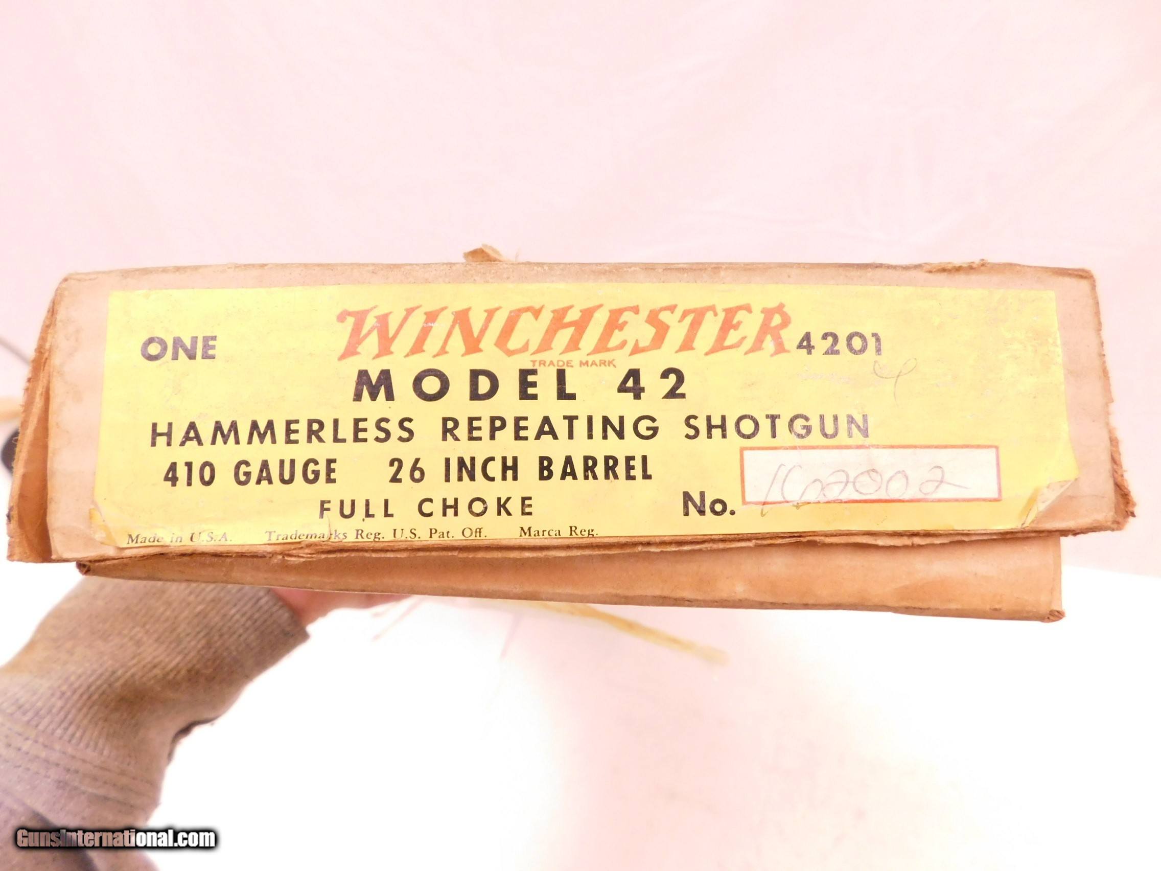 Description: Winchester model 42, 26" barrel, full choke, field gun manufactured in 1962. Appears to be new and unfired with the original box. Price $2500 and $45 shipping and handling. SOLD Manufacturer: winchester Caliber Info: 410 Condition: as new |