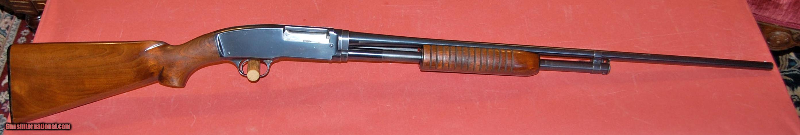 Description: Winchester pre 64 model 42 field grade 410ga.Built in 1951,this gun retains at least 95% of the original blue finish.The only blue wear being light edge wear with the remaining blue bright and clean.The wood retains 98% of the original finish with only a few minor handling marks.The gun has a 28" plain barrel with the desireable modified choke.The gun is chambered for 3" shells.This is a great all original example of the model 42 that is nice enough to collect but not too nice to shoot.A great dove or quail gun.C&R eligible. SOLD Curio/Relic: Yes Manufacturer: Winchester Model: 42 Serial Number: 87745 Bore: excellent Chambers: 3 Wood Condition: excellent Bore Condition: excellent Action: pump Gauge Info: 410 LOP: 141/8 Manufacture Date: 1951 Chokes: modified |