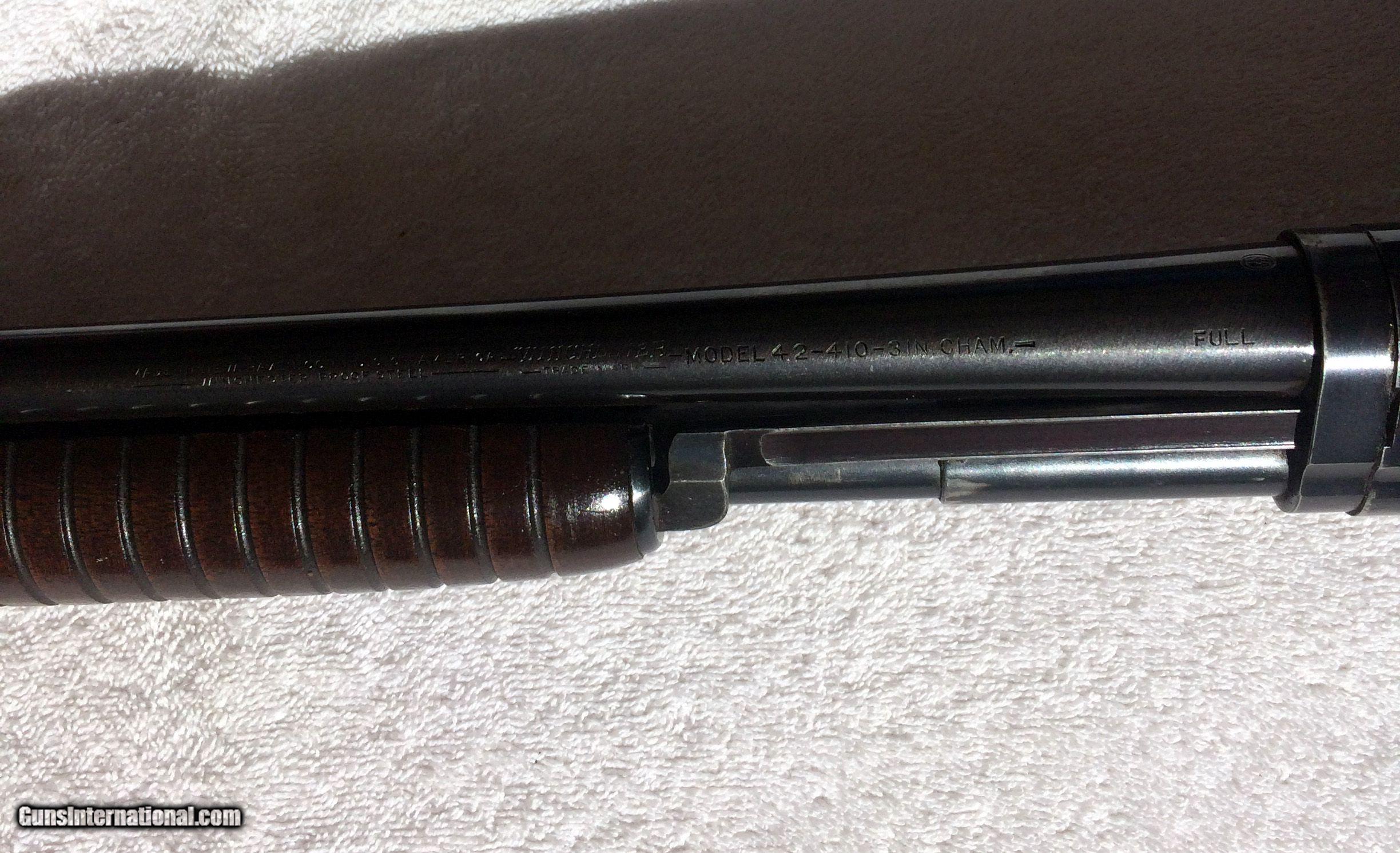 Description: Model 42, 410 Guage, Full Choke, 3 inch Chamber. Original Bluing Winchester representative said this shot gun was manufactured in 1946. Price of this gun $1,800.00 or best offer. My dad purchased 15 Winchester shot guns approximately 40-50 years ago in Southern Illinois and Southern Indiana. He passed 18 years ago and now I'm selling the guns. I have no paperwork on any of the guns. The guns are like barn finds and have been in storage and never shot for 40-50 years. All guns were periodically oiled and are in working condition. All guns values are based on the 37th. Edition, Blue Book of Gun Values. If you are interested in purchasing this shot gun or have any questions please call (949)378-3074. I have an Apple phone that's great for doing everything except making a phone call and I live near some mountains and it doesn't always ring. Please leave a message and I'll return you call. SOLD Curio/Relic: Yes |
