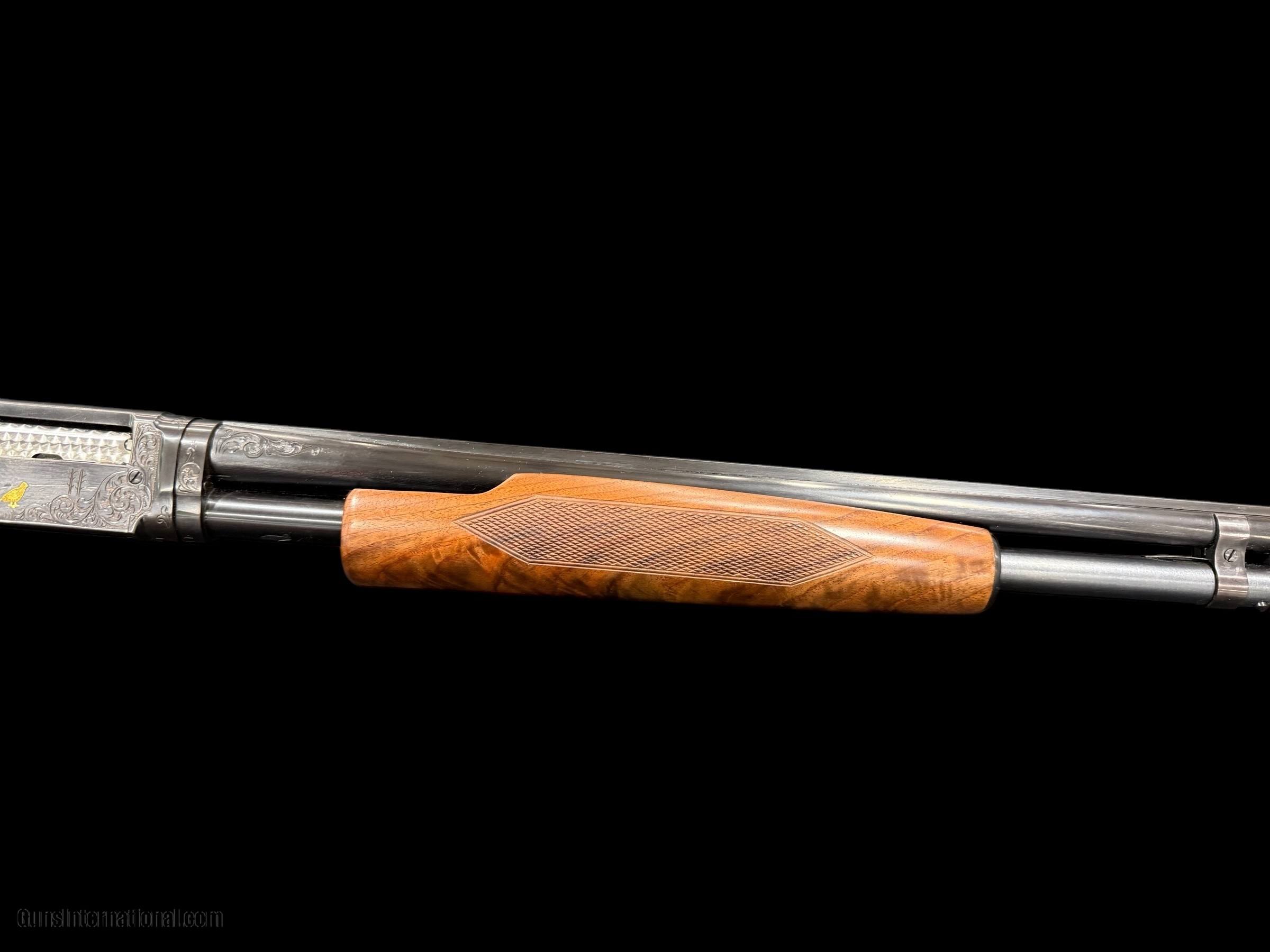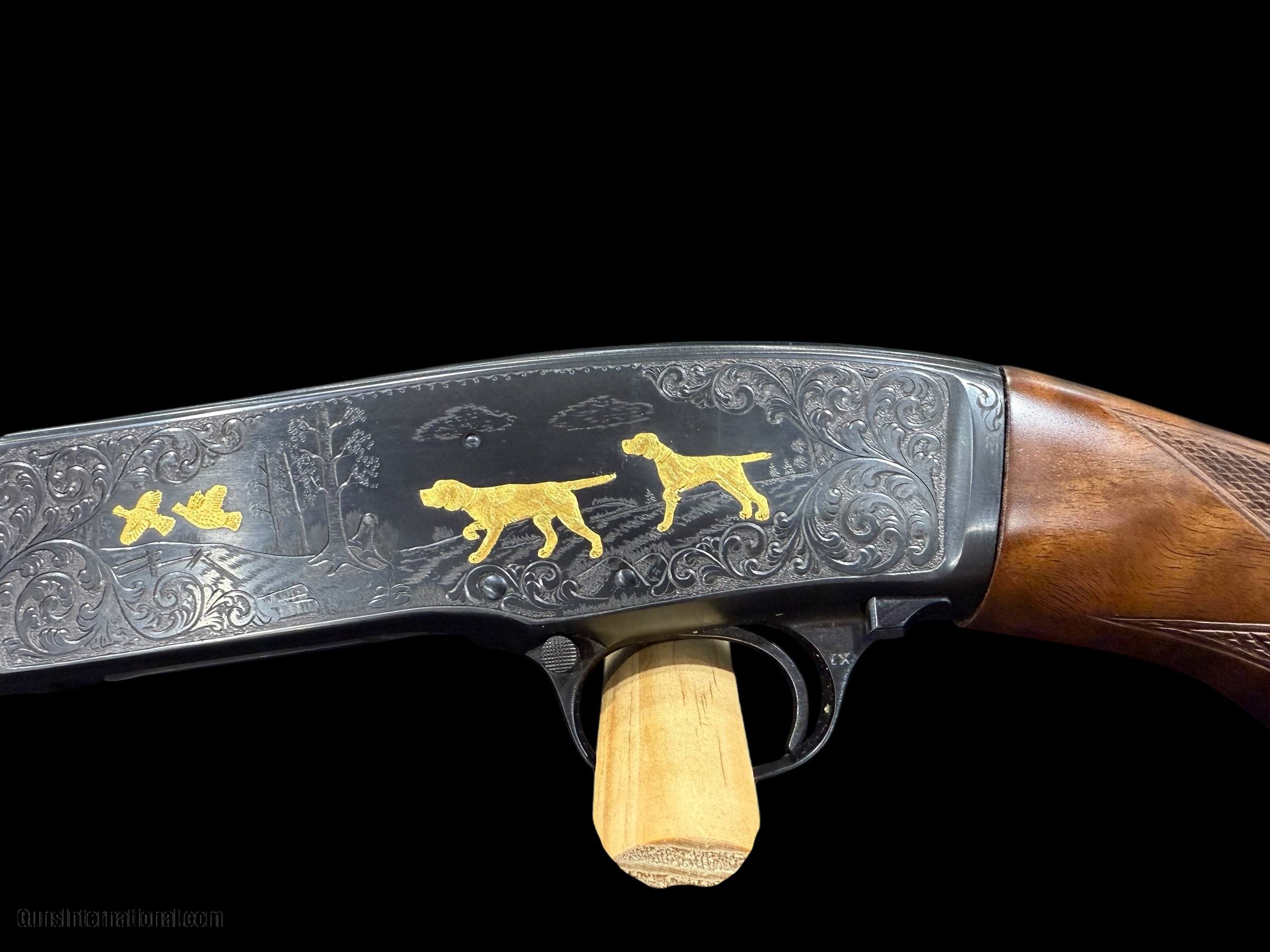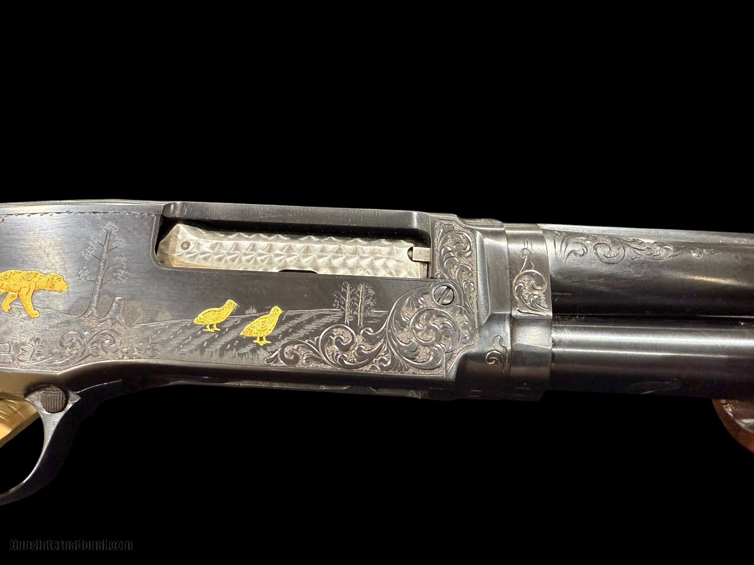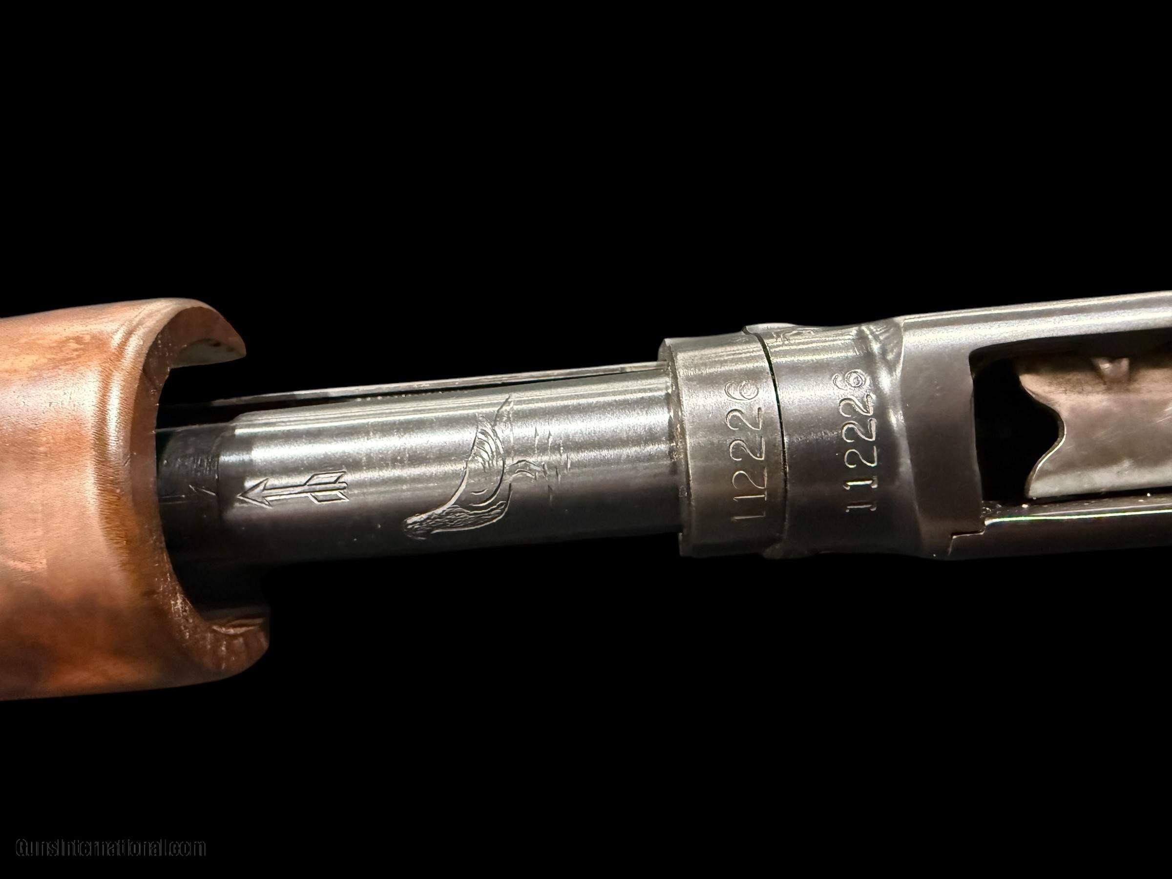 WONDERFUL 1954 WINCHESTER MODEL 42 PIGEON GRADE .410 28” FULL CHOKE SOLID RIB WINCHESTERS #5 ENGRAVING STYLE WITH GOLD GAME SCENES