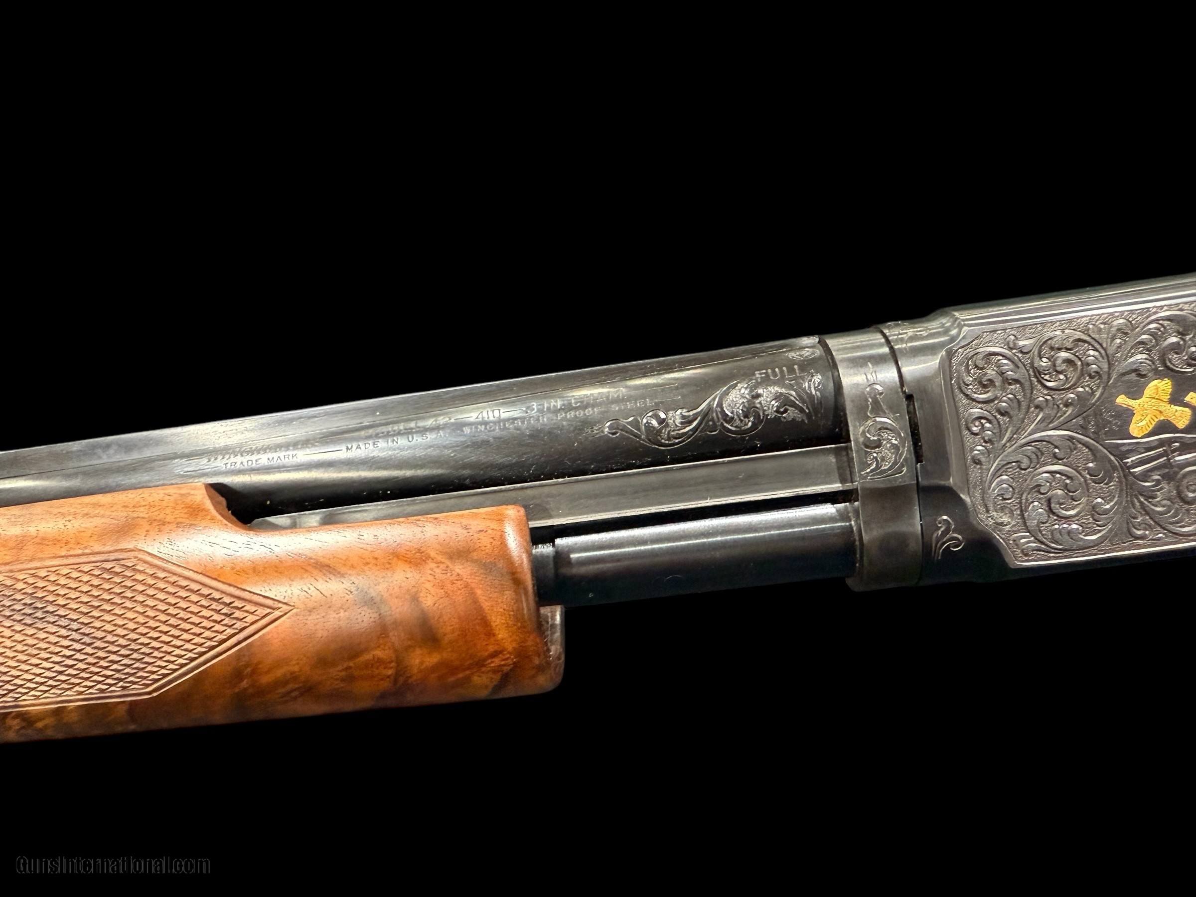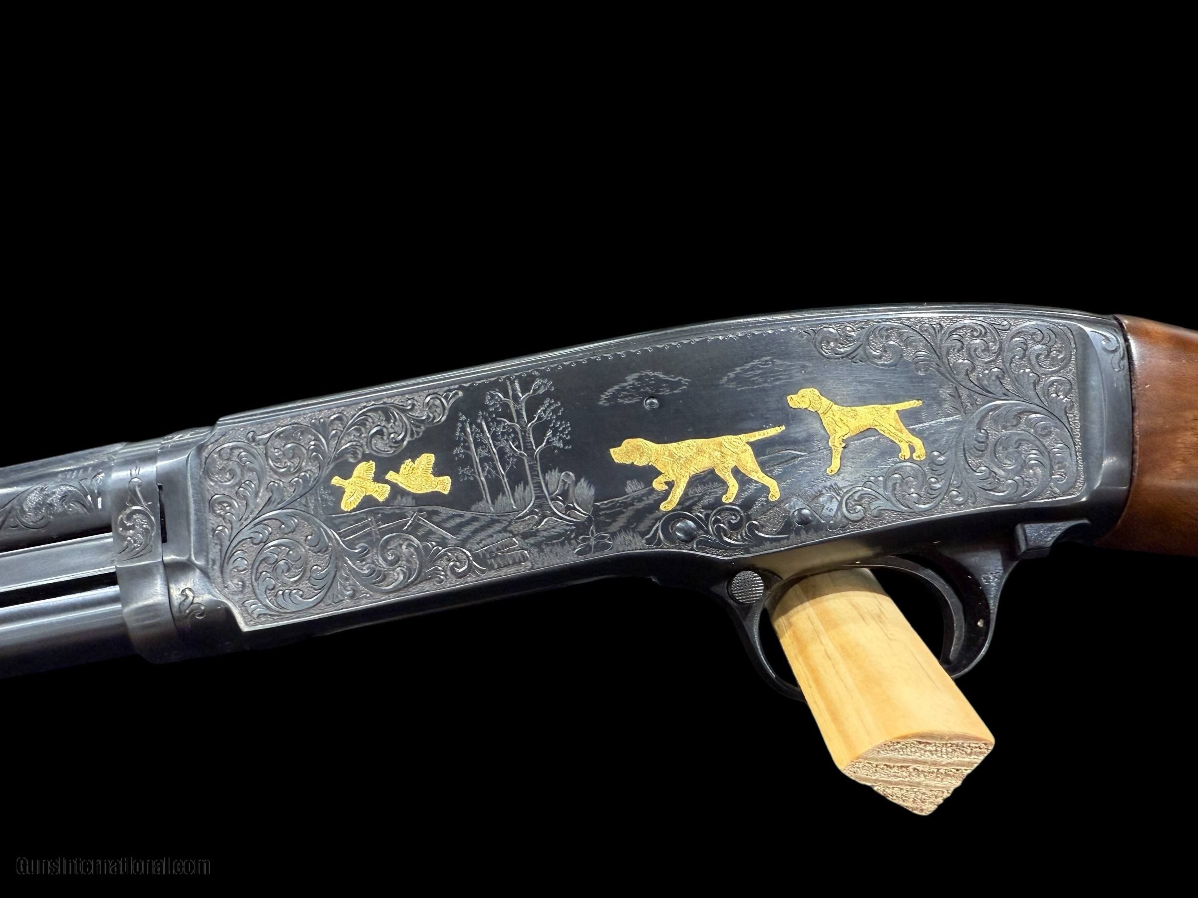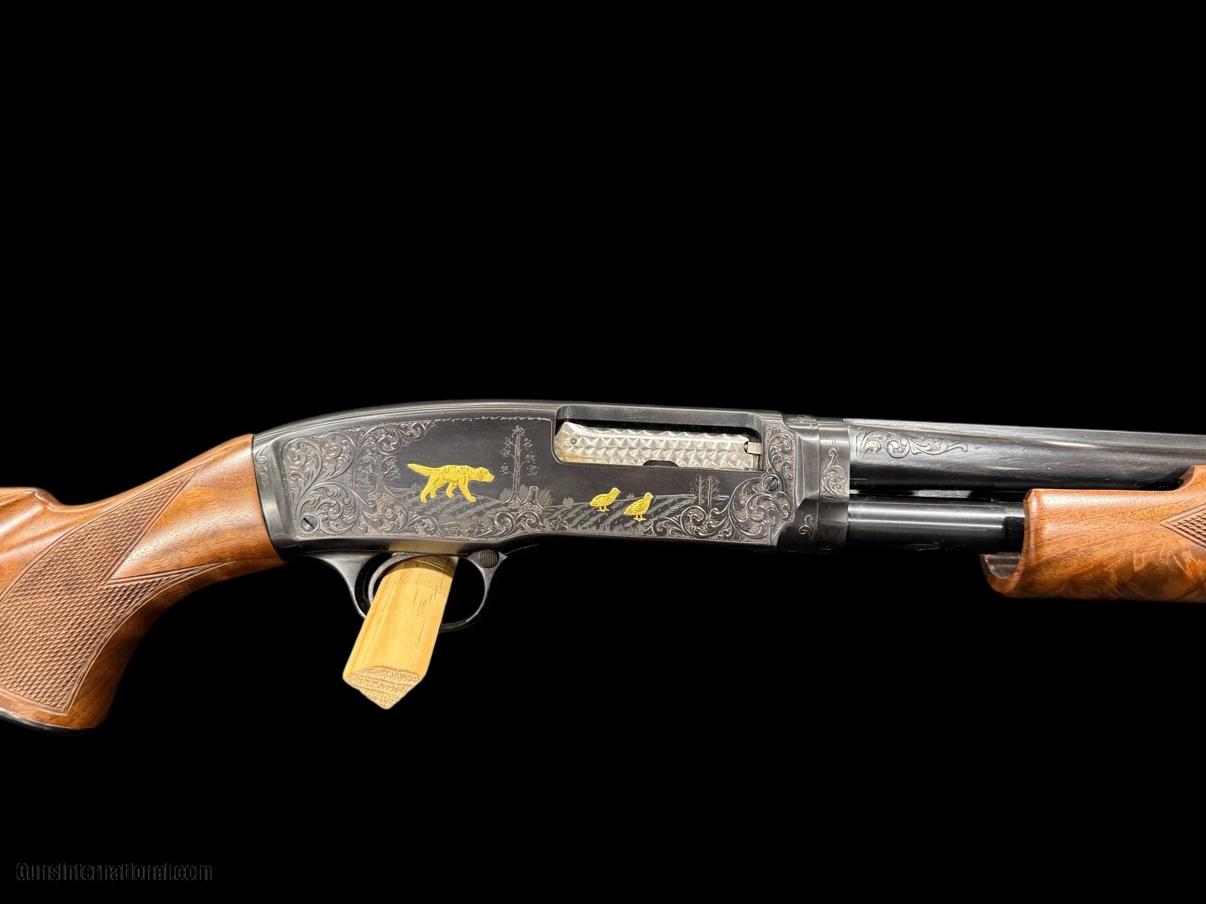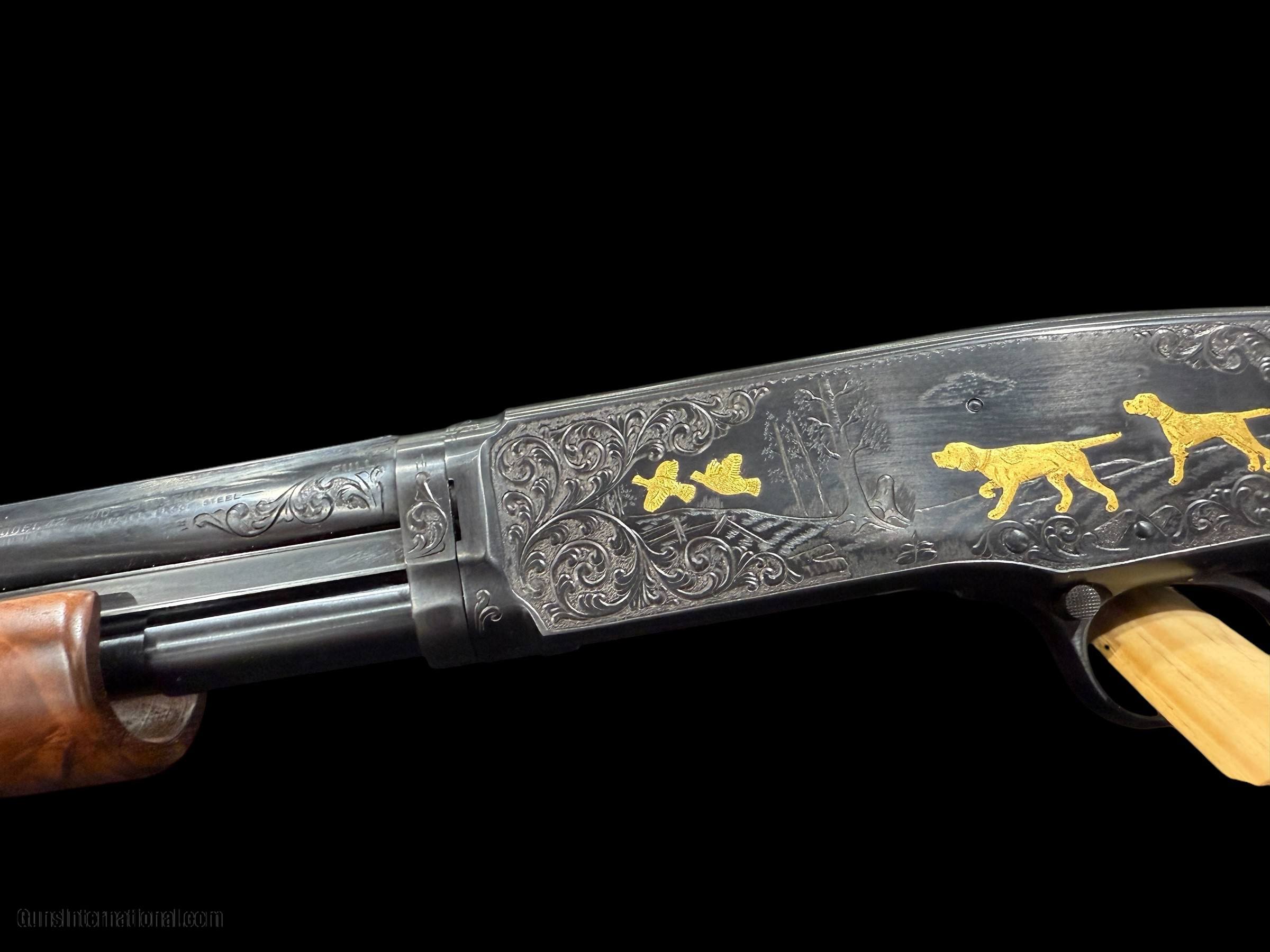 WONDERFUL 1954 WINCHESTER MODEL 42 PIGEON GRADE .410 28” FULL CHOKE SOLID RIB WINCHESTERS #5 ENGRAVING STYLE WITH GOLD GAME SCENES
