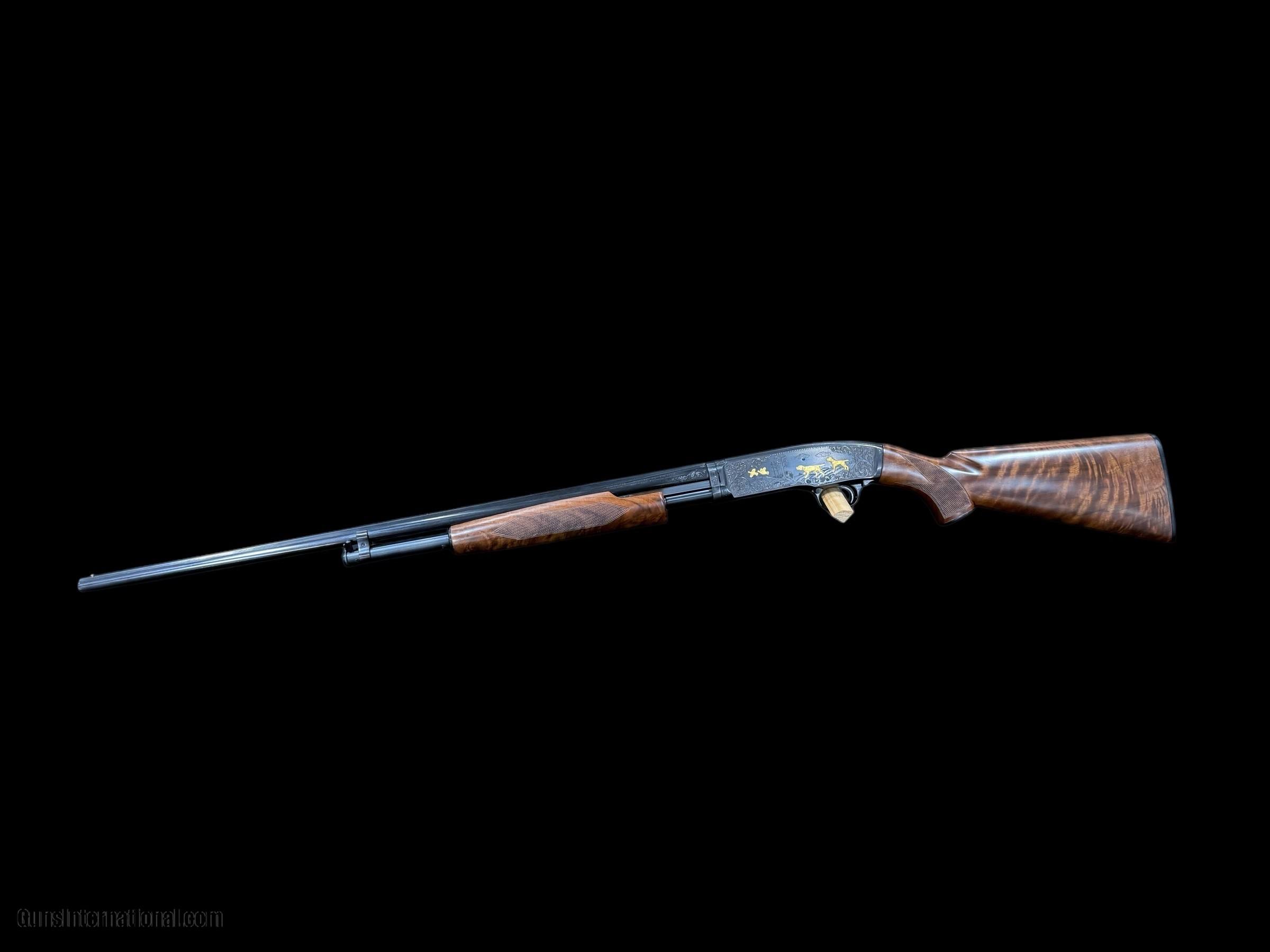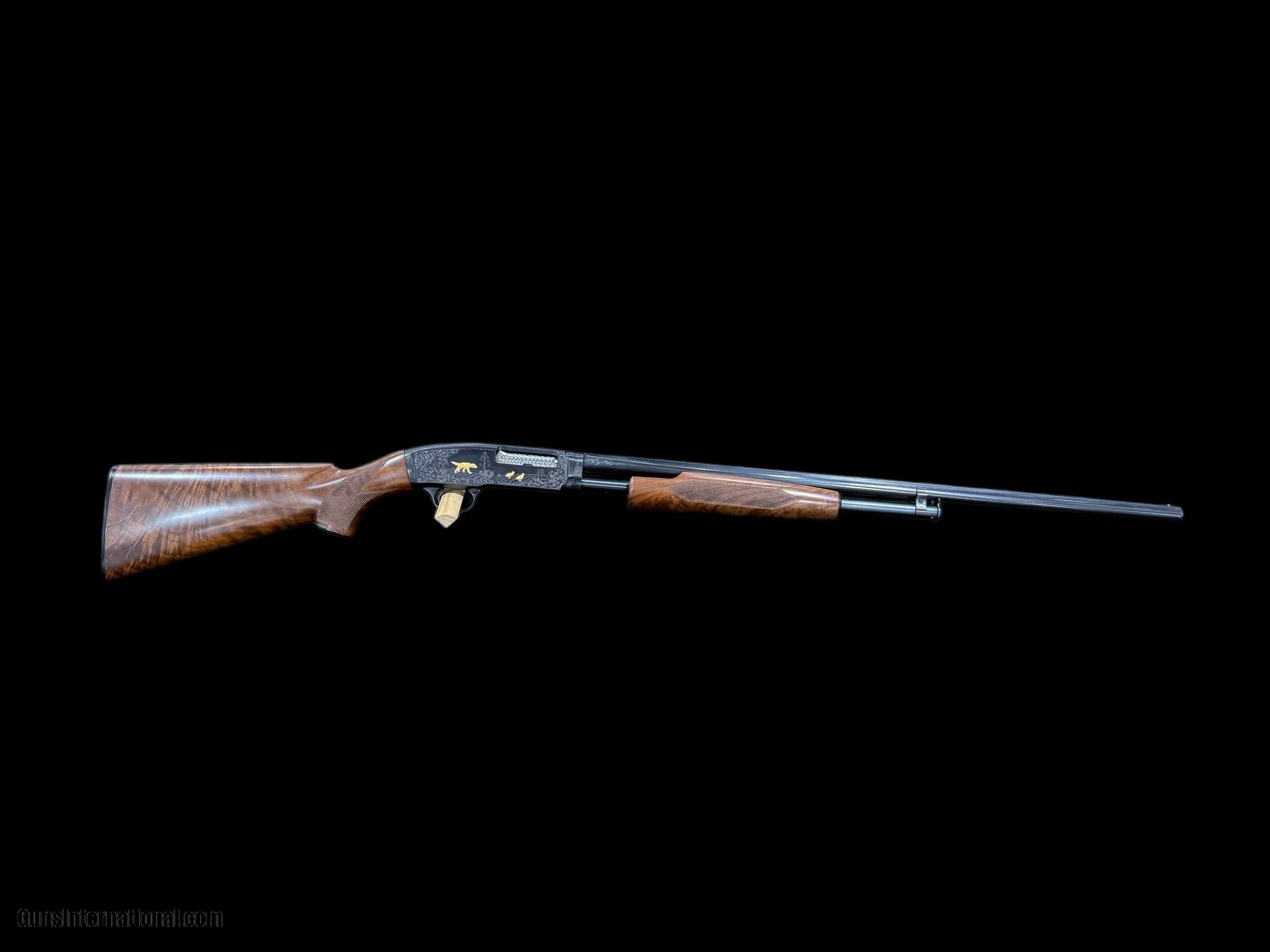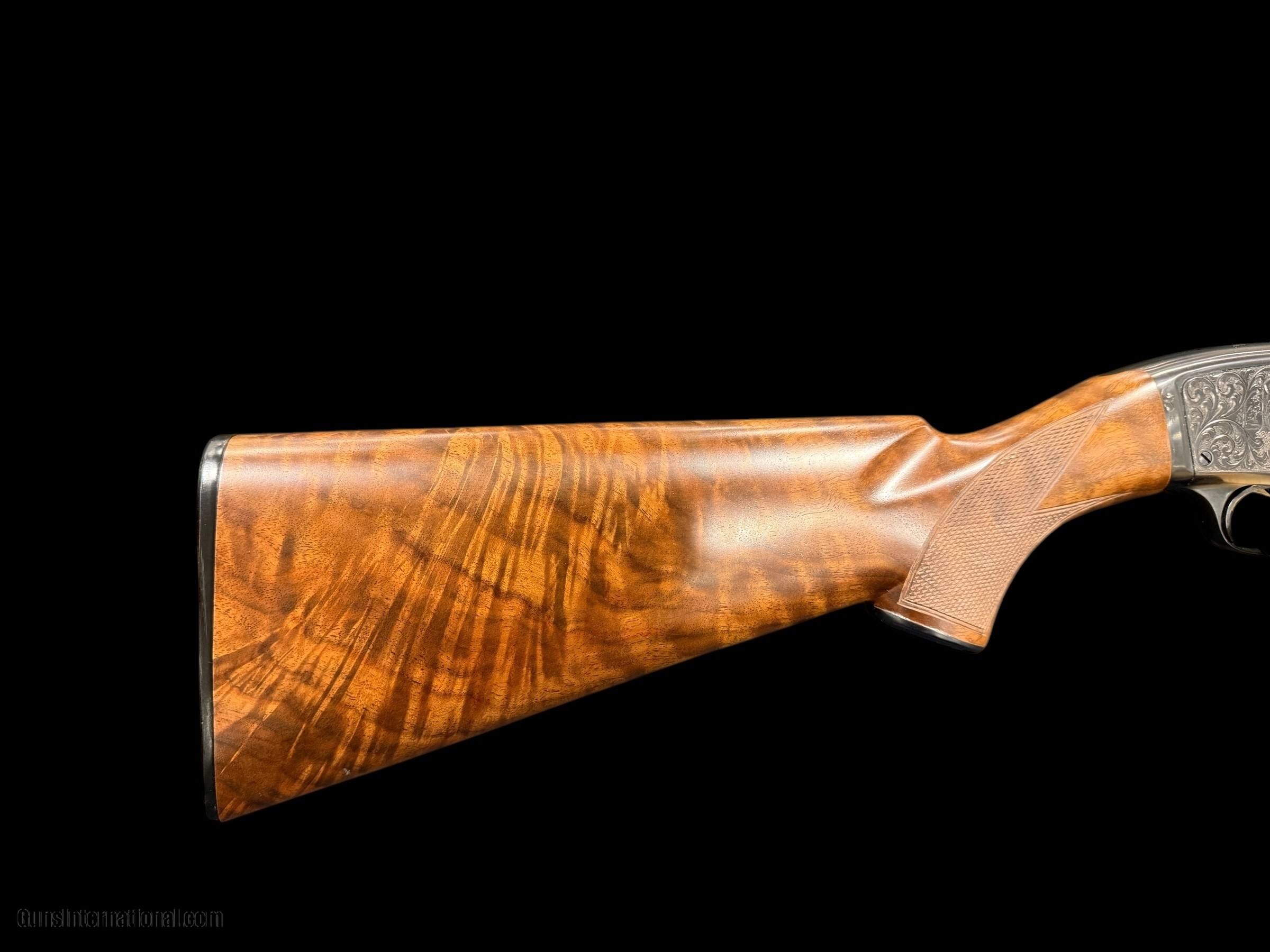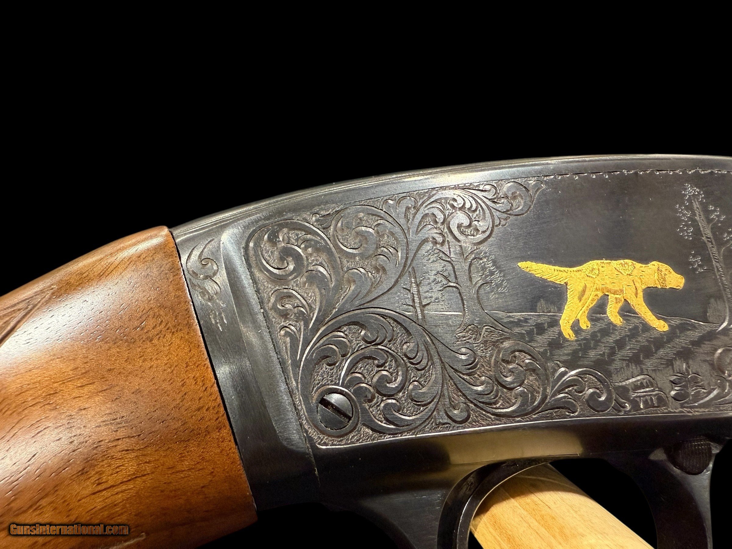WONDERFUL 1954 WINCHESTER MODEL 42 PIGEON GRADE .410 28” FULL CHOKE SOLID RIB WINCHESTERS #5 ENGRAVING STYLE WITH GOLD GAME SCENES