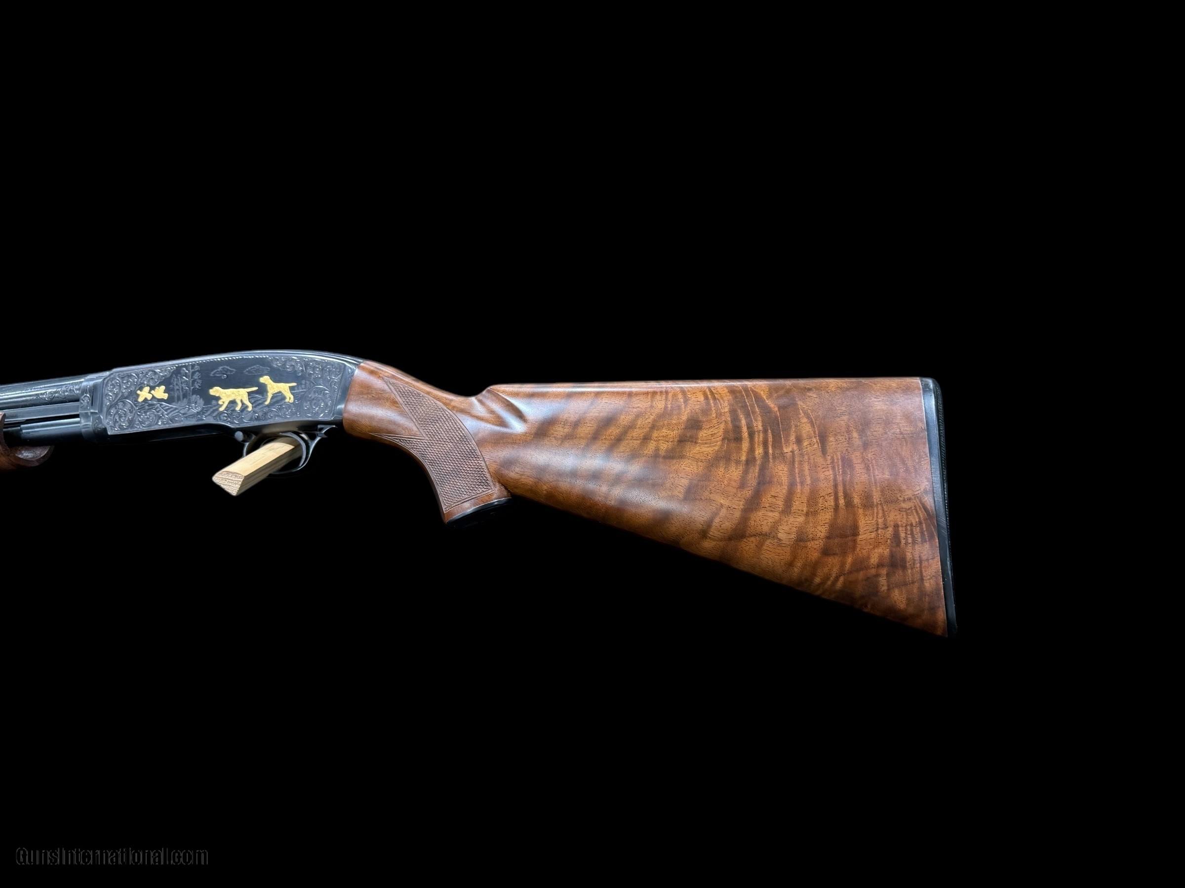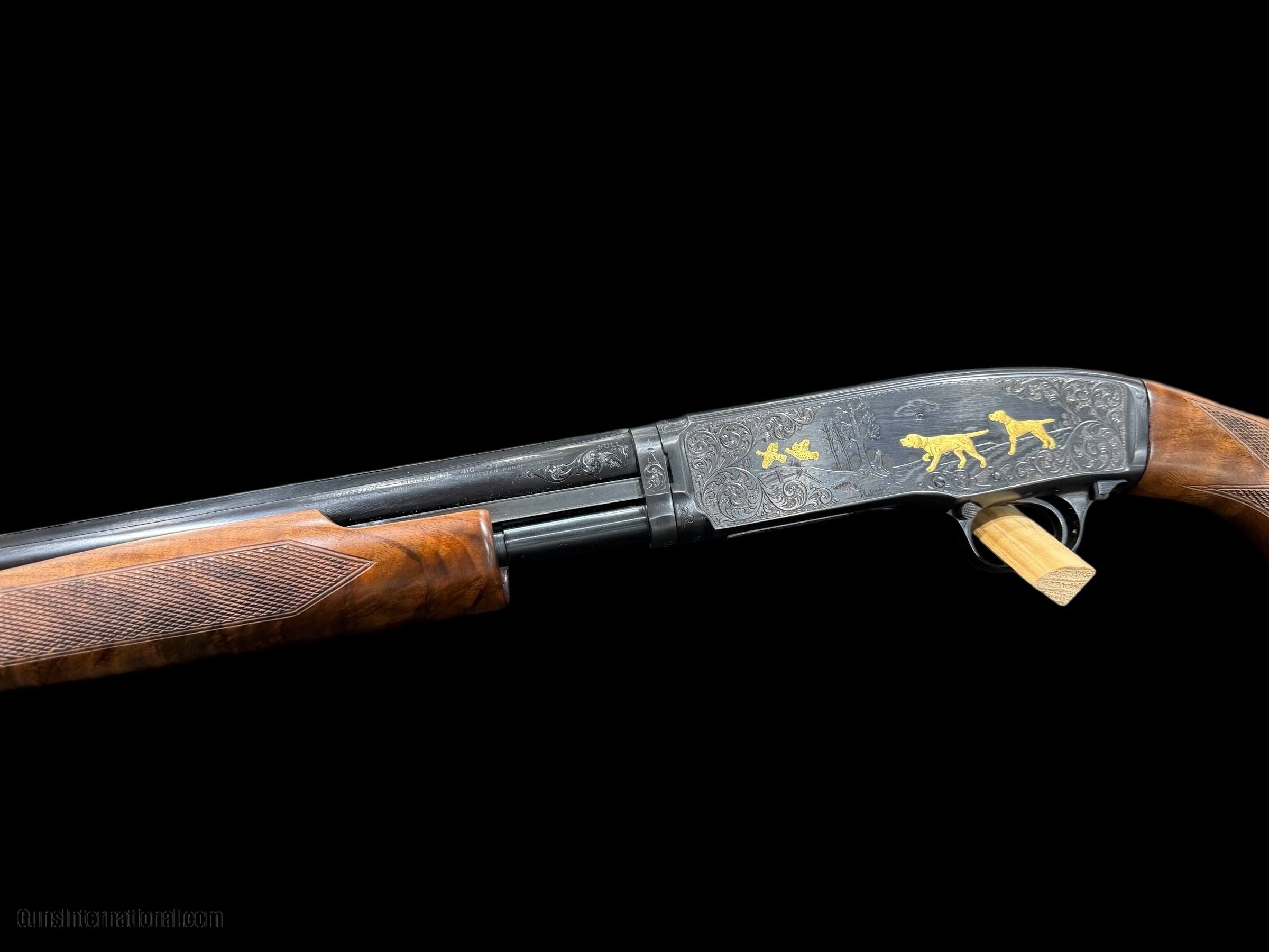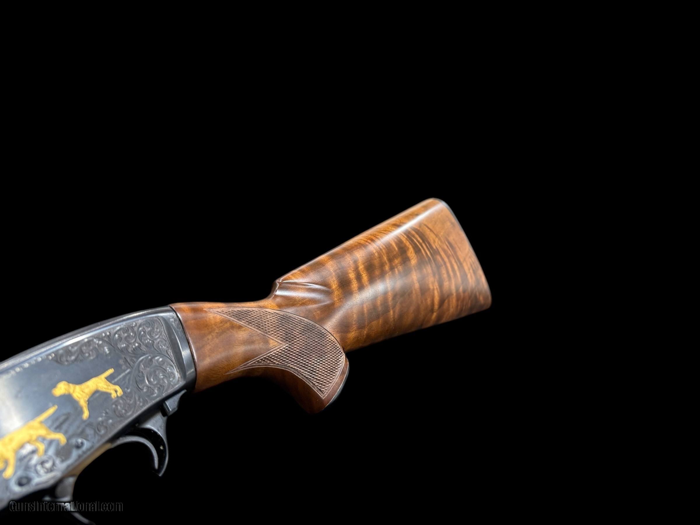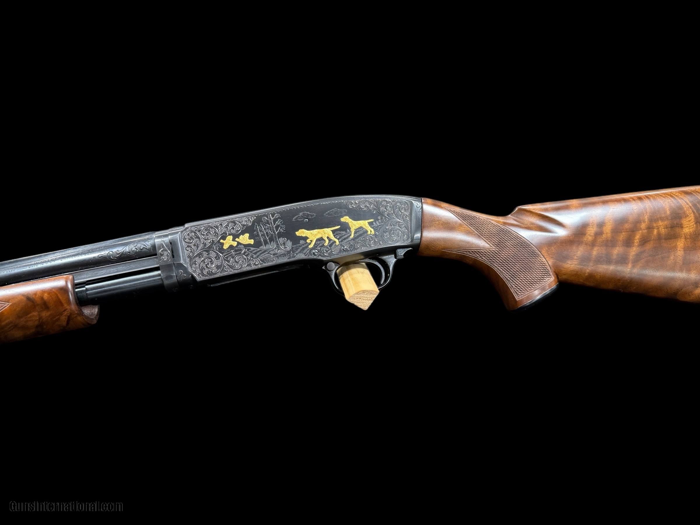 WONDERFUL 1954 WINCHESTER MODEL 42 PIGEON GRADE .410 28” FULL CHOKE SOLID RIB WINCHESTERS #5 ENGRAVING STYLE WITH GOLD GAME SCENES