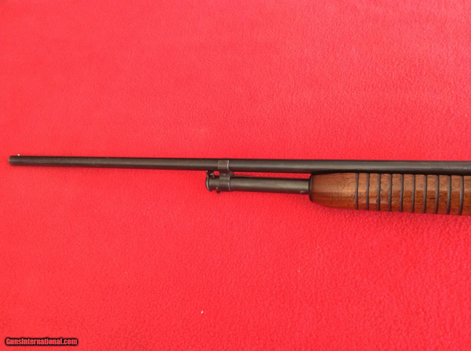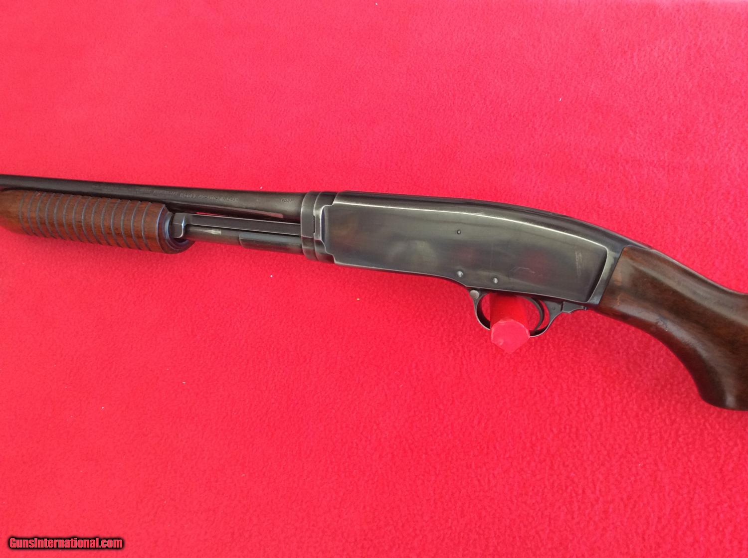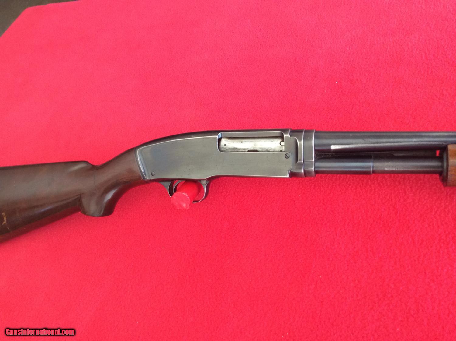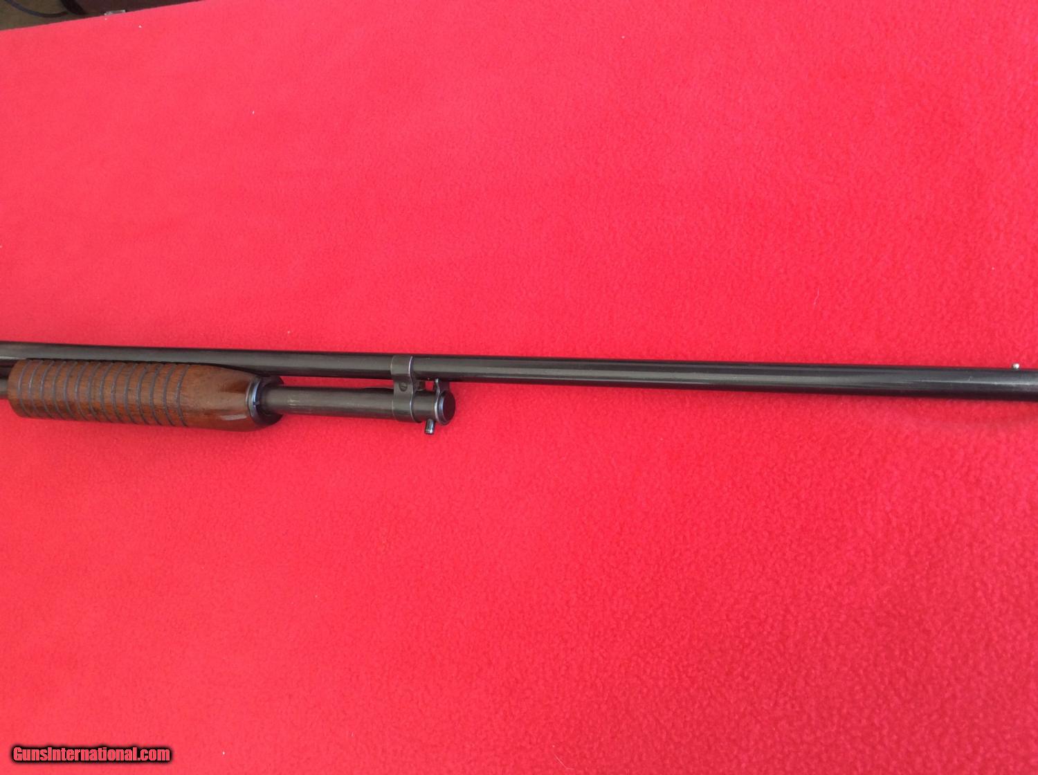 Description: For your viewing is a Win. mod. 42 shotgun that belongs to a elderly gentleman who had to move into a retirement home. this shotgun retains 90% of its original condition when it was made in 1947. stock shows a few scratches, and a scuff on the recever on the left side. overall bluing is in very good shape for it's age, being well cared for. 14' LOP to original butt plate. 1 1/2" DAC, 2 1/8" DAH. this shotgun is in exceptional condition for use as a field gun, and not worry about scratching, as one of mint collector value. look out, running squirrels and bunnies. SOLD |