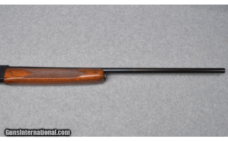 Description: This is an excellent condition Winchester model 50 in 20Ga. The blue on the barrel and receiver of this nice shotgun are excellent. The receiver has two very light scratches just under the ejection port. The walnut stock is in very good shape with just minor handling and use marks. The bore is bright and shiny and is a fixed choke improved modified. SOLD Caliber Info: 20 Ga. Chambers: 2-3/4" semi auto. Metal Condition: Excellent. Wood Condition: Very good. Bore Condition: Bright. Barrels: 28" blued with brass bead sight. Triggers: Smooth blue trigger. Stock: Walnut with checkered pistol grip. Stock Dimensions: 14" length of pull. Fore End: Matching checkered walnut fore end. Butt Pad: Black plastic butt plate. Weight: 7 lb 9 oz. Sights: Brass bead front. Chokes: Fixed improved modified. Item Location: West Chester, OH |