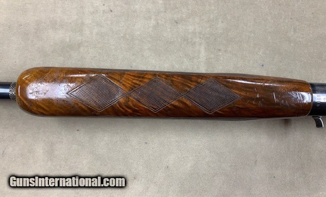 Description: An original Winchester Model 50 12 Ga Deluxe Trap Gun, with deluxe walnut stock and forearm, etc. Pad needs to be replaced. Excellent chamber and bore. Most all finish on the blued 28 inch vent rib barrel and receiver - blue wear on the high spots - stock and forearm show some handling marks and scratches but no cracks or chips. SOLD Curio/Relic: Yes |