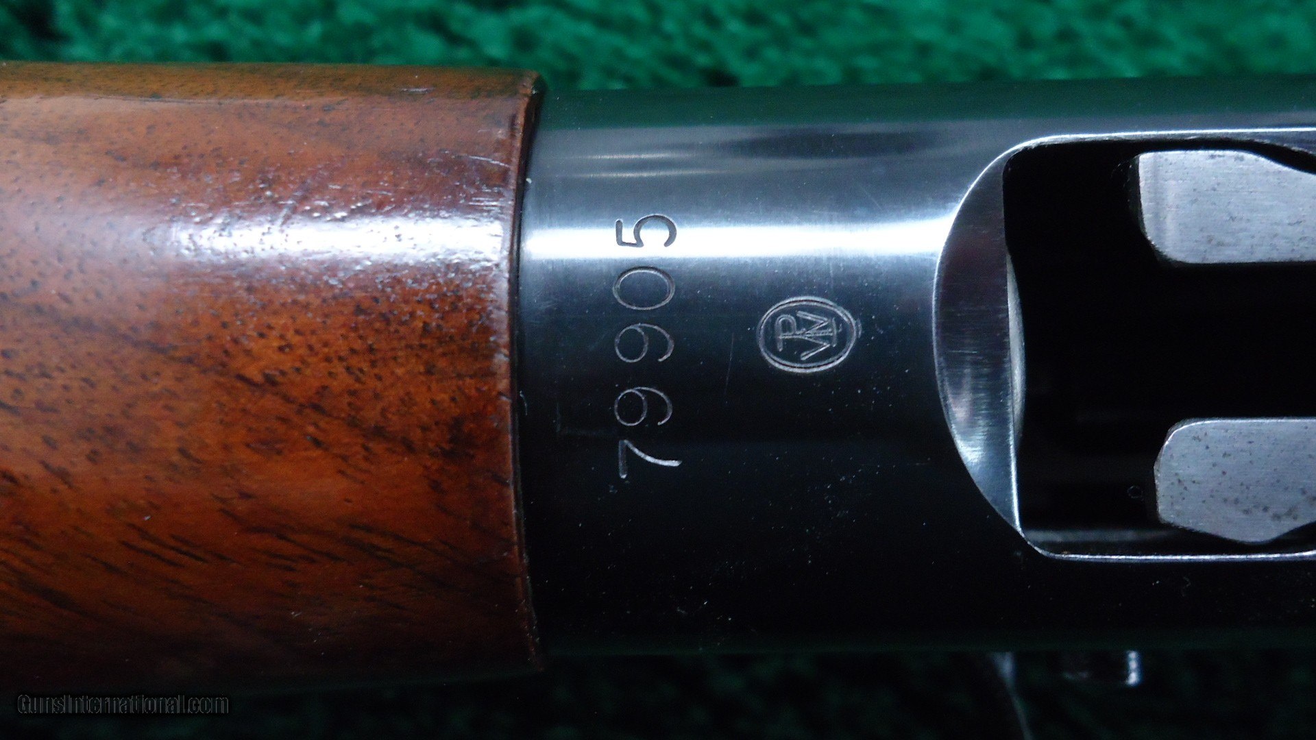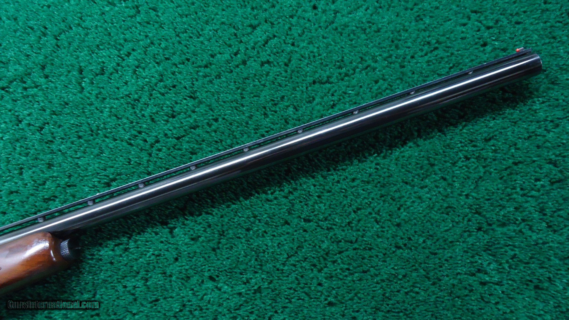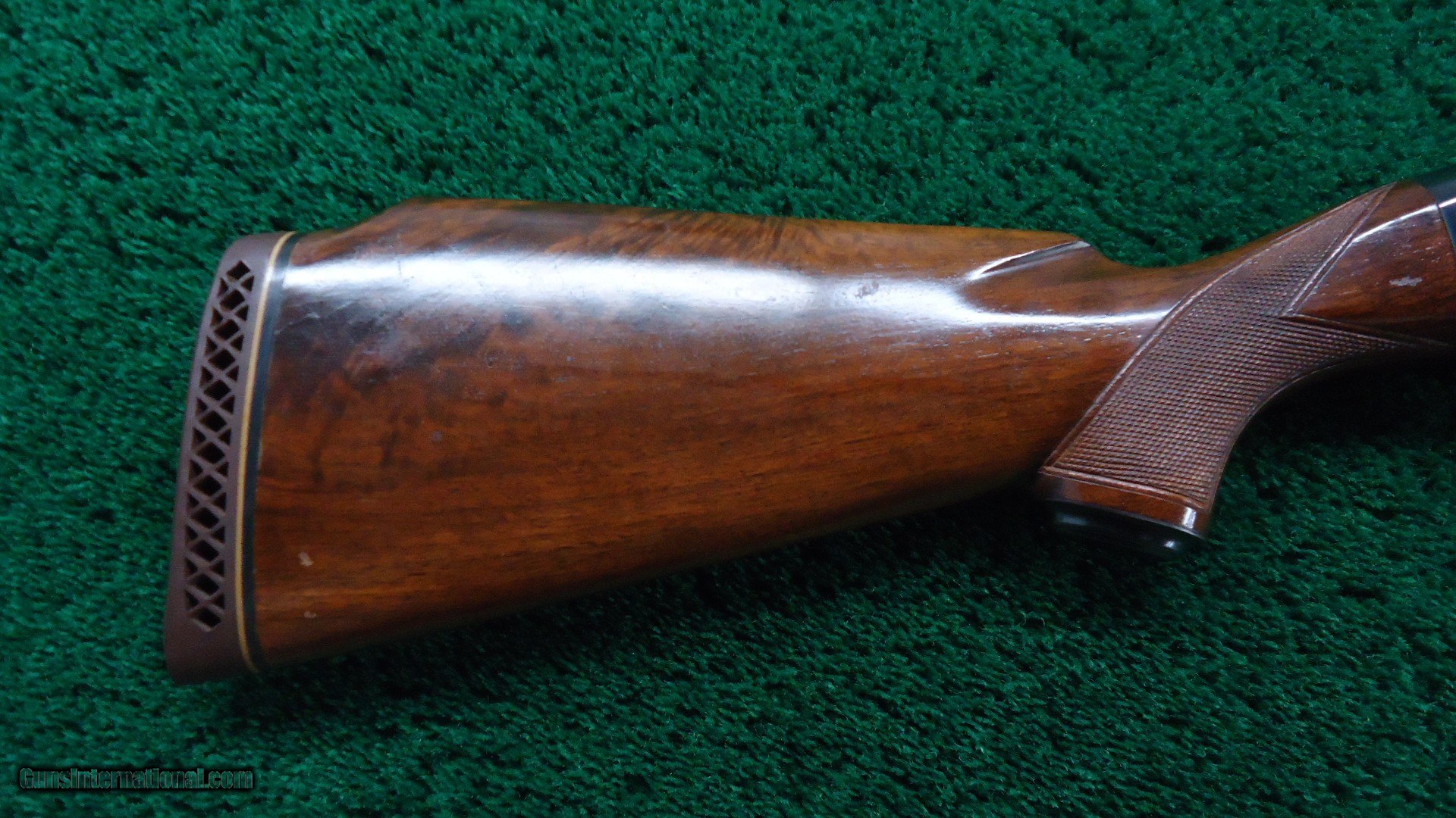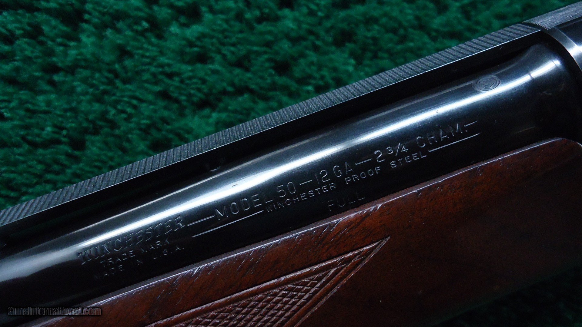30 inch Vent Rib barrel with red bead front sight. Marked 2-3/4 inch chamber and choke Full. Overall metal retains most all of re-blue with the left side of receiver showing residual pitting. Crisp action. The Monte Carlo stock with checkered pistolgrip has been freshened up and is in good condition as well with a few handling dings. Pachmayr recoil pad. 14 inch LOP. The Model 50 was made from 1954-1961 and this one was made in 1957.
