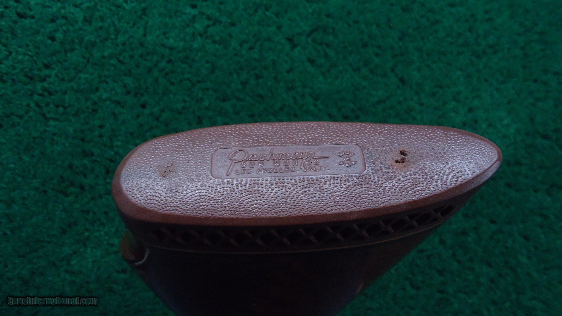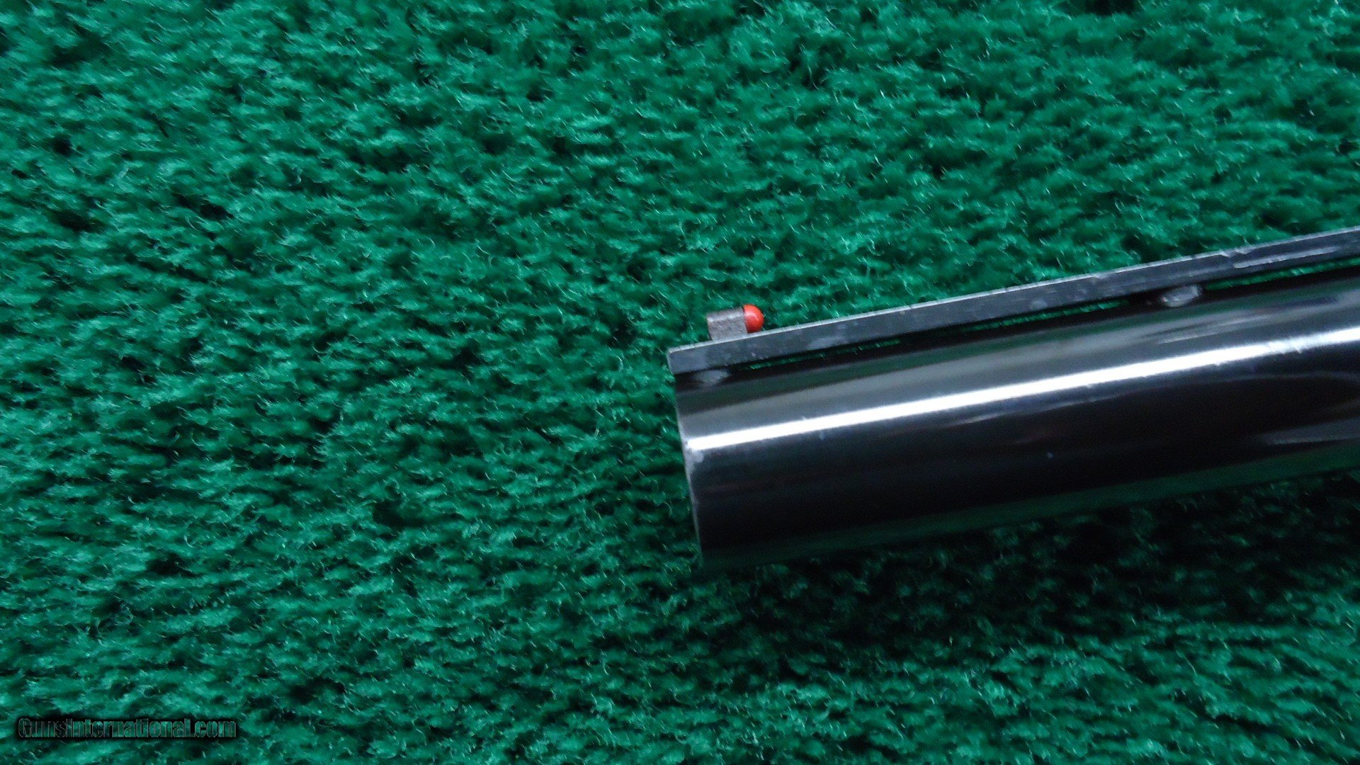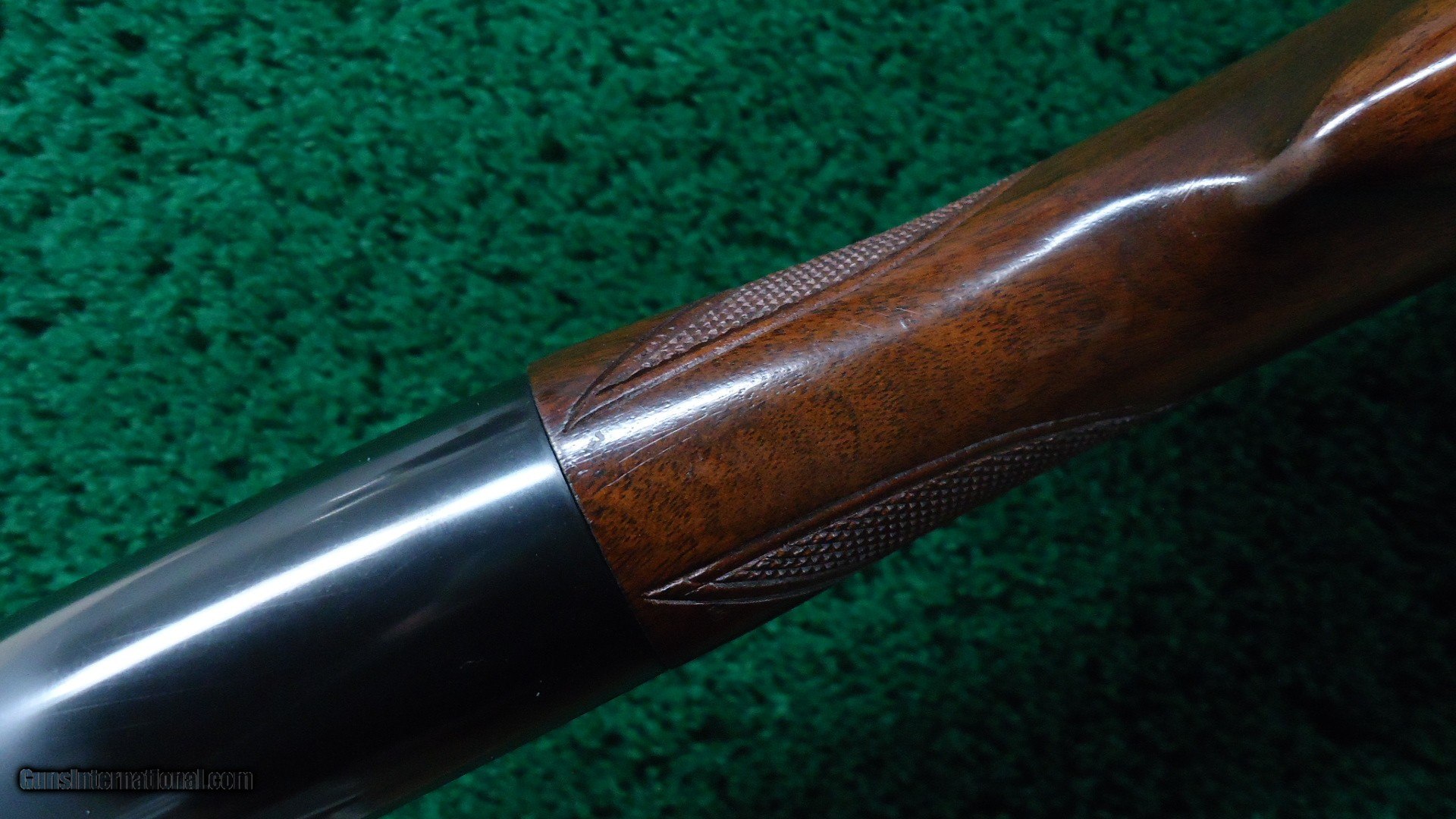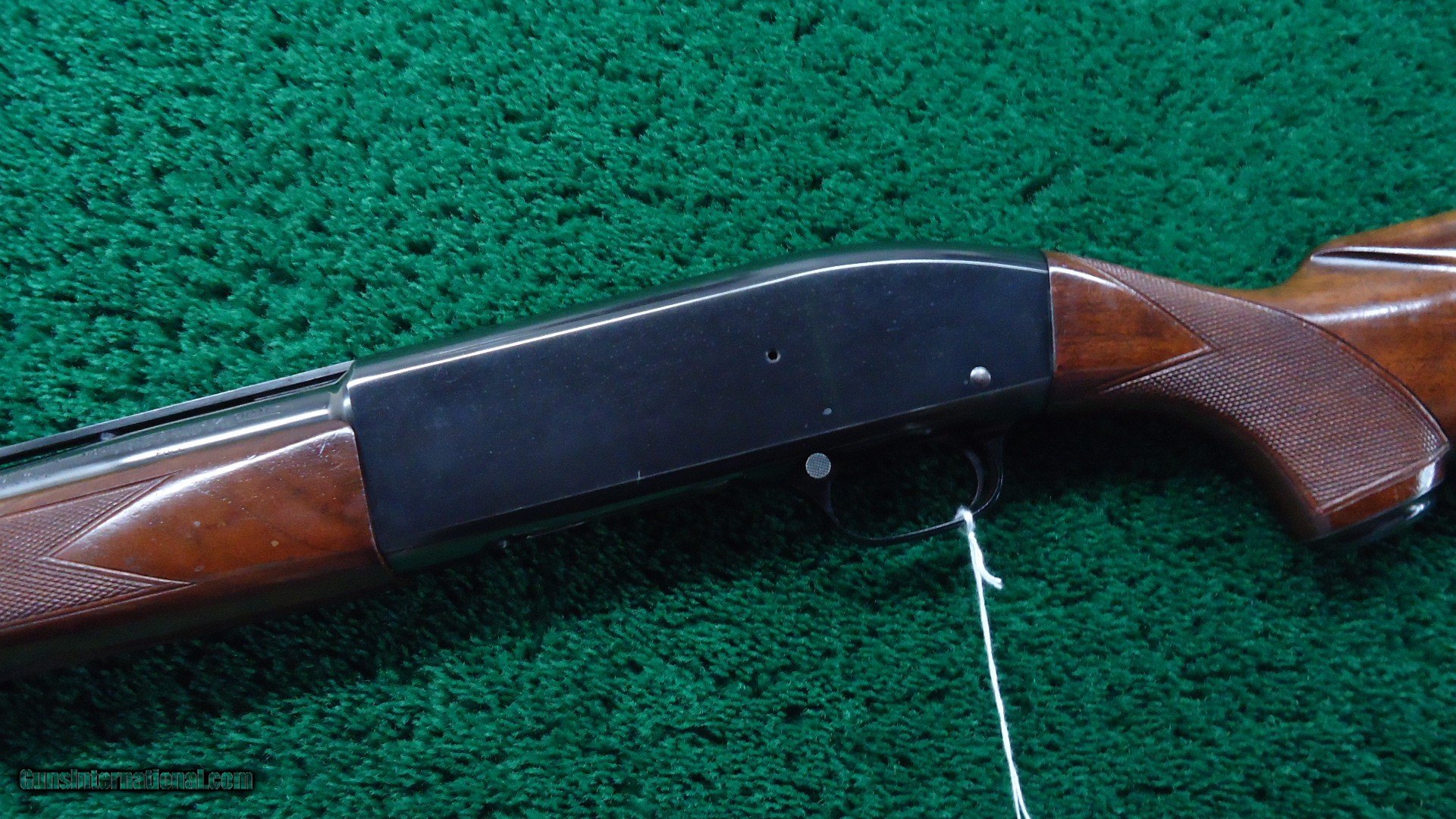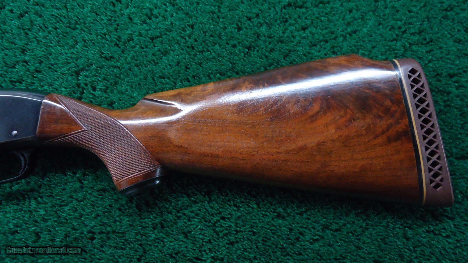 30 inch Vent Rib barrel with red bead front sight. Marked 2-3/4 inch chamber and choke Full. Overall metal retains most all of re-blue with the left side of receiver showing residual pitting. Crisp action. The Monte Carlo stock with checkered pistolgrip has been freshened up and is in good condition as well with a few handling dings. Pachmayr recoil pad. 14 inch LOP. The Model 50 was made from 1954-1961 and this one was made in 1957.