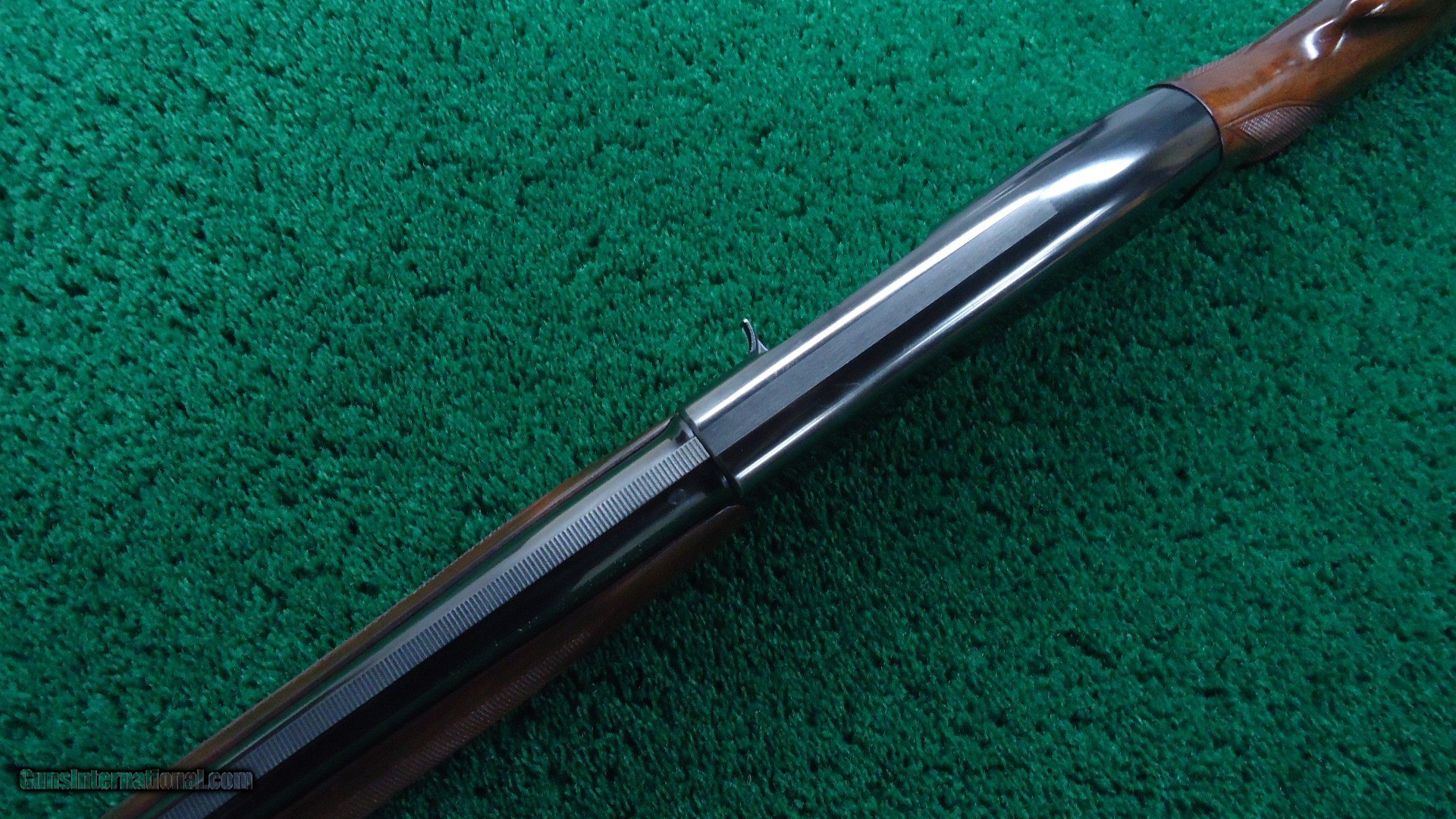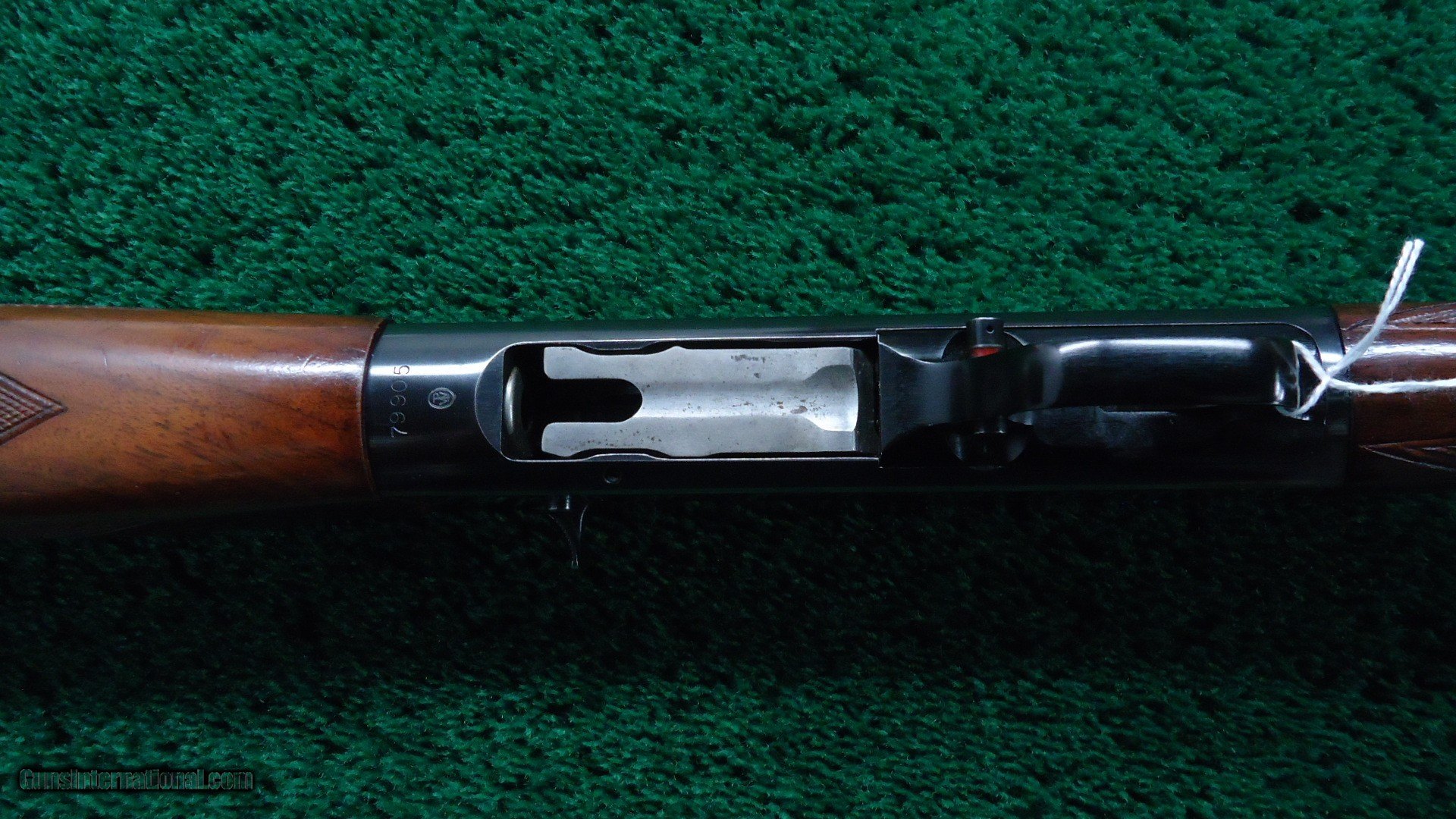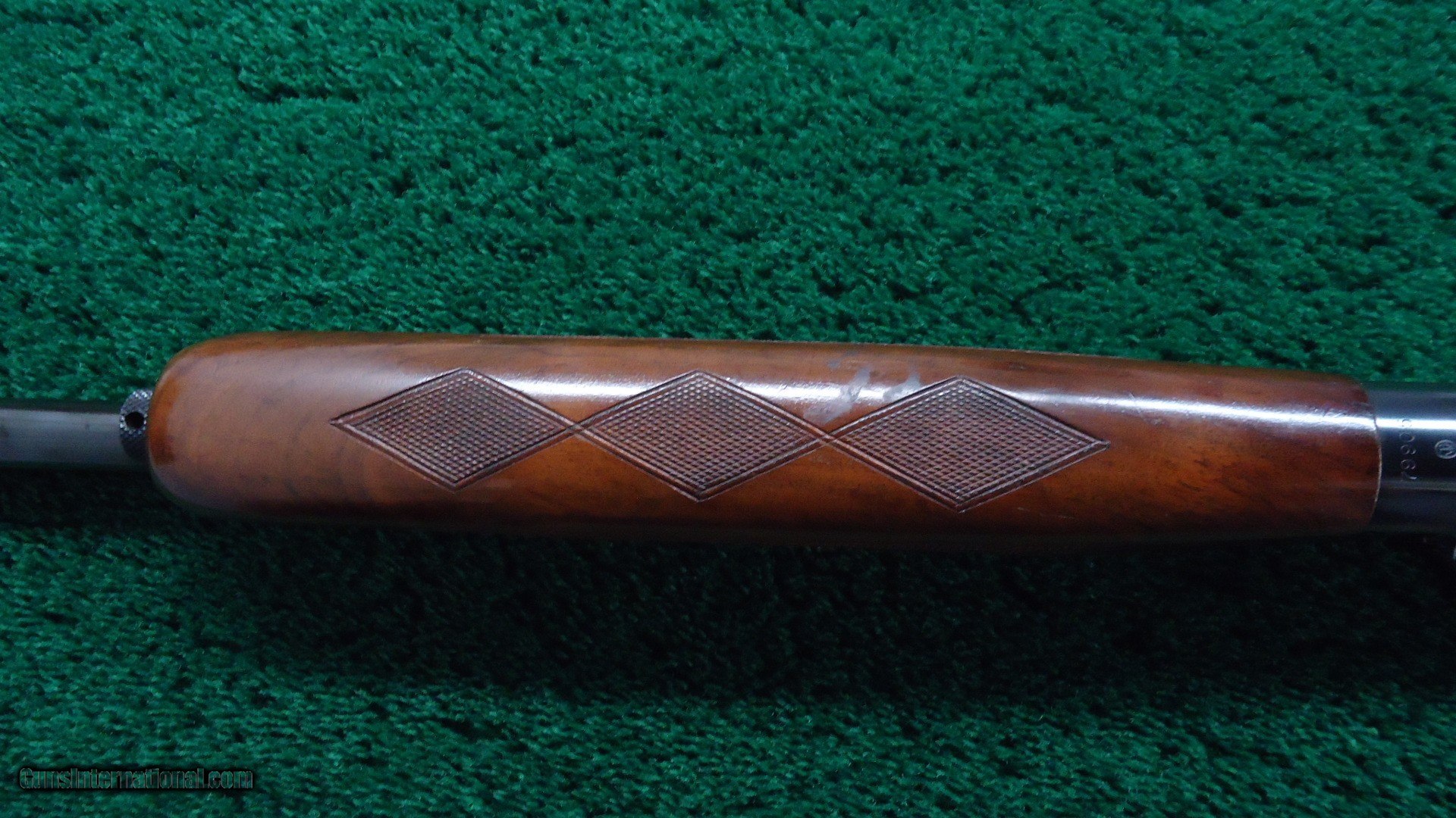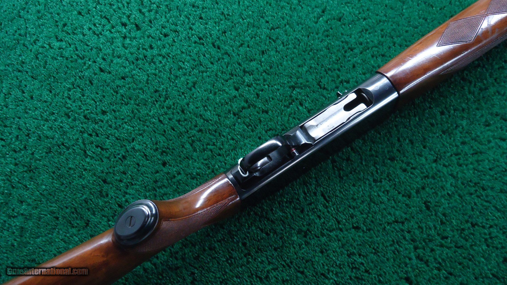 30 inch Vent Rib barrel with red bead front sight. Marked 2-3/4 inch chamber and choke Full. Overall metal retains most all of re-blue with the left side of receiver showing residual pitting. Crisp action. The Monte Carlo stock with checkered pistolgrip has been freshened up and is in good condition as well with a few handling dings. Pachmayr recoil pad. 14 inch LOP. The Model 50 was made from 1954-1961 and this one was made in 1957.
