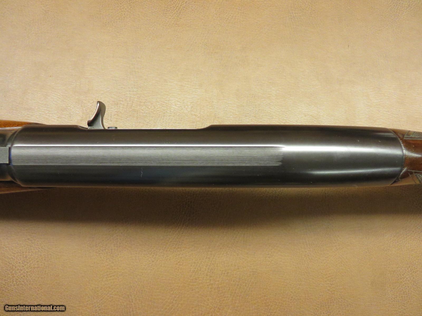 Description: 20 ga. 2 3/4 inch chambered semi auto has 28 inch modified choke vent rib barrel. Serial number 91xxx. Checkered walnut with original butt plate. Barrel blue and wood finish are 98%. The receiver only appears to have been reblued. SOLD |
