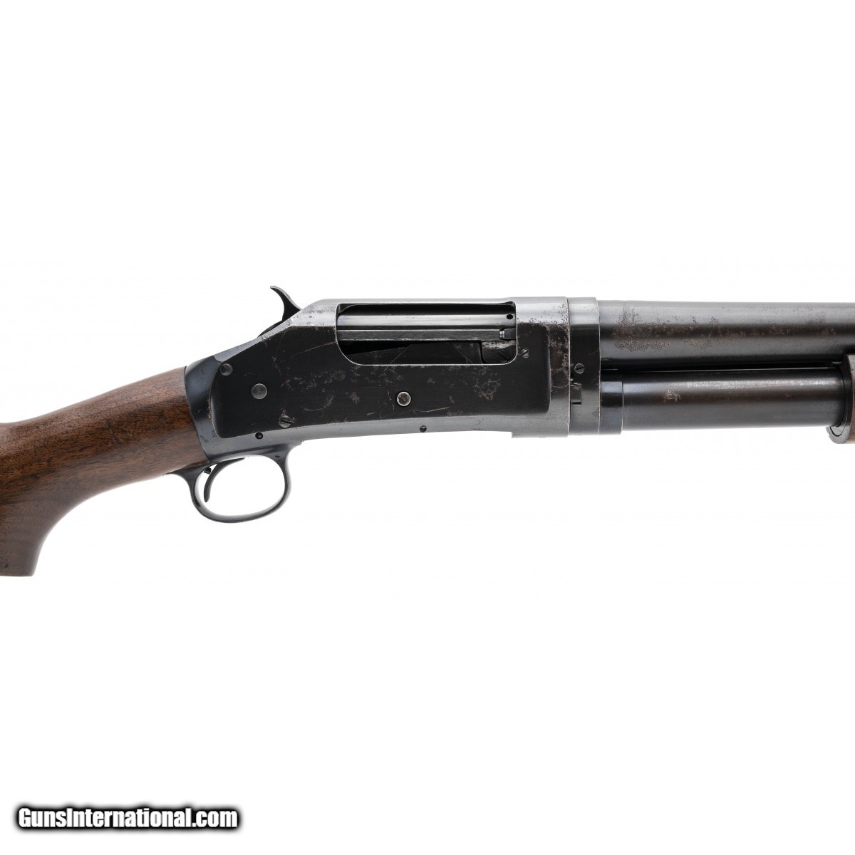 Description: " U.S. Army issued riot gun. Barrel and receiver are flaming bomb marked. Stock has a “GHD" cartouche and is crisp. 20" Barrel marked cylinder. Very good plus overall condition. A fine riot gun! SOLD Curio/Relic: Yes |