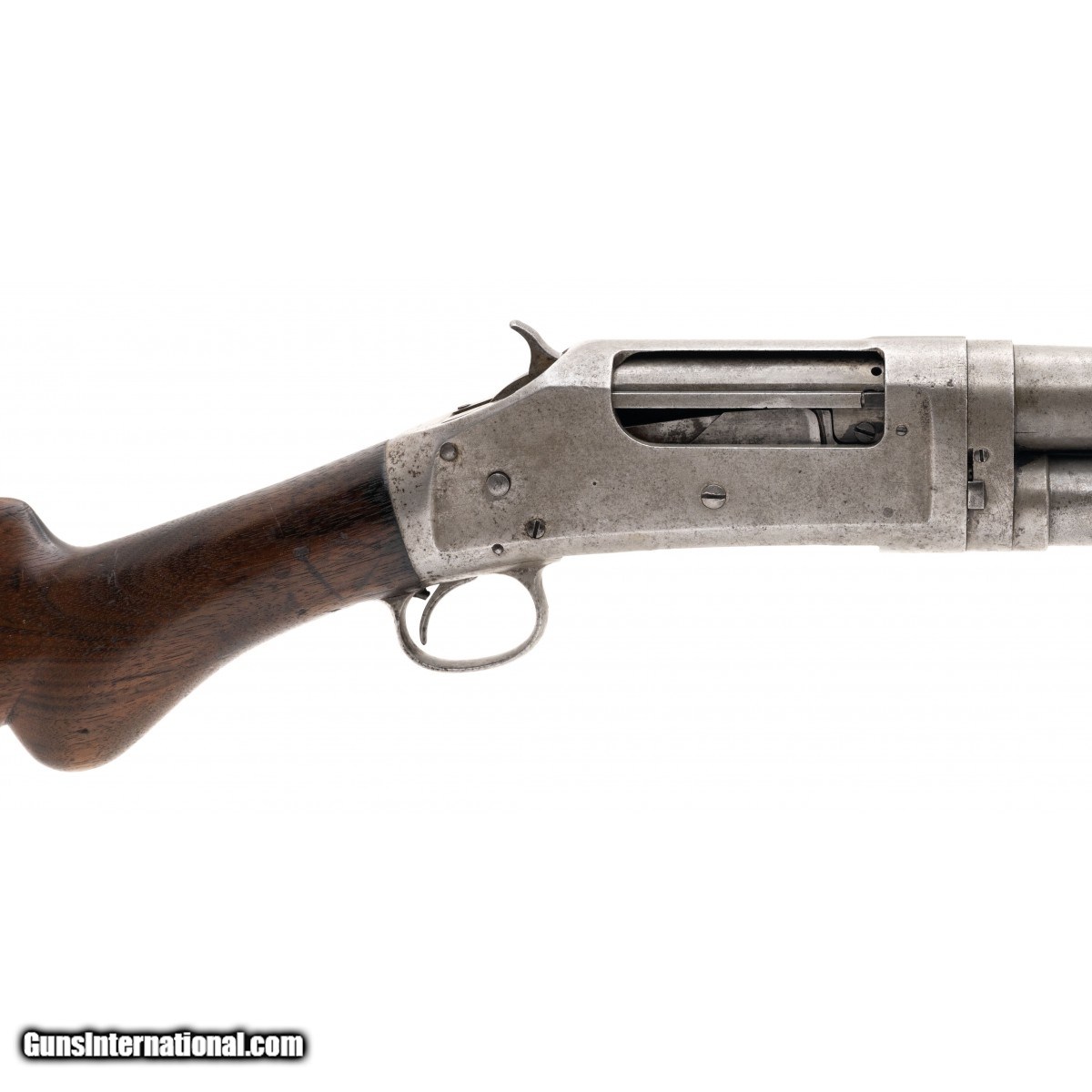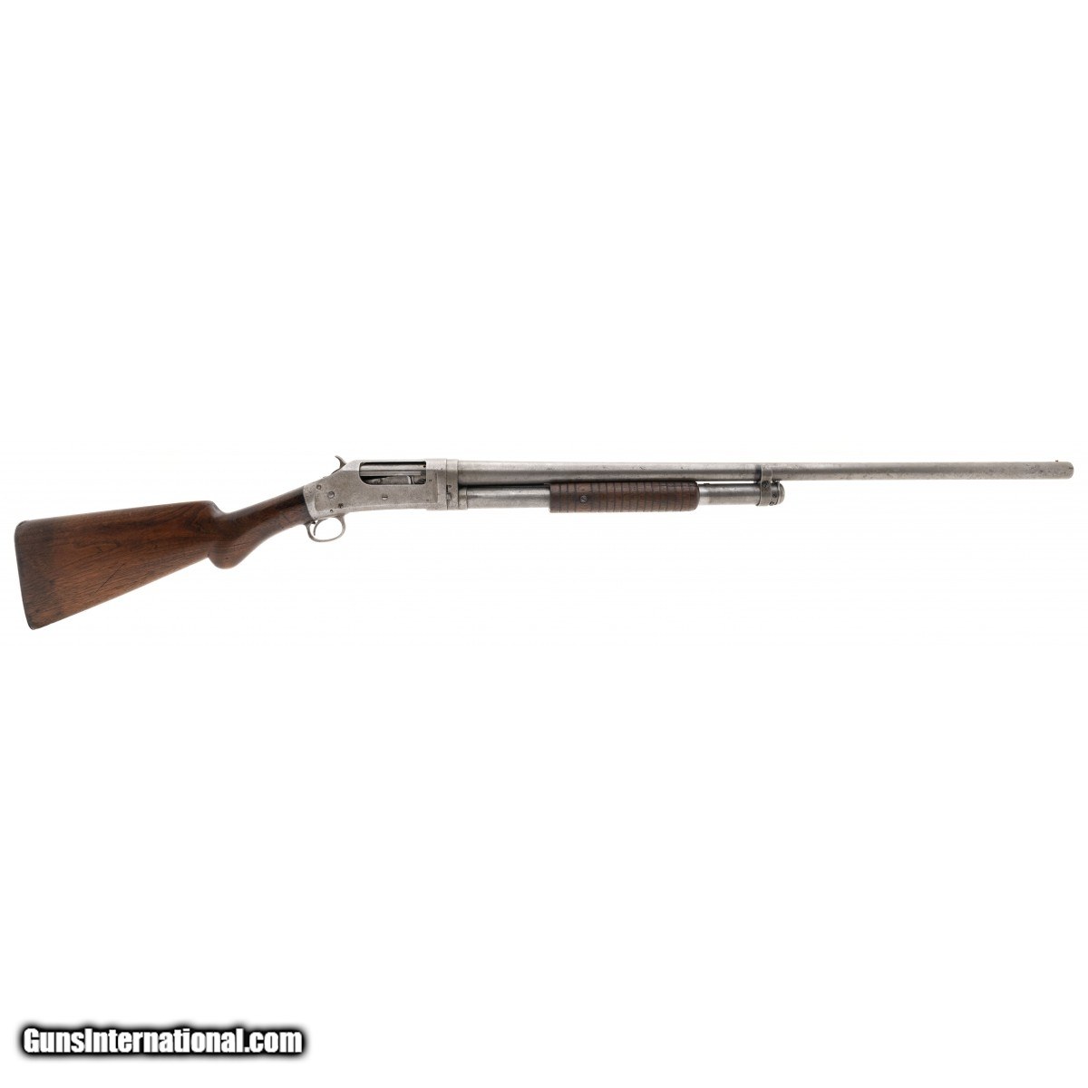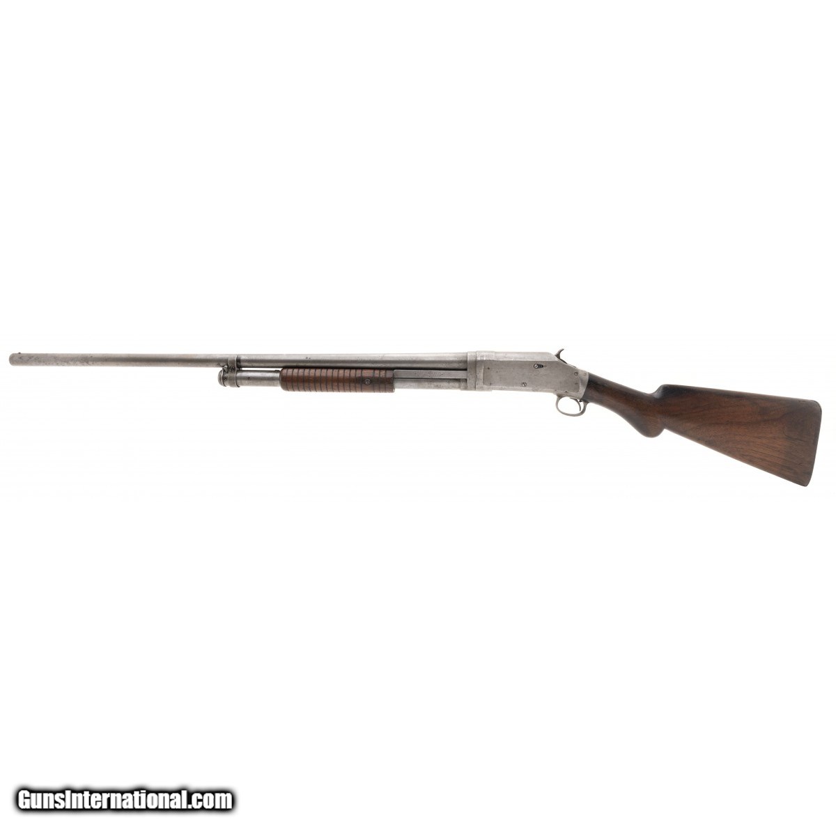 Description: " SN: C244345. Manufactured circa 1905, 12 gauge with a 30"" barrel. Bore is in excellent condition. Pre-war pump action shotgun with walnut stock full choke and 14' LOP. Overall condition is good with gray patina. SOLD Curio/Relic: Yes |