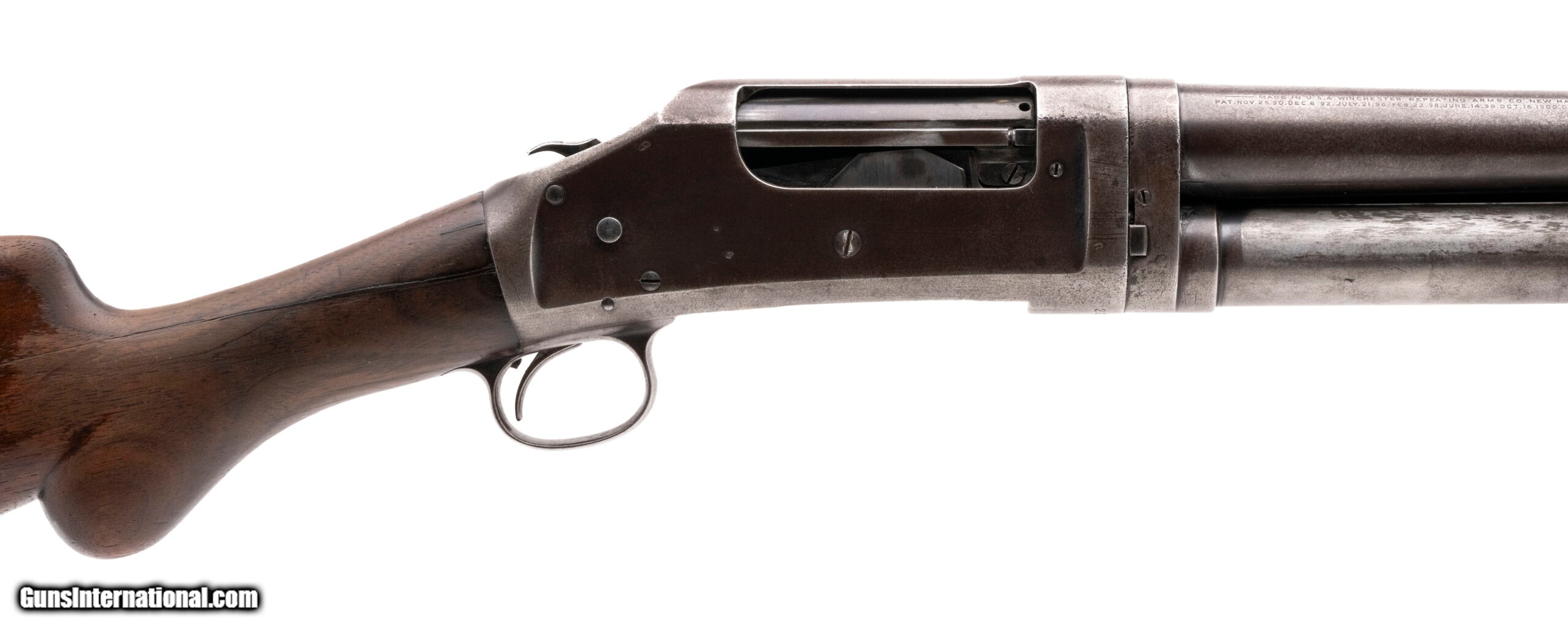 Description: "SN: C220271. Made circa 1902 Vintage, 12 Gauge with a 30"" barrel. Bore is in very good condition. Pump action field shotgun. Finish is in good condition with field wear and patina. Stock is in good condition with a repaired crack along the handle area noted. Overall condition is good. SOLD |