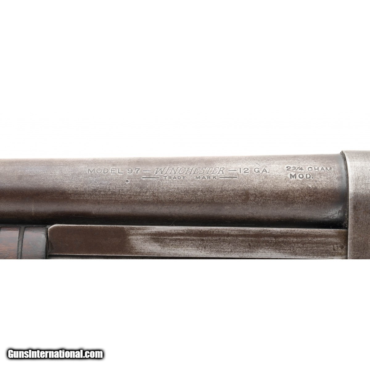 SN: 966089. Pump action Winchester made in 1944 with a cut down 21.5"" barrel, choked Cyl and chambered for 2 3/4"" shells. Overall fair condition.