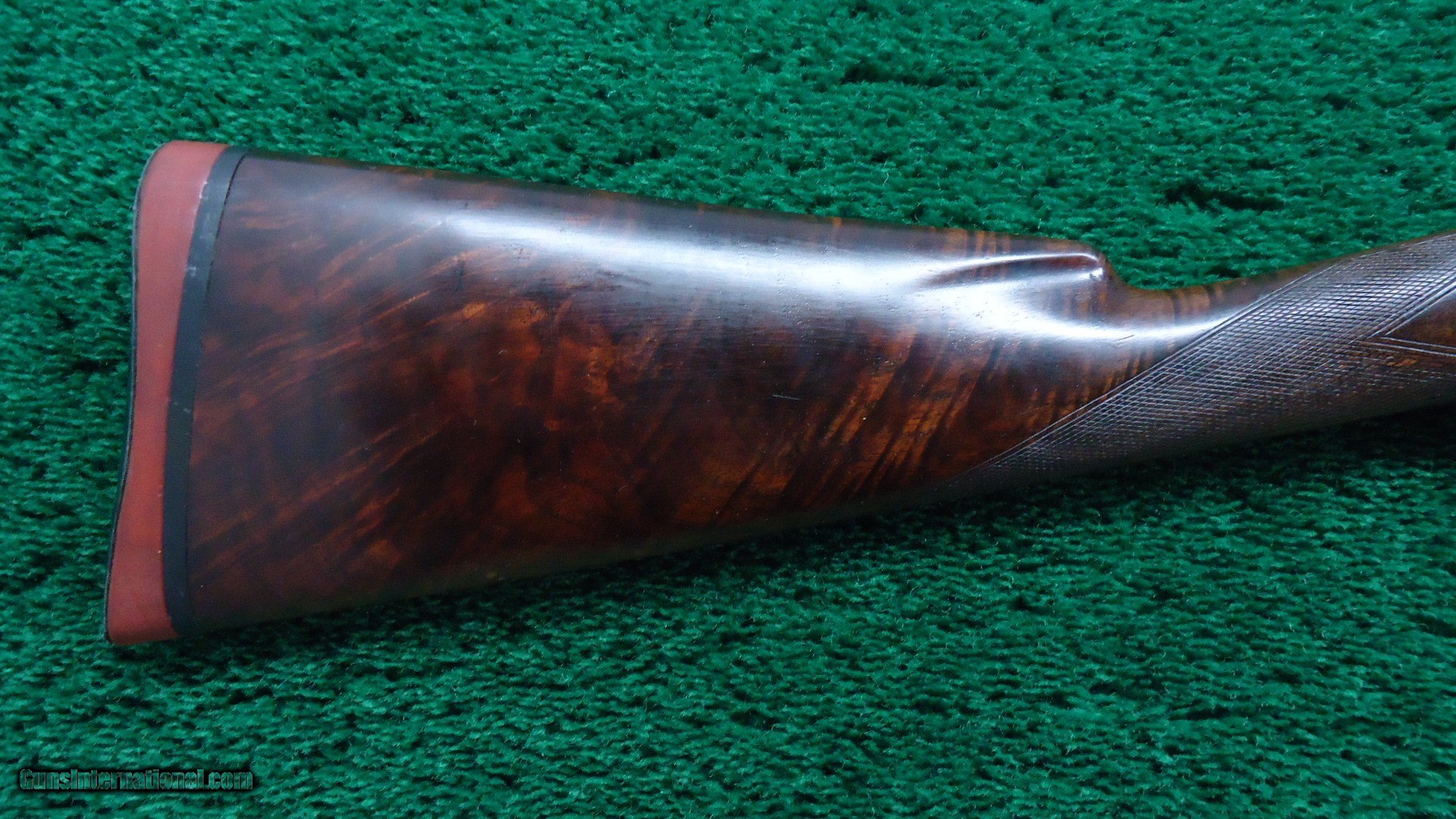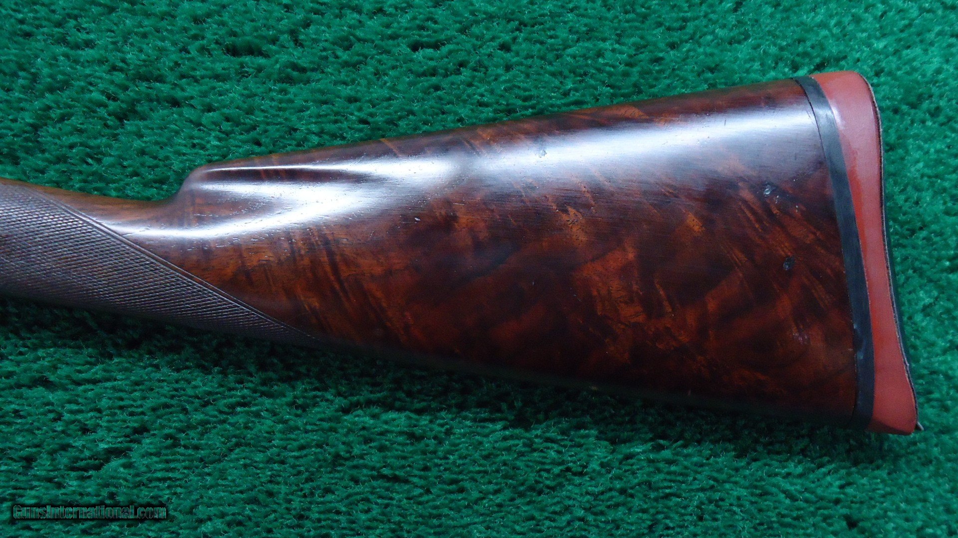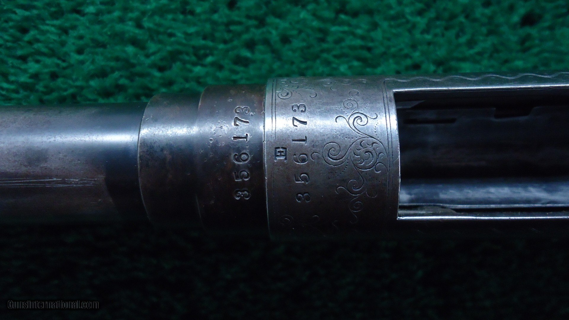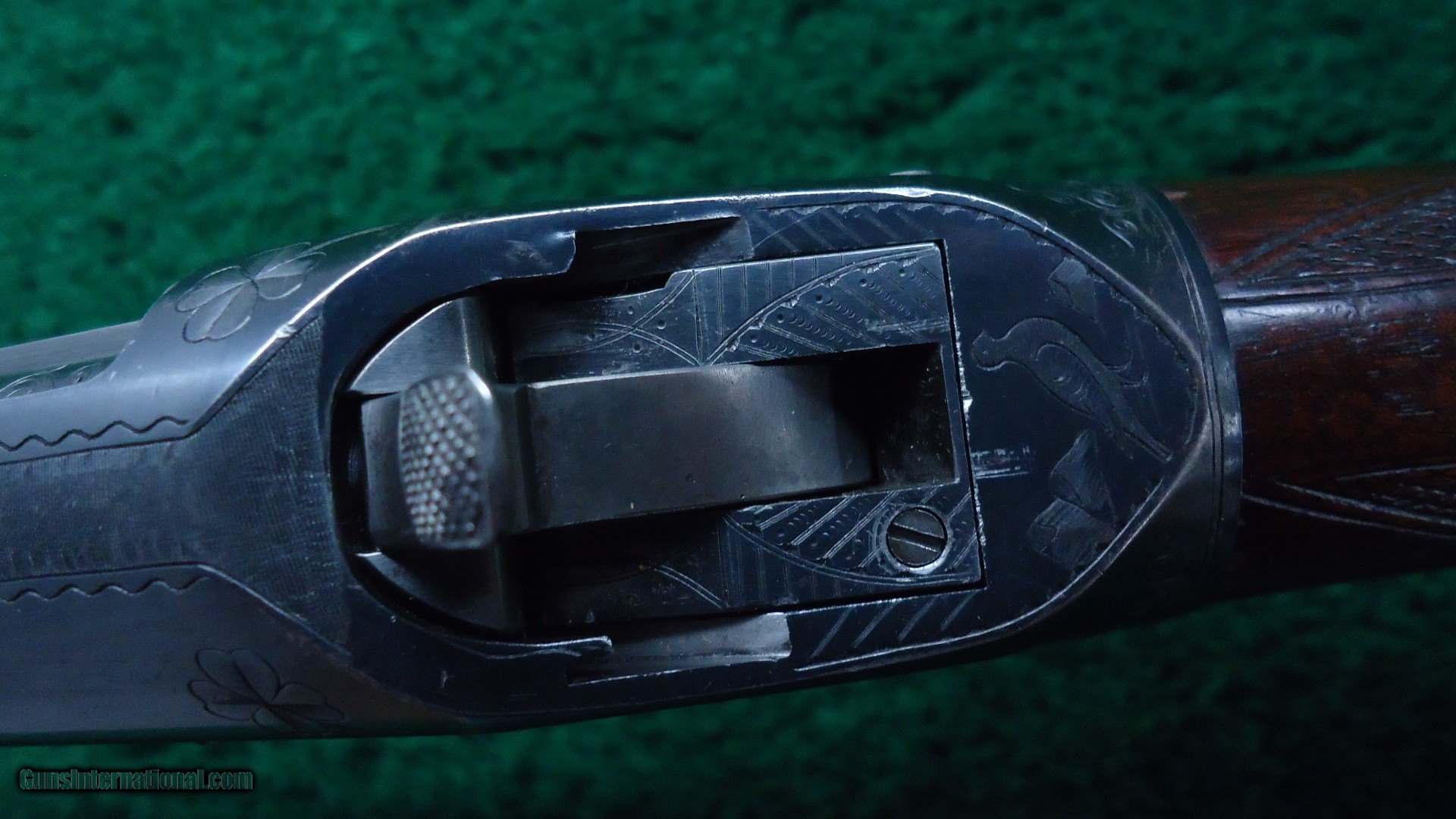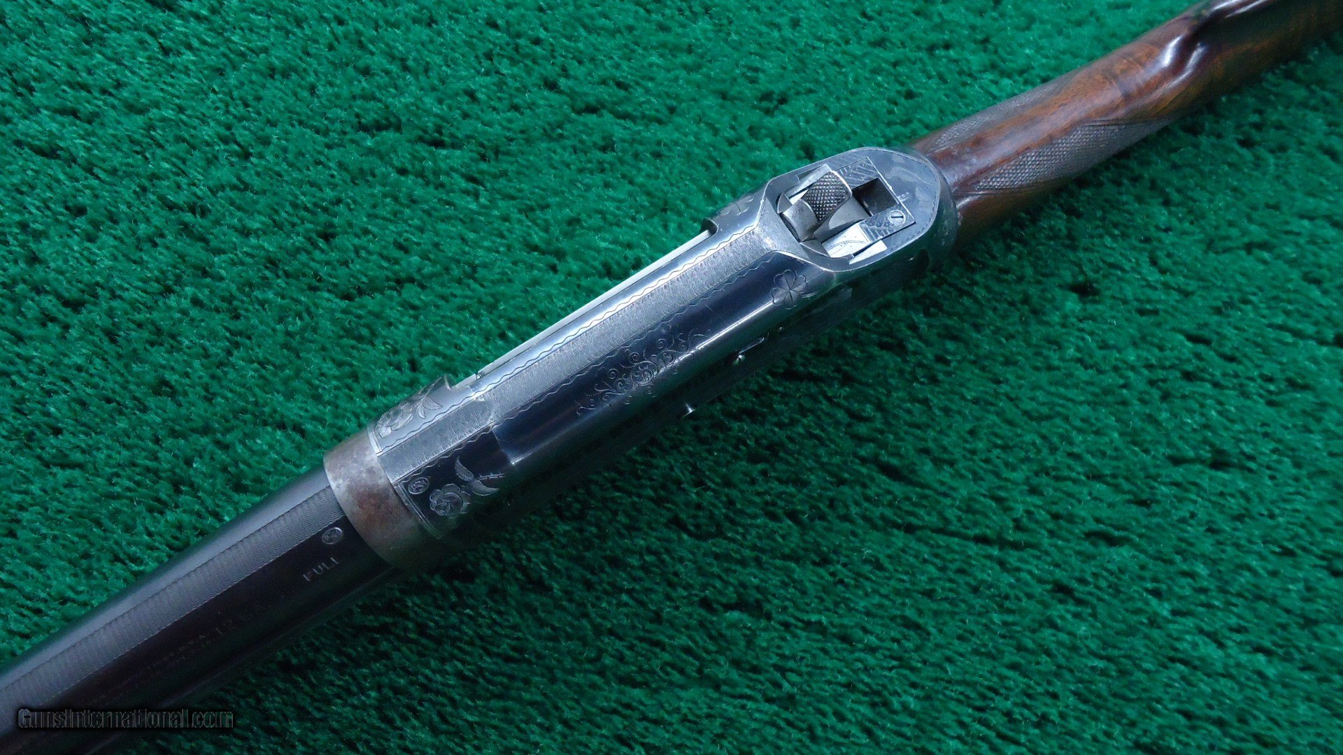 Description: Marked on the breech bolt is "Pigeon Gun". Gun is beautifully engraved with typical scene of 3 gentlemen and a dog shooting live pigeons over a trap ground. There is a rose engraved on the top of the receiver and a pigeon just behind the hammer. On the opposite side of the receiver is more game scenes. It is theorized that John Uhlrich engraved all of these. I don't know if that is true but it is quite possible. A very nice gun with a 30 inch plain matted rib barrel marked Full choke. Original fancy deluxe checkered wood is in very nice condition with sharp checkering and measures 13-1/2 inches to the end of a red recoil pad. Gun is overall very nice with 90% blue starting to tone slightly on the high points of the receiver. A few bad storage marks on the barrel. Other than that it is a pretty nice gun. Leroy Merz Antique Firearms specializes in antique and vintage Winchesters and other fine American firearms. Since 1965 Mr. Merz has taken part in the world of firearms and has been a contributor to many well known reference books. We have hundreds of additional guns in every price range at our home online. Search for Merz Antiques in google. SOLD Curio/Relic: Yes Shotgun Gauge: 12 Gauge |