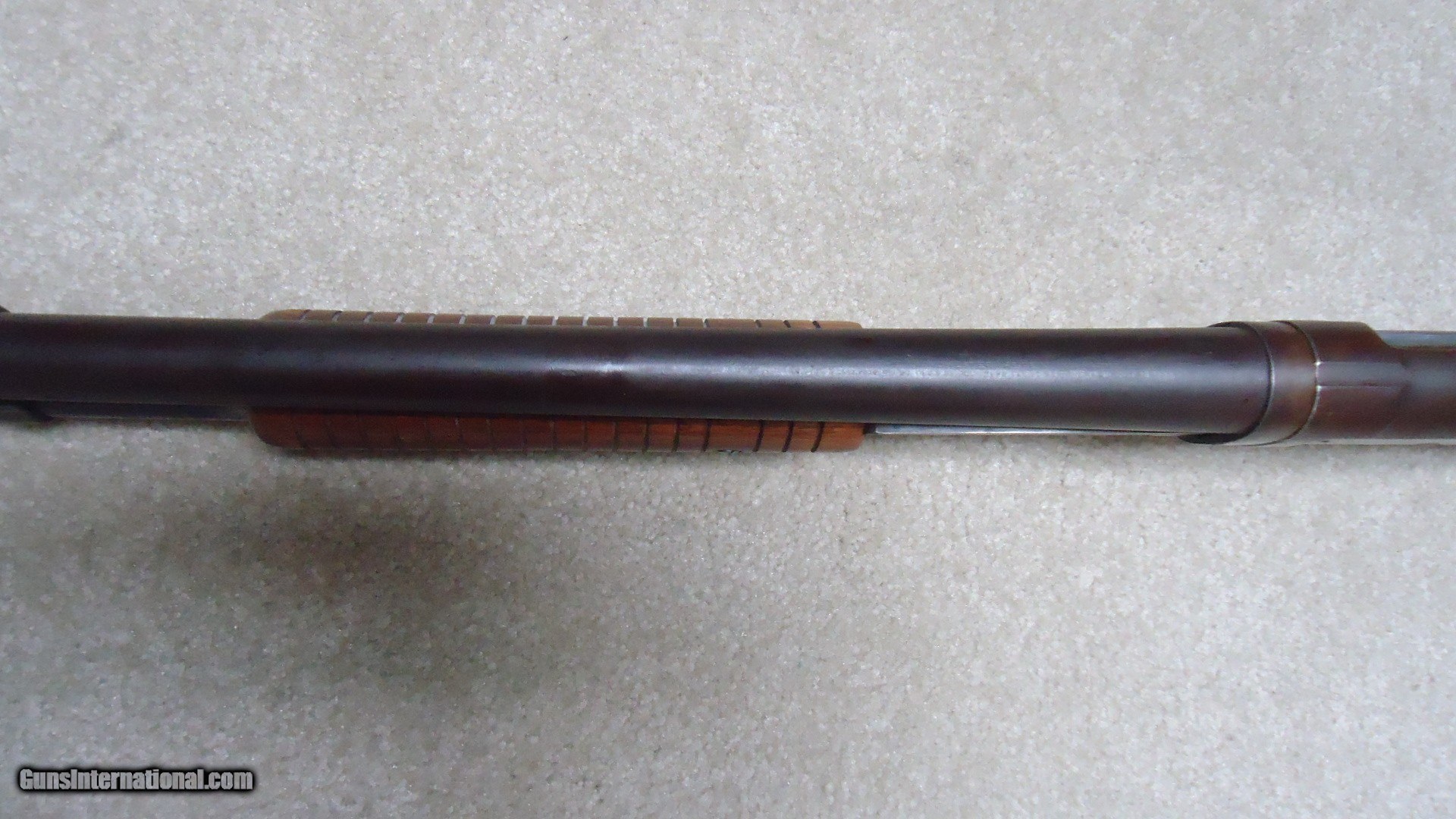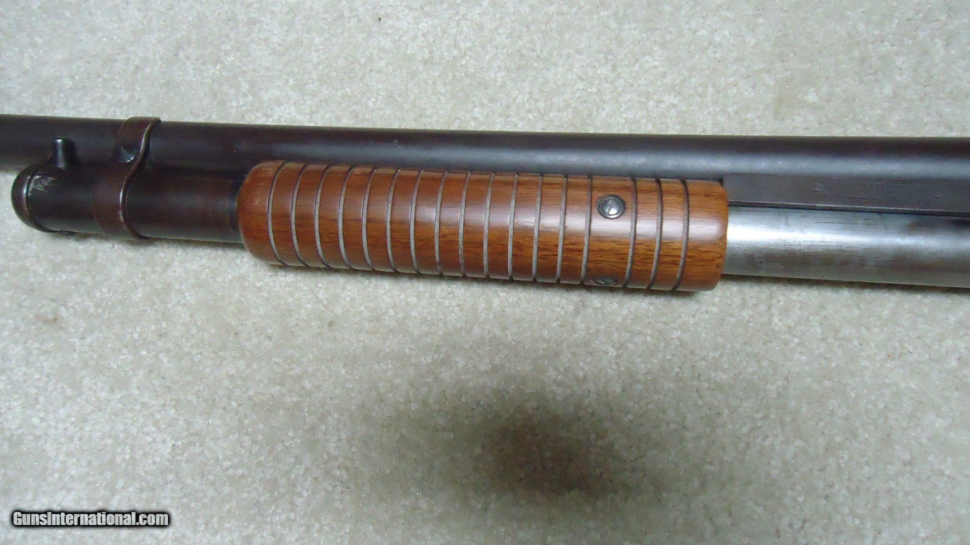 Description: SUPER RARE SPECIAL ORDER WINCHESTER MODEL 1897 12 GA. SHOTGUN WITH DAMASCUS BARREL (!), 30" FULL CHOKE, TAKEDOWN, #174XXX, MADE 1902. This one came out of here in Montana and is one of only a couple I've seen in decades that was special ordered with a damascus barrel. I contacted the Cody Museum and received a "call-in" sheet on this one that verifies the gauge, takedown, barrel length and states "Good Damascus." It was received in the warehouse August 13, 1902 and shipped the next day. The Model 1897 was first listed at $25 for the standard shotgun with "rolled steel barrel." Damascus was available in "Good" 3-blade Damascus and "Fine" 4-blade Damascus. The price for the "Good" added $15 to the standard $25 price! Being a field grade shotgun, one must wonder what the original purchaser thought he was getting with the "Good Damascus" barrel over the standard rolled steel barrel. Interesting that the Model 1897 was purely made for smokeless 2 3/4" 12 ga shells yet was offered in Damascus (also interesting is that Remington offered their side by side shotguns in Damascus and in their catalog stated they were proofed for smokeless shells). With all that said, this example has the early style butt stock with rounded pistol grip bottom and smooth steel butt plate. As is often the case with special order Winchesters, this one has a higher than standard grade of walnut. The stock is solid and shows only light handling- a good cleaning of the wood would bring out the fancier grain. The forend has either been replaced or refinished as it is in better condition than the rest of the gun. The forend is the correct early style with three screws securing it. The takedown is tight and the action functions fine. The receiver is an uncleaned and aged blue to plum/brown. Similarly, the barrel is a dark and uncleaned brownish with good markings and damascus pattern. The bore is bright and excellent. with one shallow ring about 6 inches from the muzzle. A most unusual 120 year old early Model 1897. SOLD Shotgun Gauge: 12 Gauge Manufacturer: Winchester Model: 1897 SPECIAL ORDER Serial Number: 174XXX Barrel Length: 30 Condition: FINE |