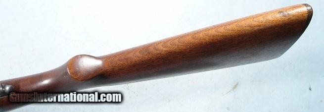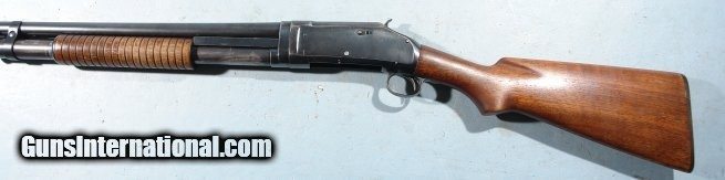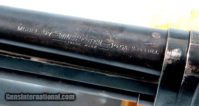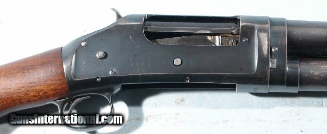 Description: WARTIME (WW2) WINCHESTER MODEL 97 OR 1897 16GA. 28" 2 3/4" PUMP SHOTGUN, CIRCA 1942. Serial number "E8781XX". Chambered for 2 3/4" shells and so marked on "Full" choked barrel standard barrel. All matching with excellent screws. Original blue overall with 90% factory brilliant blue. Original factory varnish on original forend and buttstock with original factory Winchester hard rubber buttplate. Nice tight action and perfect smooth working order. Made during WW2. SOLD Curio/Relic: Yes |