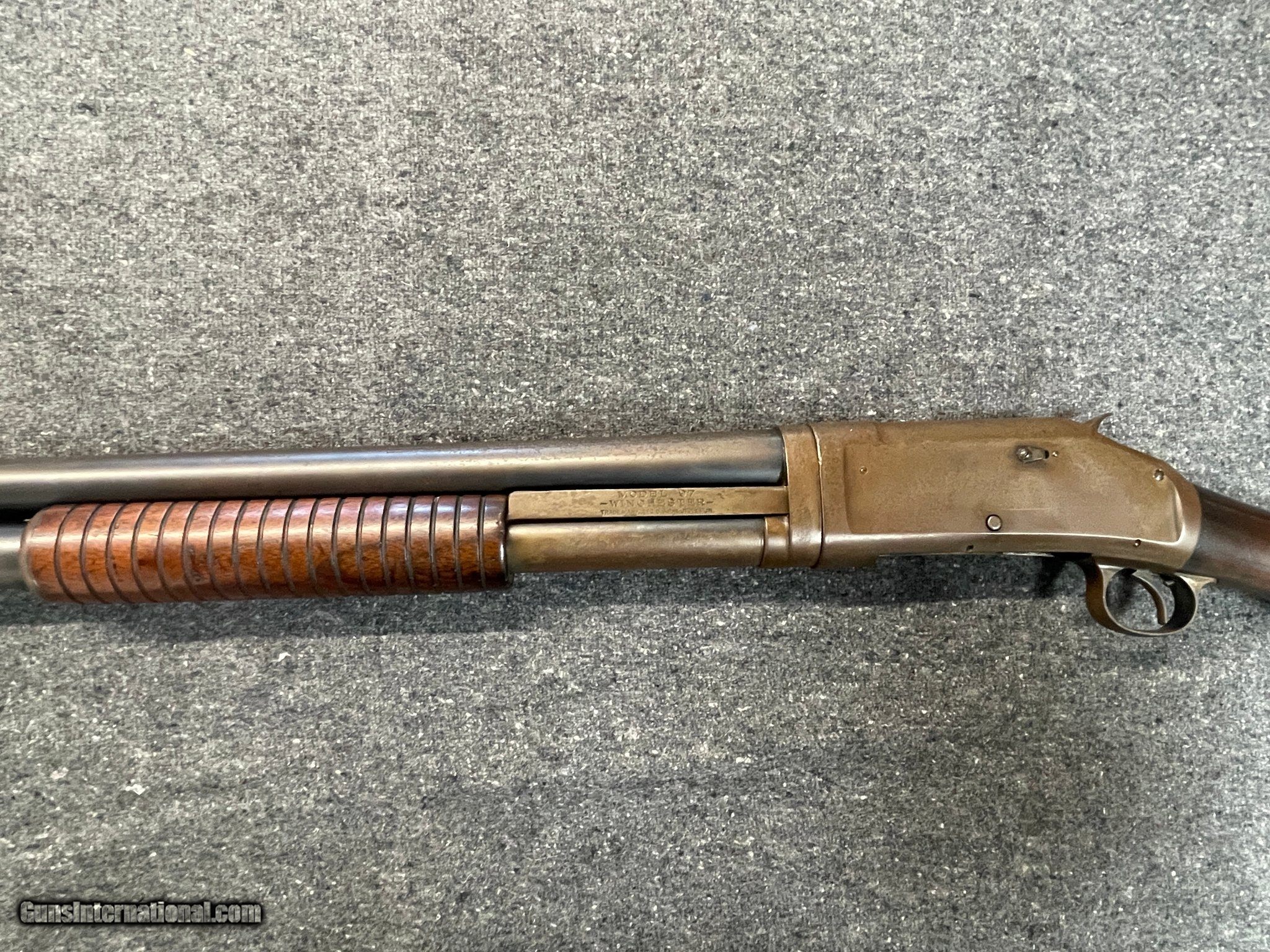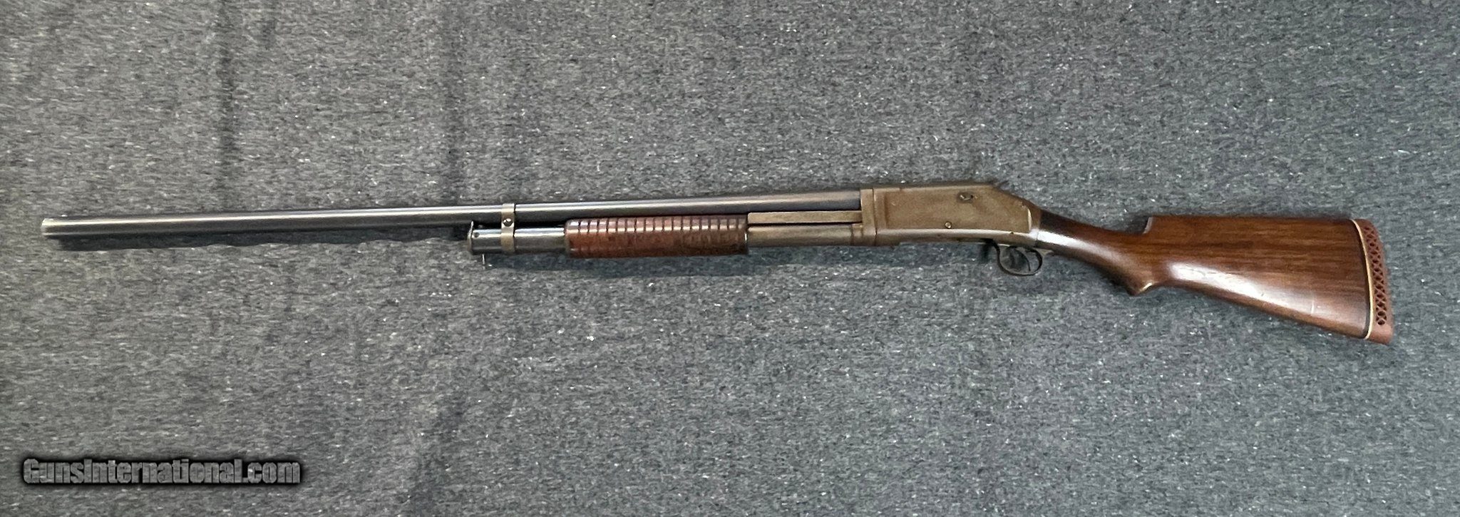 Description: Guns Listing ID: 1295116 Designed by John Browning, the Winchester Model 1897 is a pump action, 12-guage shotgun first introduced in late 1897. It was a variant of the Model 1897 that became known as the \"trench gun\" or \"trench sweeper\". The trench sweeper variant had a 20-inch barrel, heat shield and bayonet lug, giving it a distinctive profile that remains iconic. This example is a standard grade 1897. It is in good condition with finish wear on the receiver and barrel. The forend pump and stock have only minor dings and scratches and a recoil pad has been added to the stock. SOLD Curio/Relic: Yes Manufacturer: WINCHESTER Model: 1897 Condition: Used - Non-Certified Barrels: 30 BARREL Gauge Info: 12 GA |
