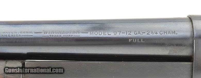 Description: Winchester 1897 12 Gauge shotgun. Hammer pump gun made in 1912. Has a 30” full choke barrel. The metal has been refinished, the wood is original and in good condition The bore and action are excellent. A good looking gun, ready for the field.