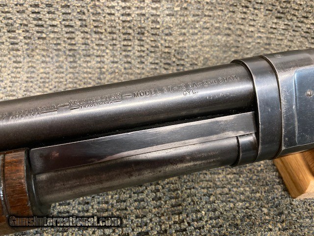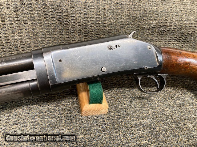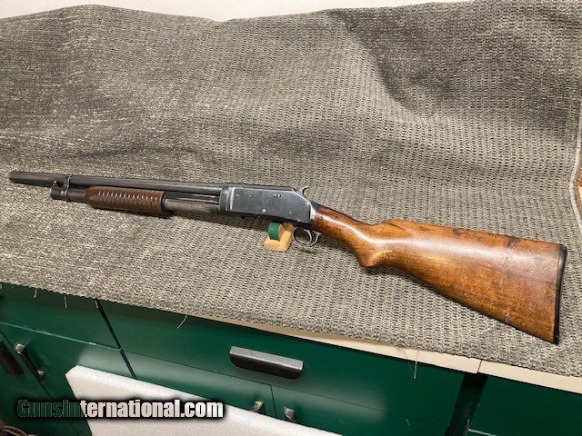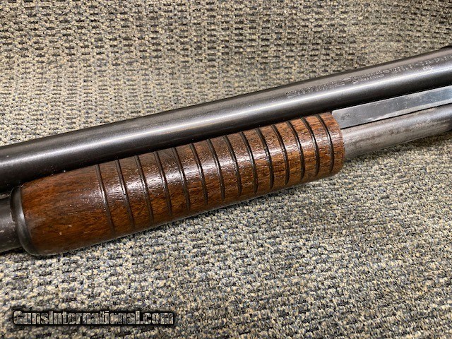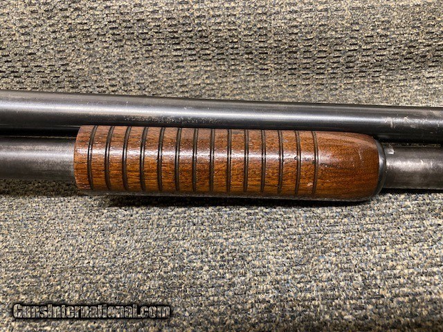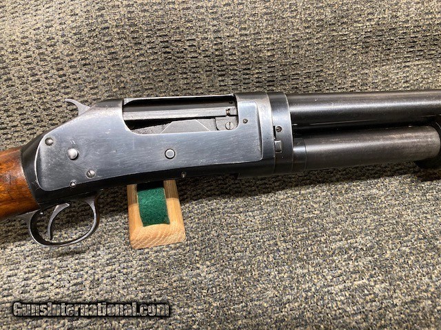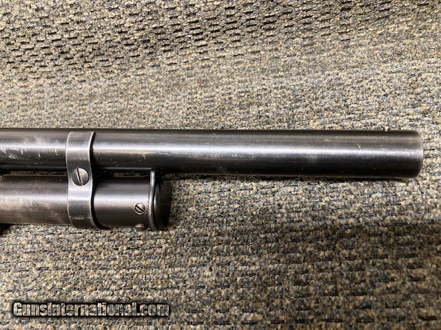 Description: NICE 1897 Commercial Riot gun. 1954 mfg. All original. 20" barrel stamped 'CYL'. Solid 80% blueing. Forearm wood excellent 90%. Buttstock has some bumps and bruises. I'd rate 80%. Action is tight and solid. This is a nice example of a late 97 Riot. NO CA Sales. $50.00 Shipping to your FFL. SOLD |
