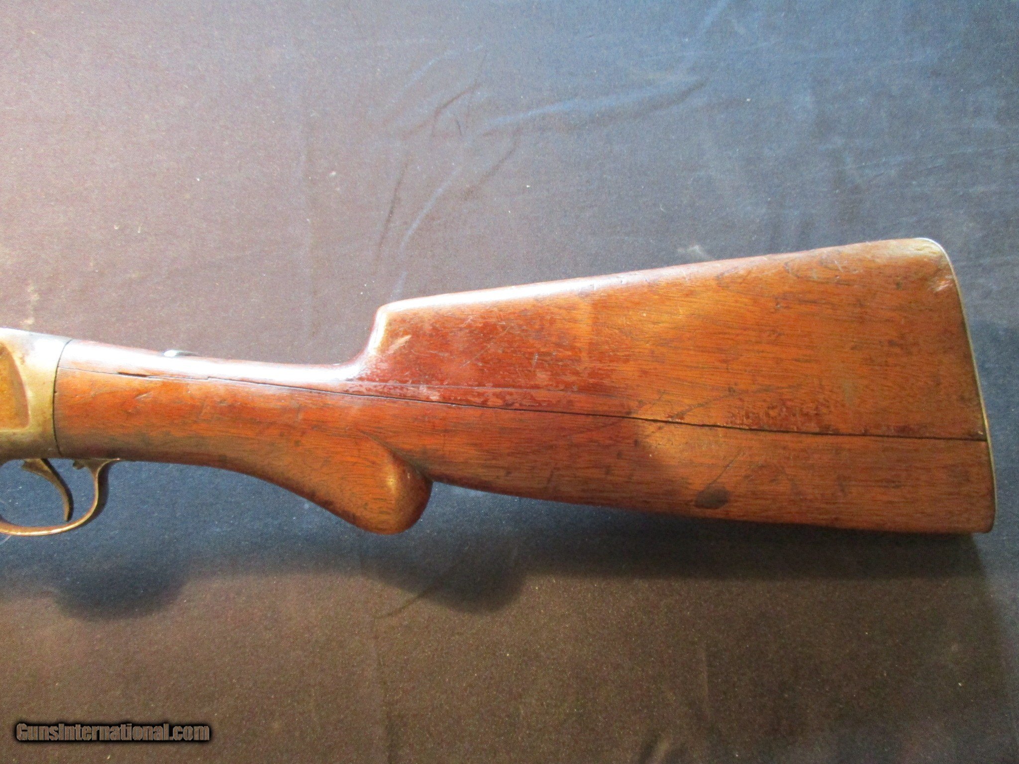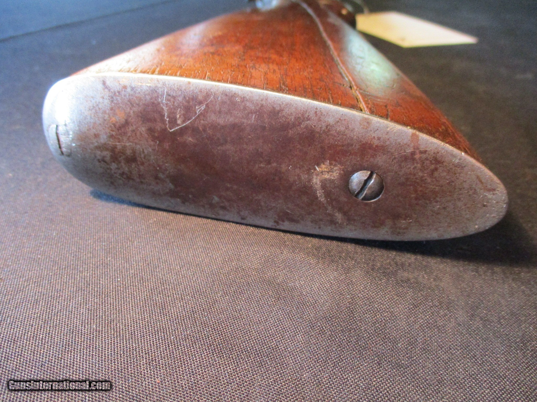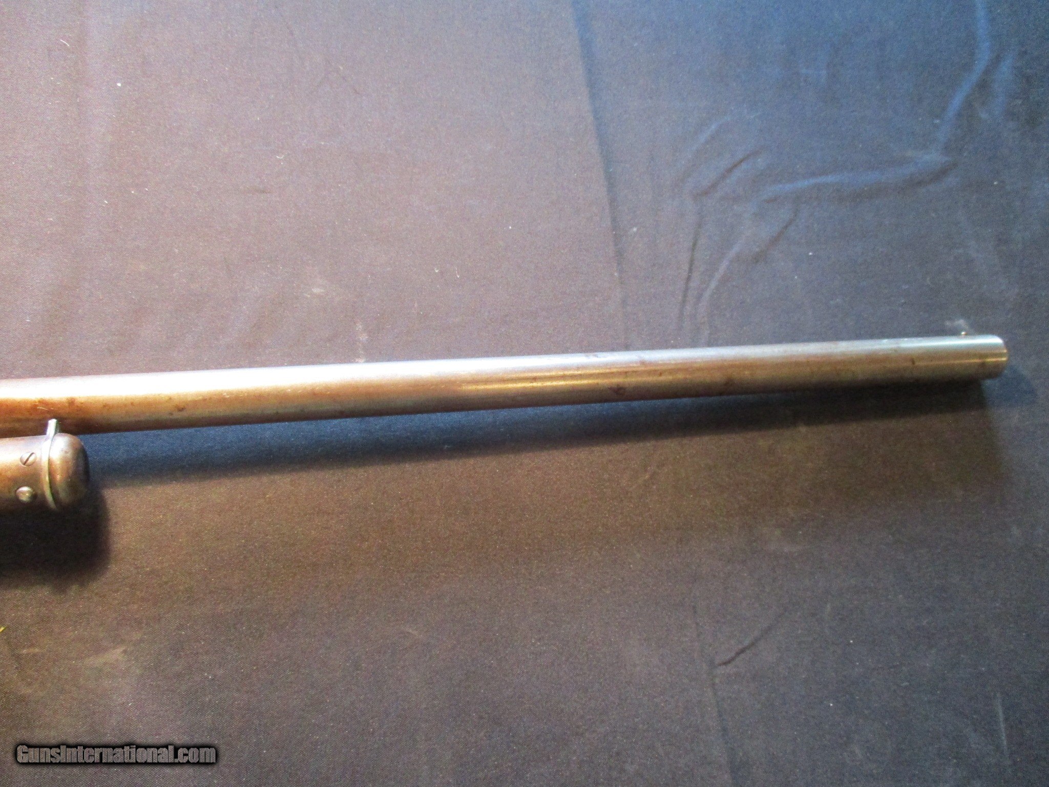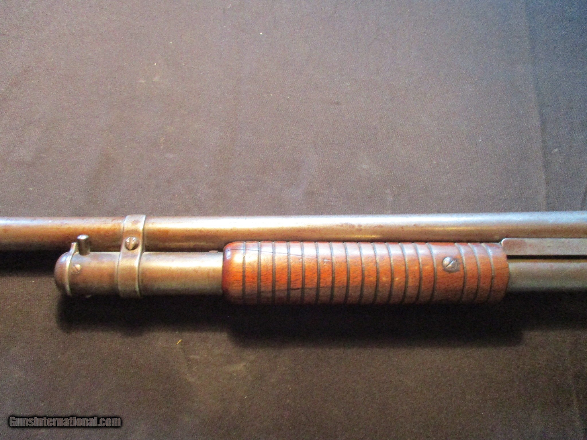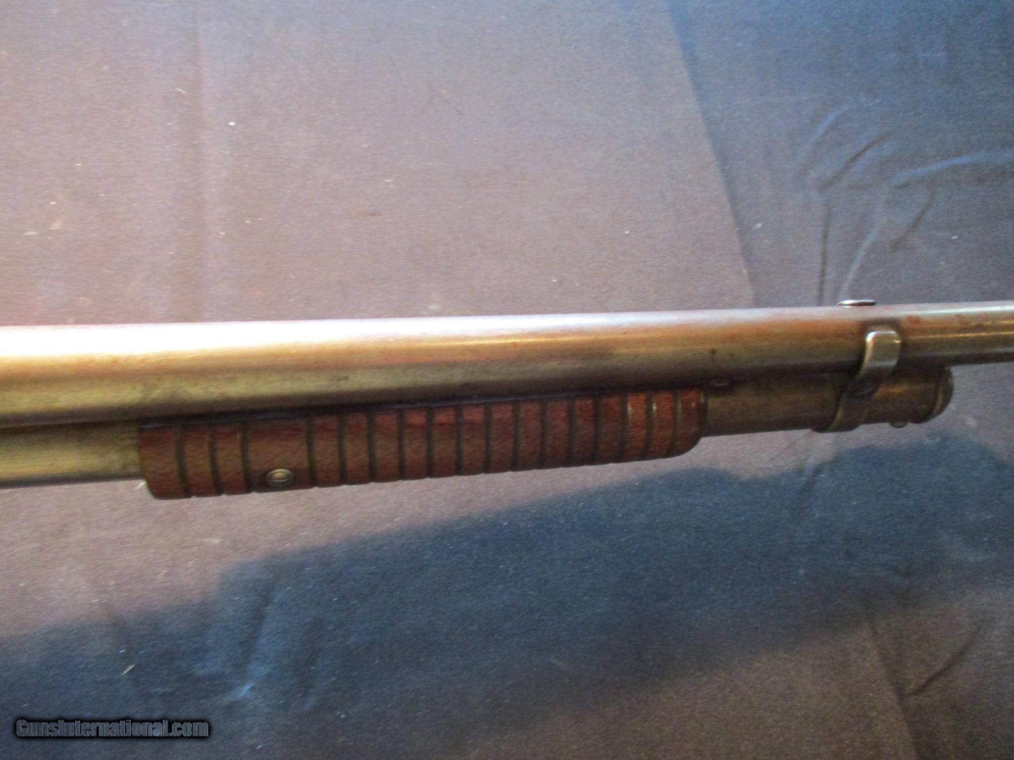 Description: Winchester Model 1897., 12ga, 2.75" chamber, 32" plain barrel, fixed full choke. SN is 1892xx, factory finish on both wood metal. Stock has been cracked and repaired as shown, looks pretty cool, testament to the turn of the century mentality of "Fix" not "replace or throw away". It is a bit loose at the joint, there is a way to tighten them, but I cant remember how. Email me if you would like these pics sent to you, they will come through bigger and better than on the listing page here. We do offer Lay-A-Way. Our standard terms are 25% down, 90 days. Initial deposit is not refundable. Email me with any questions. I am a store front dealer, and I will close s if the gun sells locally. Once it has aI will pull it from my shelves. Please check your local laws to confirm it is legal to own in your state! Buyer pays $25 shipping and insurance to your FFL in the lower 48. AK, HI or PR is extra. I will ship to California, NO PROBLEM! All my guns come with a non firing, 3 day unconditional return privilege, from the day UPS delivers to your dealer. Buyer pays shipping both ways if the gun comes back. I can add a new hard case by PLANO for secure shipping for $25 if the buyer wishes (highly recommended, cheap insurance, really helps keep the UPS monster from eating my guns!). No sales tax on guns ship out of Kansas, guns sold in Kansas are subject to Kansas sales tax. I am a licensed FFL, and will include a copy of my FFL with the gun for your dealers records. I will ship to a C&R if the gun is eligible. I will ship to California, but you need to confirm the gun is legal where you are, California or other. I am always looking for good clean, old original Winchesters to buy, consign, or trade, especially pre '64's model 70's and model 54's. WE ALSO TRADE FOR CLASSIC CARS AND TRUCKS! Email me with any questions, and good luck! SOLD |