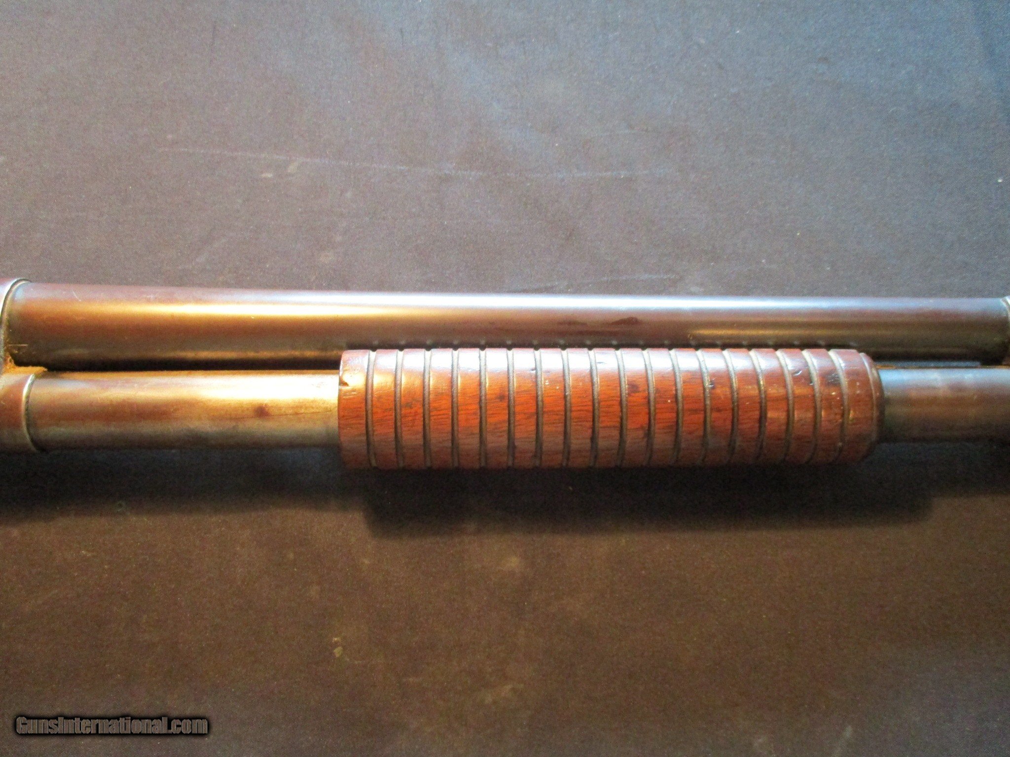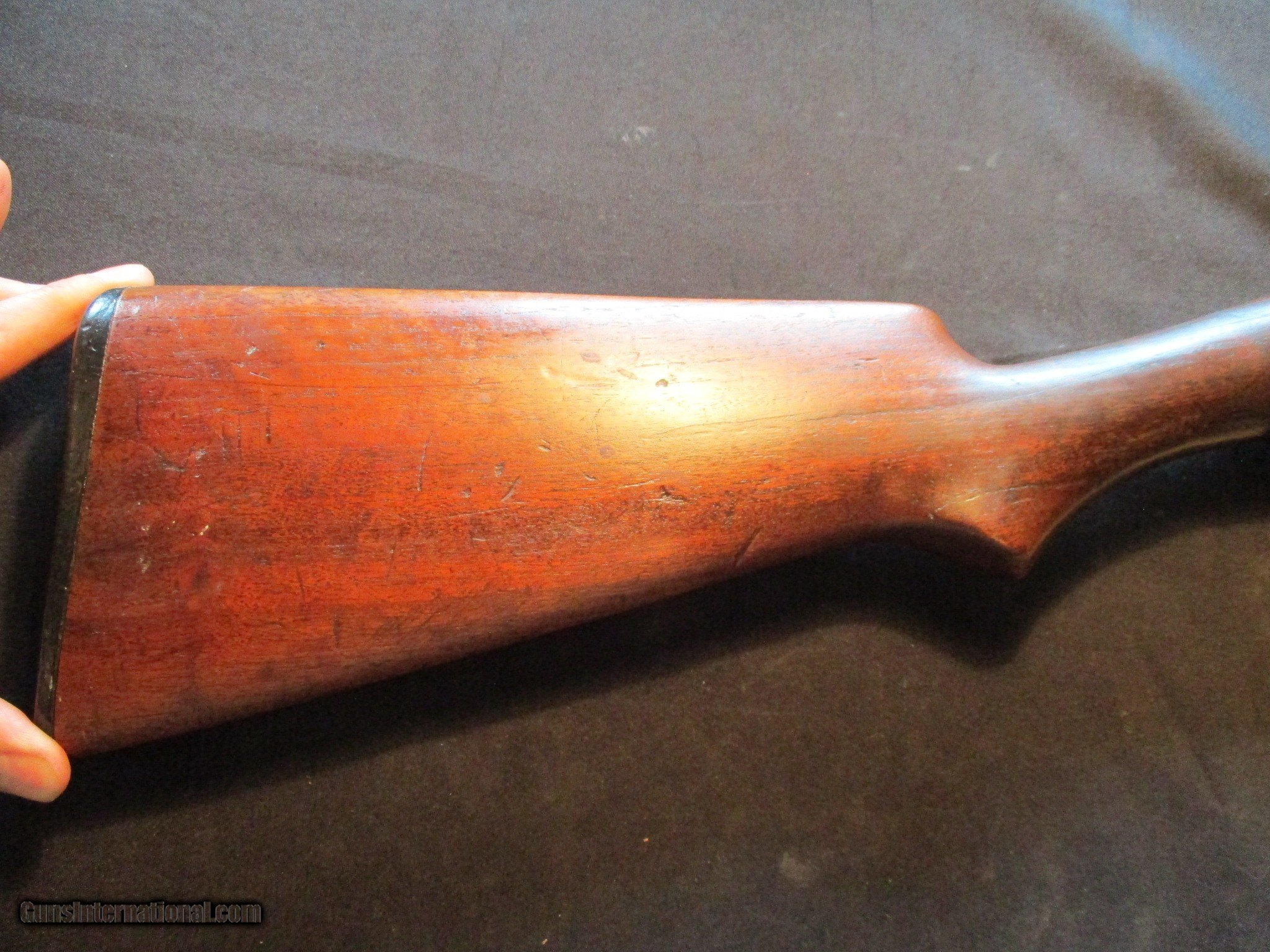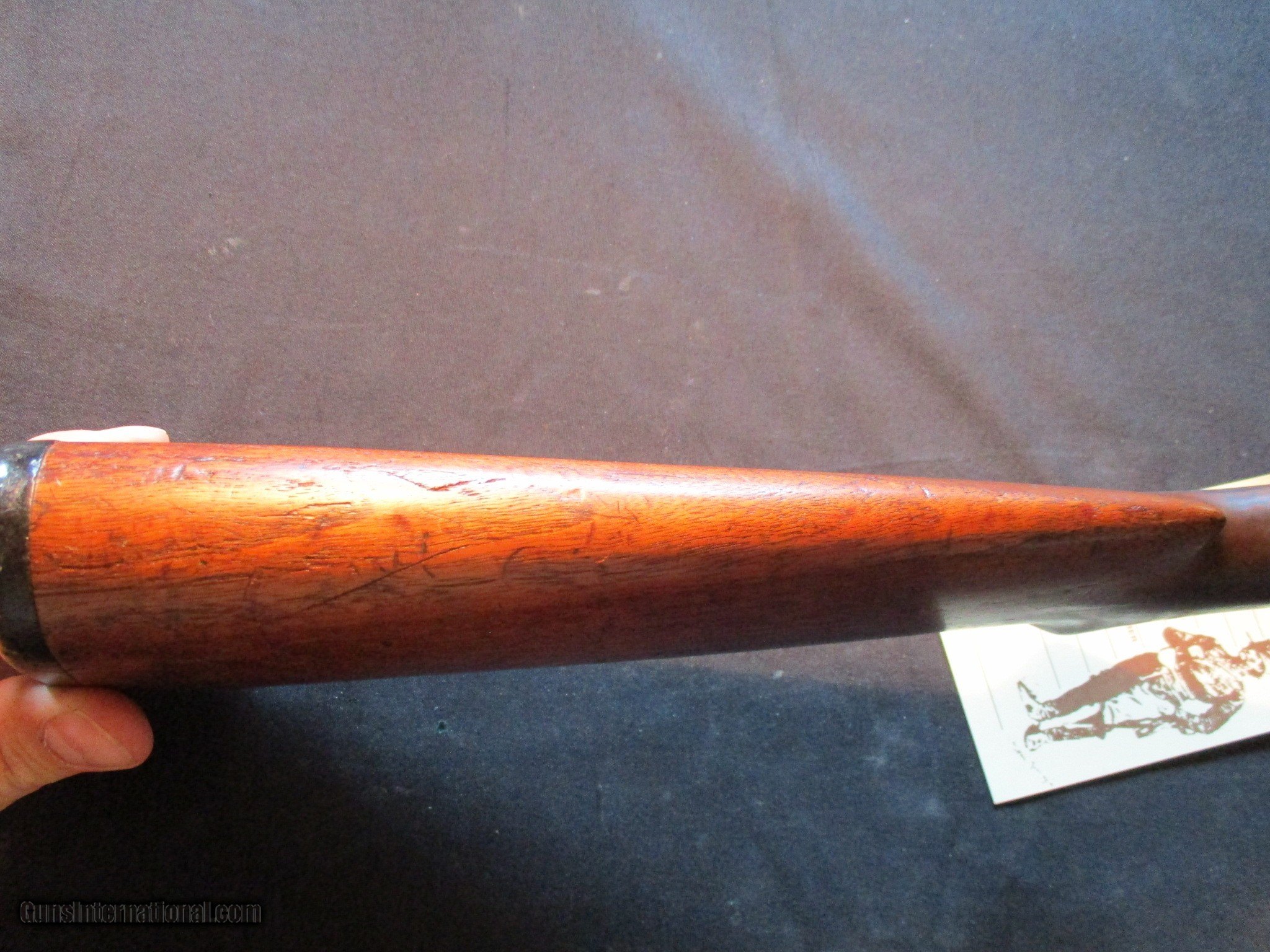 Description: Winchester Model 1897 Take down, 12ga, 2.75" chamber, 30" full, SN is 7422xx, both numbers do match. Factory finish on both wood and metal, good working order, nice old gun. Email me if you would like these pics sent to you, they will come through bigger and better than on the listing page here. We do offer Lay-A-Way. Our standard terms are 25% down, 90 days. Initial deposit is not refundable. Email me with any questions. I am a store front dealer, and I will close s if the gun sells locally. Once it has aI will pull it from my shelves. Please check your local laws to confirm it is legal to own in your state! Buyer pays $25 shipping and insurance to your FFL in the lower 48. AK, HI or PR is extra. I will ship to California, NO PROBLEM! All my guns come with a non-firing, 3 day unconditional return privilege, from the day UPS delivers to your dealer. Buyer pays shipping both ways if the gun comes back. I can add a new hard case by PLANO for secure shipping for $25 if the buyer wishes (highly recommended, cheap insurance, really helps keep the UPS monster from eating my guns!). No sales tax on guns ship out of Kansas, guns sold in Kansas are subject to Kansas sales tax. I am a licensed FFL, and will include a copy of my FFL with the gun for your dealer’s records. I will ship to a C&R if the gun is eligible. I will ship to California, but you need to confirm the gun is legal where you are, California or other. WE BUY AND CONSIGN GUNS AND GUN COLLECTIONS! We will travel to pick up collections! I am always looking for good clean, old original Winchesters to buy, consign, or trade, especially Pre '64's model 70's and model 54's. WE ALSO TRADE FOR CLASSIC CARS AND TRUCKS! Email me with any questions, and good luck! SOLD |