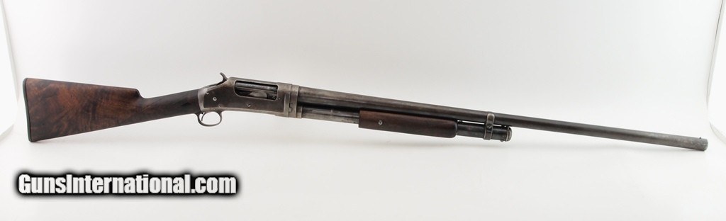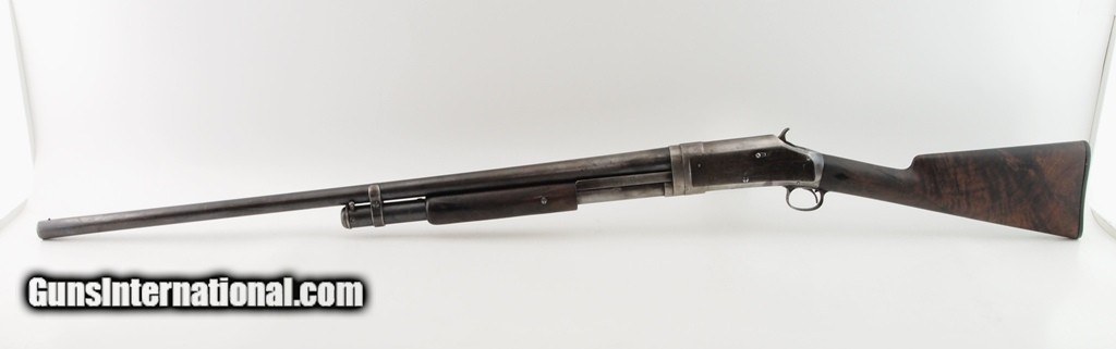 Description: Winchester 1897 Trap Black Diamond MFG 1902 12 GA, 30" FULL choke bbl, shiny smooth bore, brass bead front sight, blued finish is turning to a brown grey patina, checkered hardwood straight butt stock - forearm, LOP - 12 1/4", and black Winchester butt plate. Add 3% for Credit Card Shipping $35.00 SOLD |