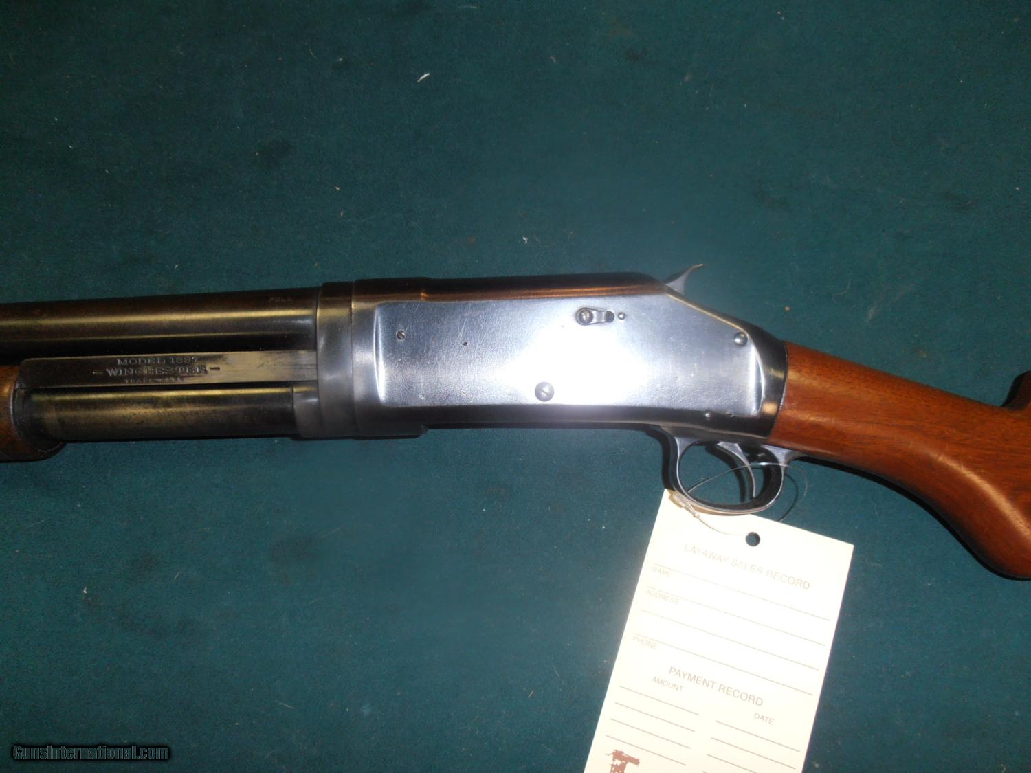 Description: Winchester 1897, 12ga with 30" barrel, fixed full choke. SN is 3436xx, numbers on both match. Nice old shooter, good bore, locks up nice and solid. Email me if you would like these pics sent to you, they will come through bigger and better than on the listing page here. Email me with any Beretta, Benelli, Sako, Franchi, Stoeger, or Uberti needs. Email me with any questions. I am a store front dealer, and I will close s if the gun sells locally. Once ahas reached my reserve, I will pull it from my shelves. Please check your local laws to confirm it is legal to own in your state! Buyer pays $25 shipping and insurance to your FFL, in the lower 48. AK, HI or PR is extra. I will ship to California, NO PROBLEM! All my guns come with a non firing, 3 day unconditional return privilege, from the day UPS delivers to your dealer. Buyer pays shipping both ways if the gun comes back. I can add a new hard case by PLANO for secure shipping for $25 if the buyer wishes (highly recommended, cheap insurance, really helps keep the UPS monster from eating my guns!). No sales tax on guns ship out of Kansas, guns sold in Kansas are subject to Kansas sales tax. I am a licensed FFL, and will include a copy of my FFL with the gun for your dealers records. I will ship to a C&R if the gun is eligible (you look it up!). I will ship to California, but you need to confirm the gun is legal where you are, California or other. I am always looking for good clean, old original Winchesters to buy, consign, or trade, especially pre '64's model 70's and model 54's. WE ALSO TRADE FOR CLASSIC CARS AND TRUCKS! I will leave feedback as soon as the buyer leaves feedback on me. Email me with any questions, and good luck! SOLD |
