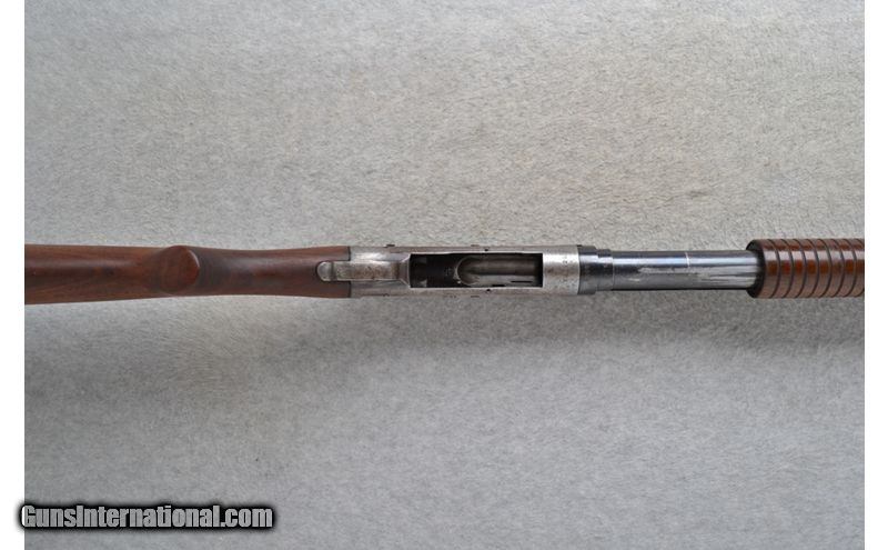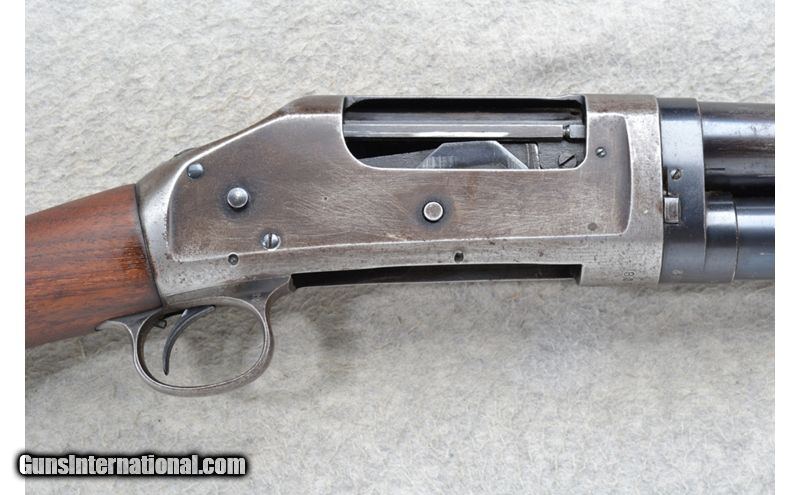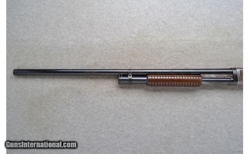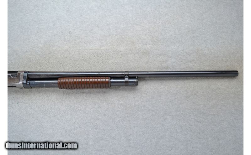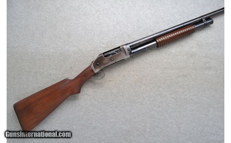 Description: This Winchester Model 97 is a right hand pump action 12 Ga. shotgun. It has a 30 inch barrel. A metal bead front sight. In 2 3/4 inch chamber it has a fixed Full choke. The butt stock is smooth grip walnut pistol grip. The forearm is a ribbed grip walnut. Serial Number 880076 (1942). 12 Gauge SOLD Curio/Relic: Yes Chambers: Pump Action 2 3/4 inch chamber. Metal Condition: "Fair. Has wear, handling marks, freckling and patina. Wood Condition: Very good. Butt stock looks replaced. Bore Condition: Bright and shiny. Barrels: 30 inch barrel. Stock Dimensions: LOP 13 3/4 inches. Fore End: Ribbed grip walnut. Butt Pad: Winchester checkered black plate. Weight: 7 LB. 15 OZ. Sights: Metal front bead. Chokes: Fixed Full. Item Location: Richfield, WI |
