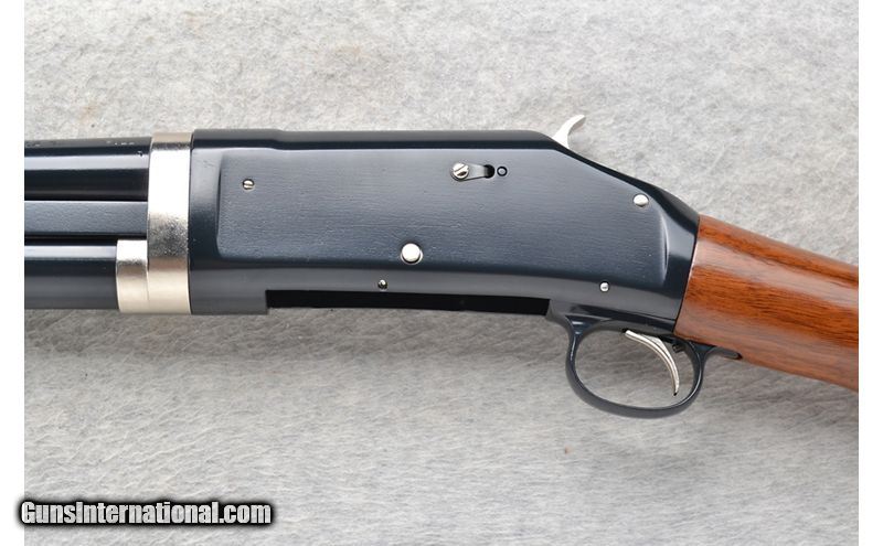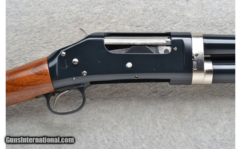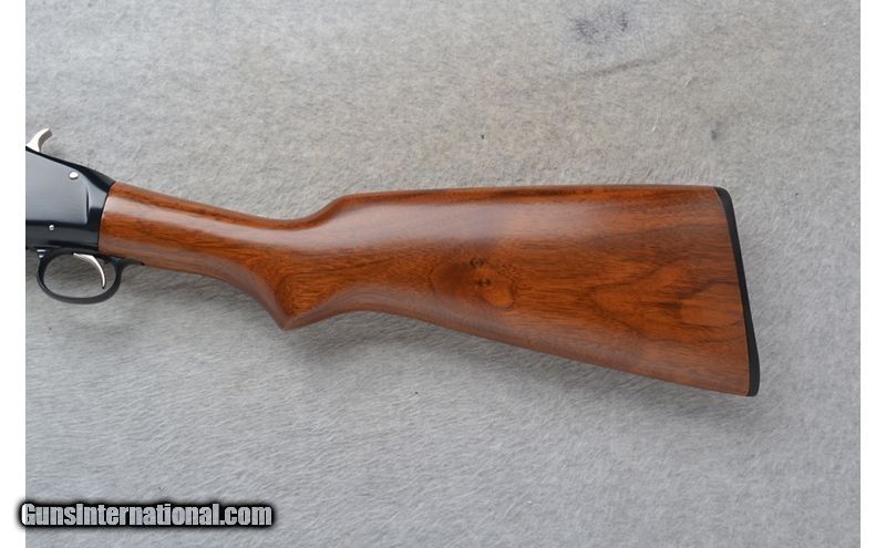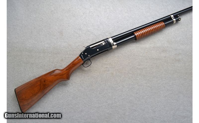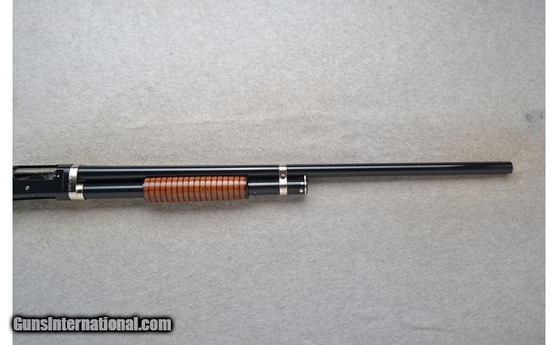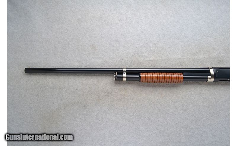 Description: This Winchester Model 97 is a right hand pump action shotgun in 12 Ga. It has a 3 inch barrel with a brass bead front sight. With a 2 3/4 inch chamber it has a fixed Full choke. The butt stock is a smooth grip walnut pistol grip. The forearm is a ribbed grip walnut. This gun has been professionally refurbished. S/N 770836 (1927). 12 Gauge SOLD Chambers: 2 3/4 inch. Metal Condition: Excellent. Professionally refinished. Wood Condition: Excellent. Professionally refinished. Bore Condition: "Clean, bright and shiny. Barrels: 30 inch. Stock Dimensions: LOP 13 7/8 inch. Fore End: Ribbed grip walnut. Butt Pad: Horizontal grooved black plate. Weight: 7 lb. 13 oz. Sights: Brass front bead. Chokes: Fixed Full. Item Location: Richfield, WI |