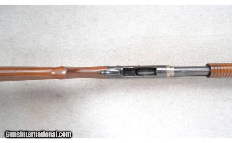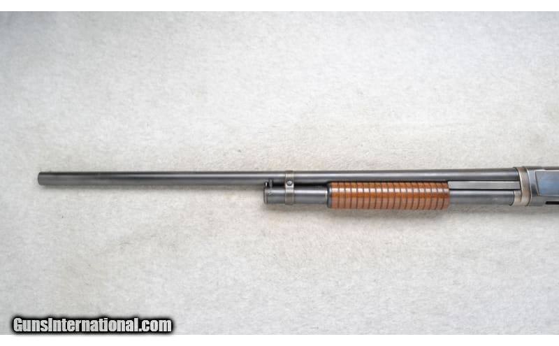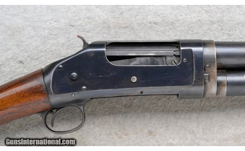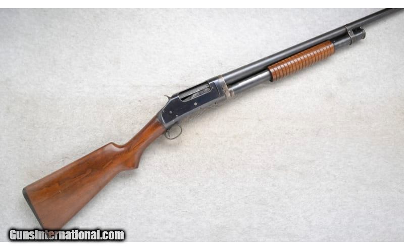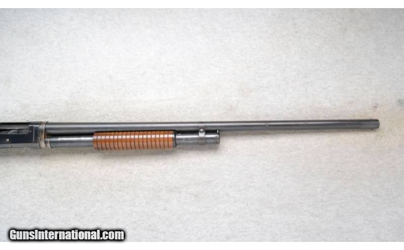Description: This Winchester Model 97 is a right hand pump action shotgun in 12 Ga. It has a 30 inch barrel with a metal bead front sight. With a 3 inch chamber it has a fixed Full choke. The butt stock is a smooth grip walnut pistol grip. The forearm is a grooved grip walnut. Serial Number 855569 (1939). 12 Gauge SOLD Chambers: 3 inch. Metal Condition: "Fair. Has light blue wear, freckling and rust spots. Wood Condition: Very Good. Some light handling marks. Bore Condition: Shiny. Barrels: 30 inch barrel. Stock Dimensions: LOP 14 inches. Fore End: Grooved grip walnut. Butt Pad: Winchester checkered black plate. Weight: 7 Lb. 14 Oz. Sights: Metal bead front. Chokes: Fixed Full. Item Location: Richfield, WI |