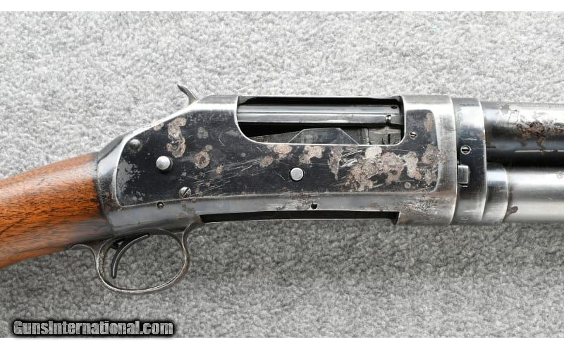 Description: The Winchester 97 was made from 1897 to 1957. This Winchester Model 97 was made in 1946 and appears to have been stored improperly. 12 Gauge SOLD Curio/Relic: Yes Chambers: 12 Gauge 2 3/4" chamber Metal Condition: "Poor, scattered rust patches, some severe. Numerous scratches Wood Condition: "Fair, scratches and indentations Bore Condition: "Surprisingly good, bright and clean Barrels: 30 Triggers: Factory Stock Dimensions: 13 1/4" LOP Fore End: Grooved slider Butt Pad: Locatop vented rubber Weight: 8 lbs. Sights: Metallic bead Chokes: Fixed Full Item Location: Grand Junction, CO |