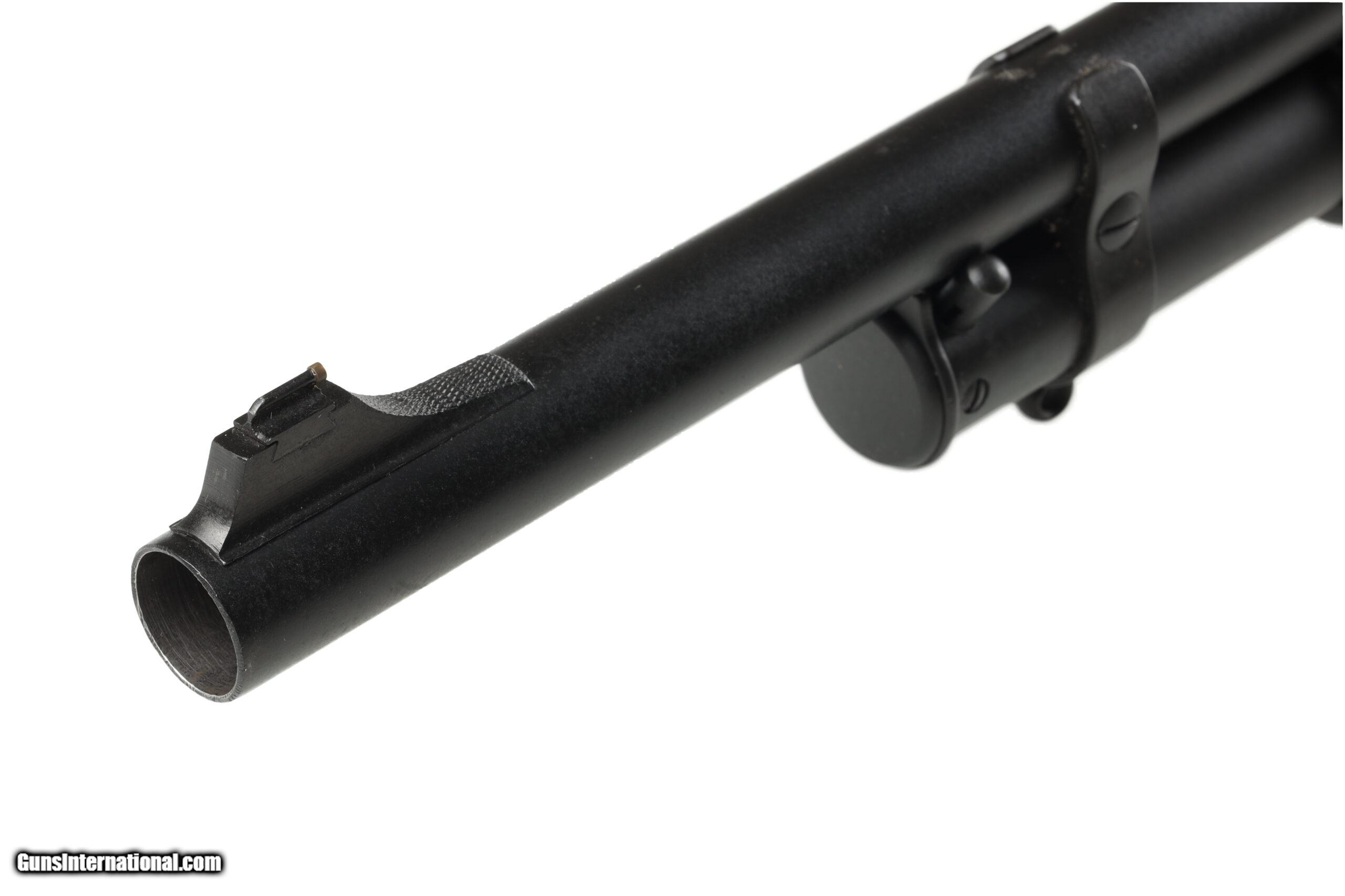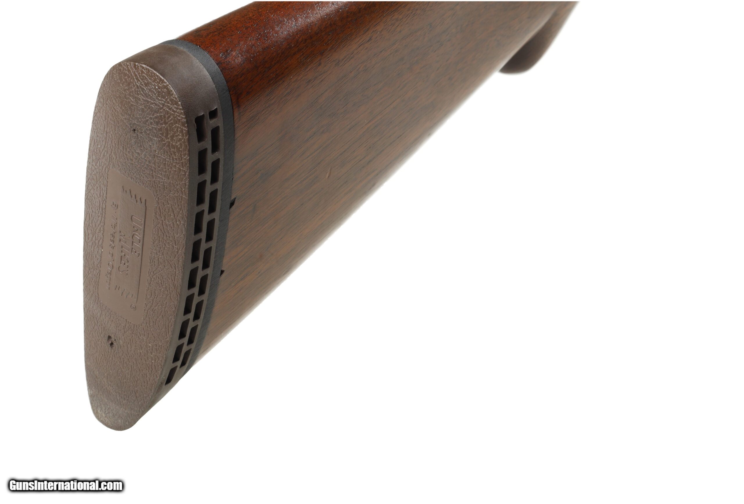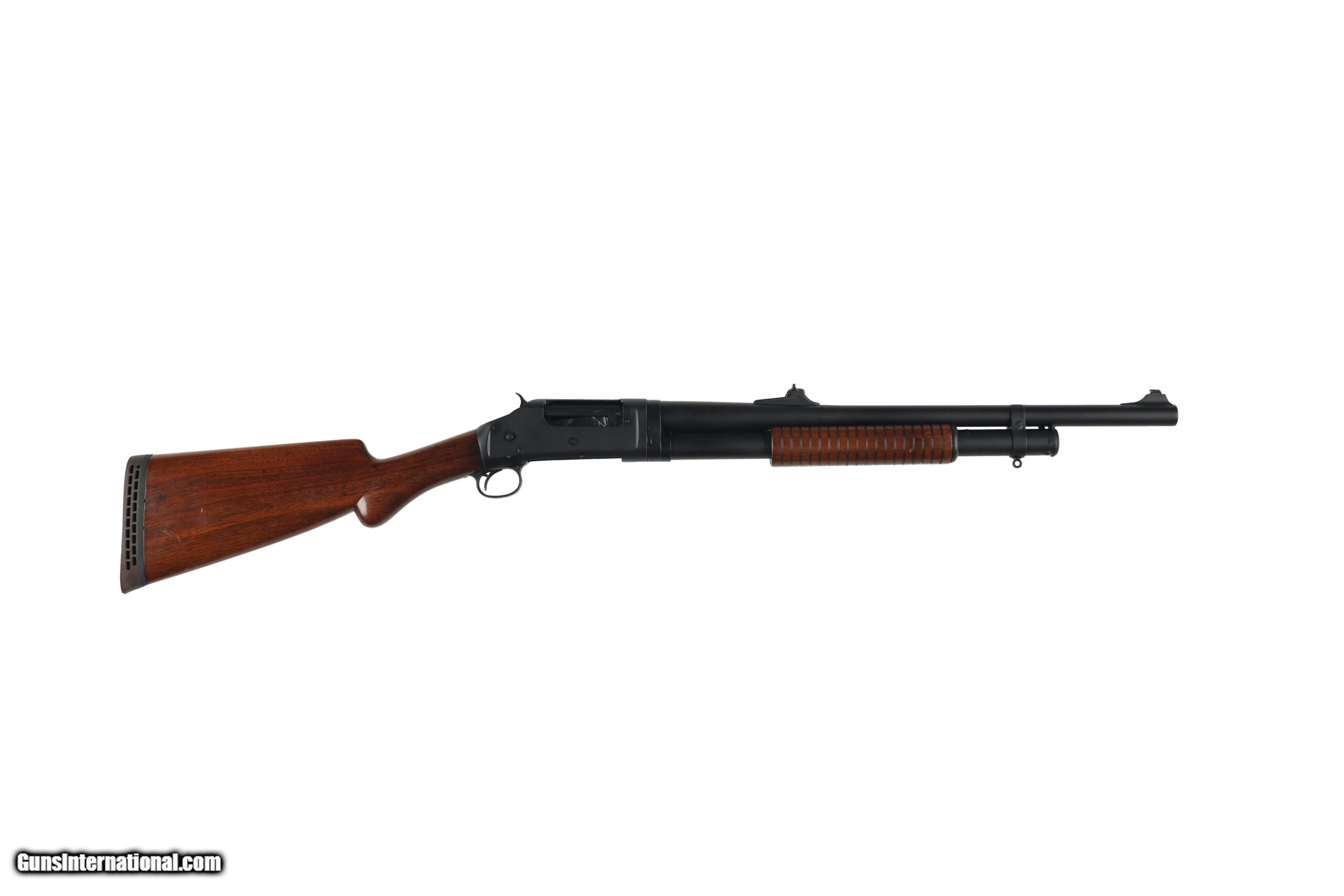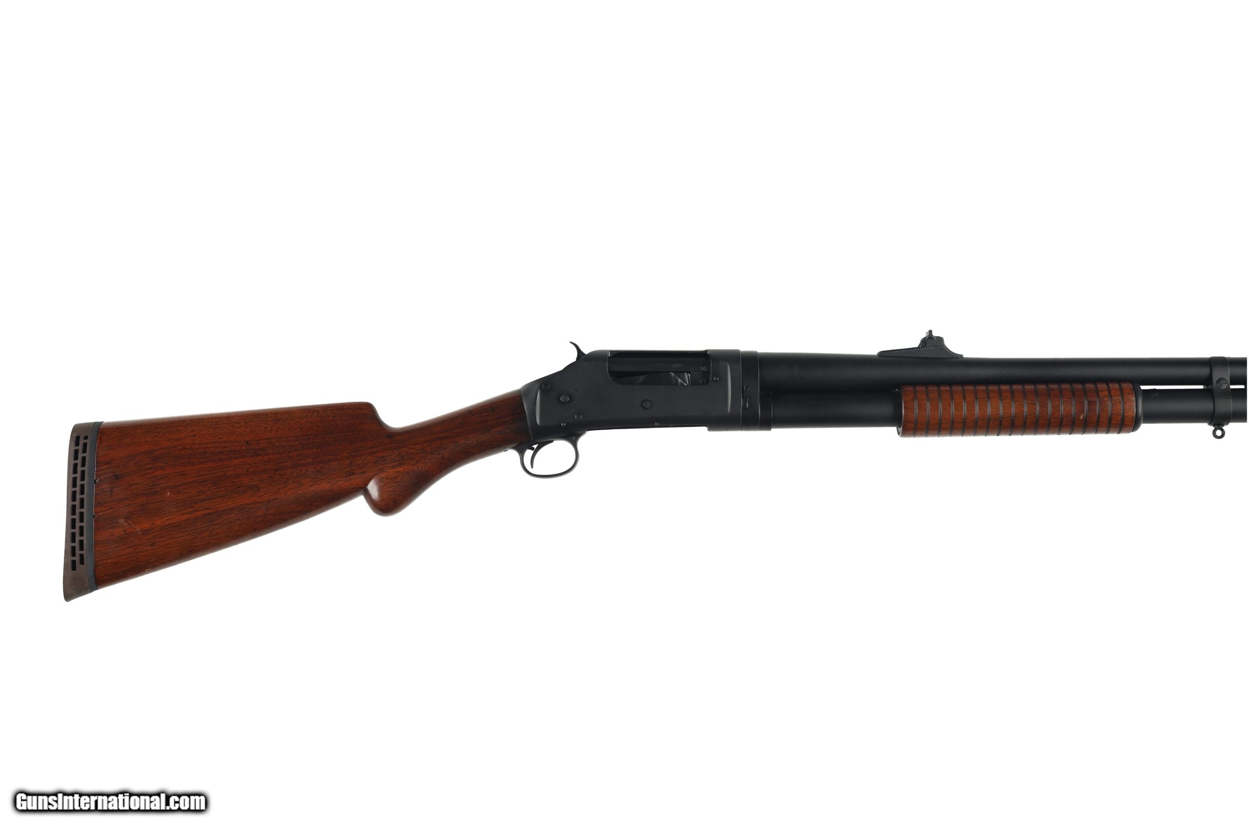 Description: The Winchester Model 1897 was a design improvement of the earlier Browning designed Model 1893, which was made for lower pressure black powder shells. The model 1897 or "97" was one of the most prolific shotguns, with over a million produced by 1957. This example, made in 1946, has been entirely rebuilt as a slug gun, with its barrel cut to just over 20" and what appears to be a set of Remington BDL sights installed across the top of the barrel. the finish also has been entirely redone to a bead blasted and parkerized finish. Manufactured in: USA Hand: Right Hand Action Finish: Parkerized Metal Finish: Refinished Barrel Length: 20 3/4" Barrel Condition: Very Good Stock Finish: Original Stock Condition: Very Good Type of Butt: Pachmayr Vent Pad Pad Thickness: 1" Grip: Round Knob Pistol Grip Forend: Ribbed Manufacturer: Winchester Model: 1897 Chambers: 2 3/4 Condition: Preowned Metal Condition: Very Good Action: Pump Action Triggers: Single Gauge: 12 Gauge Fore End: Ribbed Butt Pad: 1 LOP: 13 1/2 Finish: Refinished Weight: 7 lbs Manufacture Date: 1946 Chokes: Cyl Case: NONE Price: $450.00 Contact Seller |