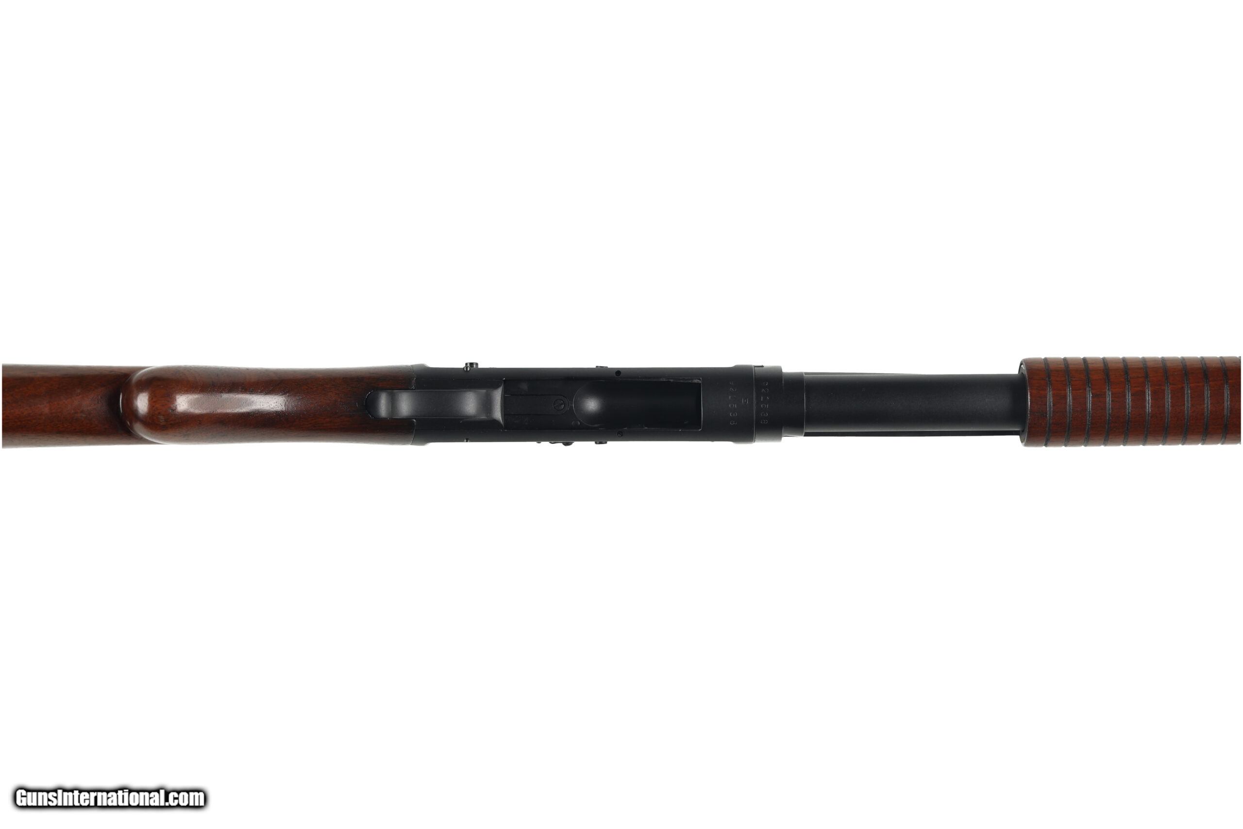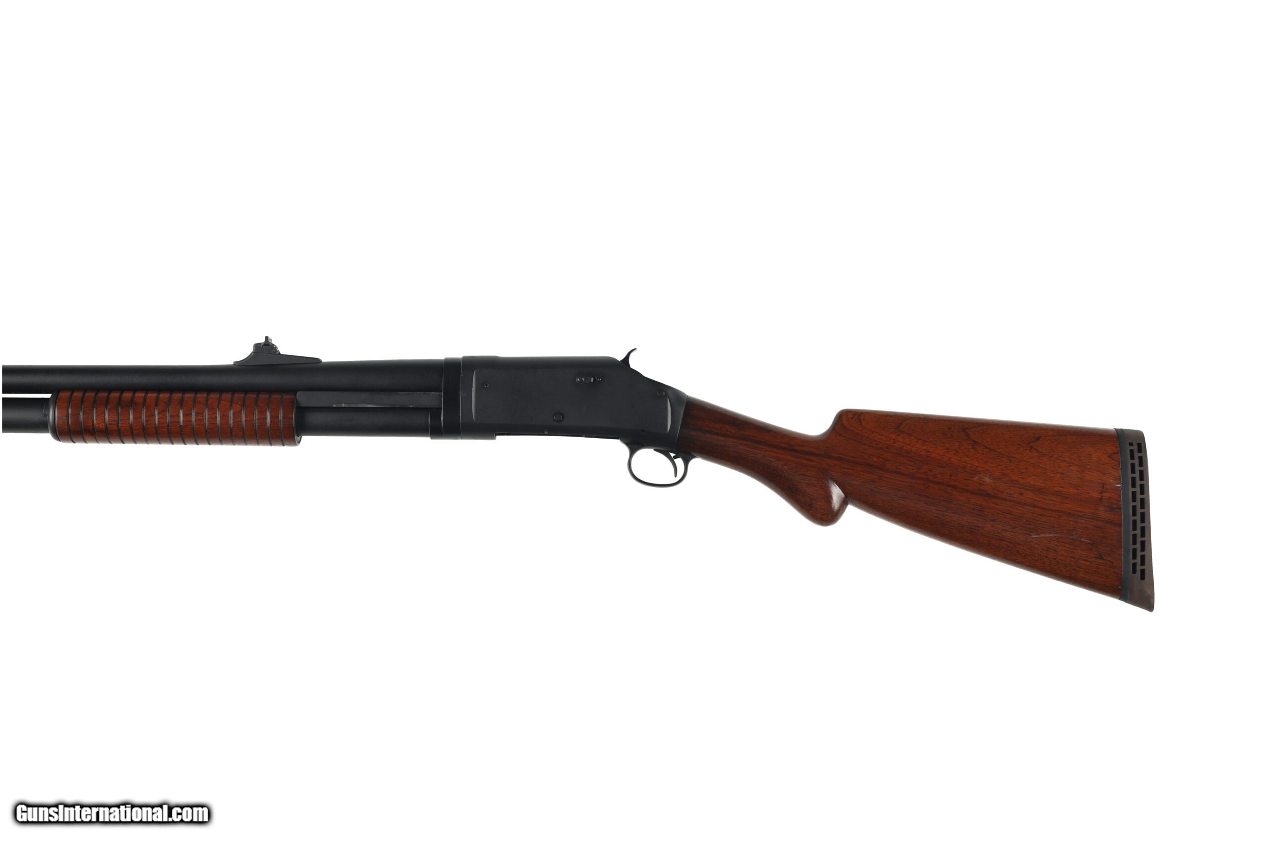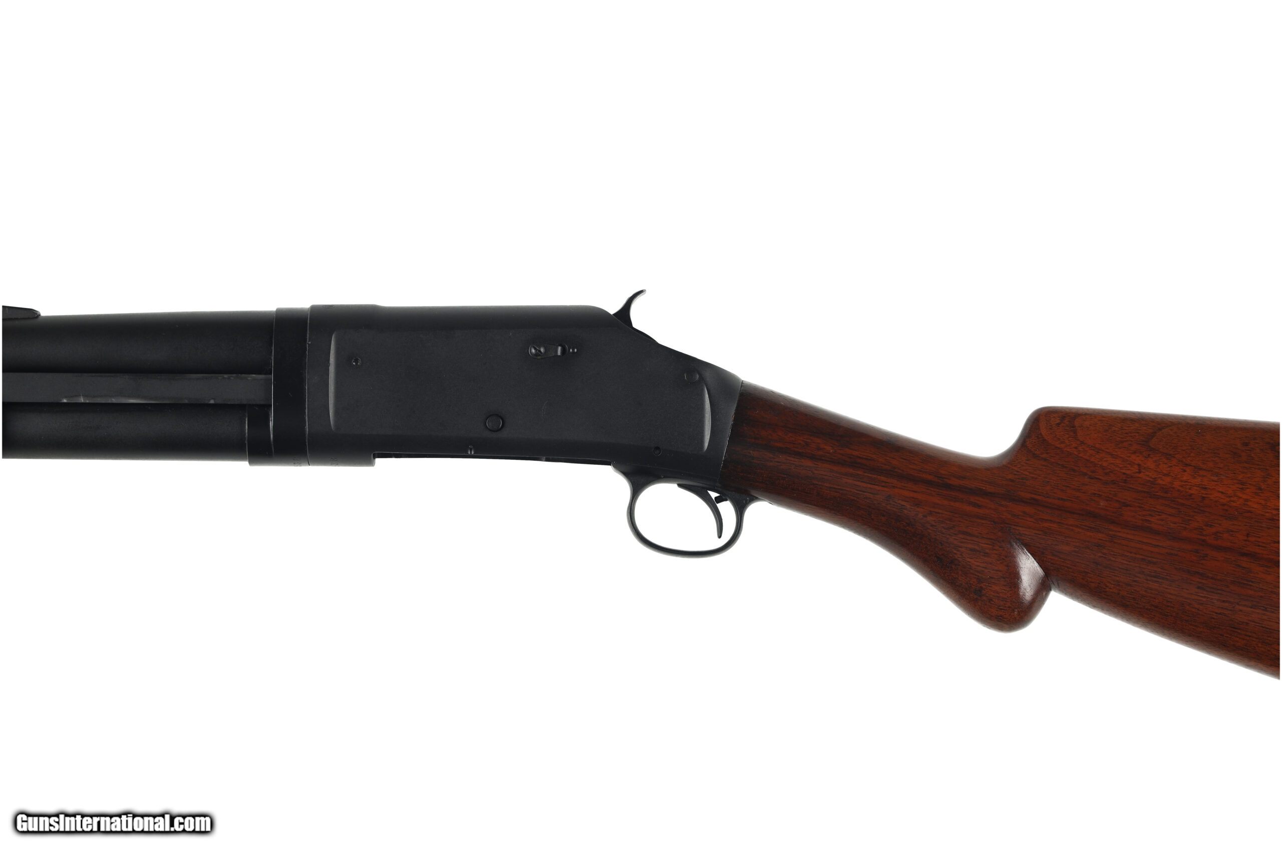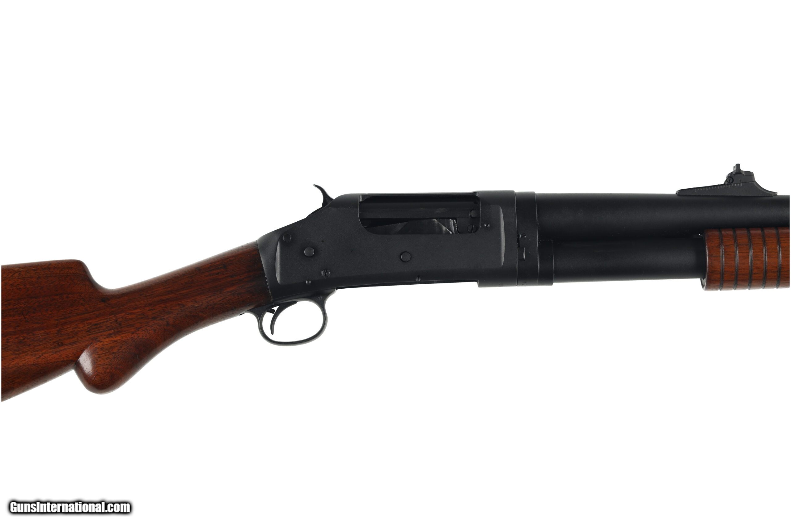 Description: The Winchester Model 1897 was a design improvement of the earlier Browning designed Model 1893, which was made for lower pressure black powder shells. The model 1897 or "97" was one of the most prolific shotguns, with over a million produced by 1957. This example, made in 1946, has been entirely rebuilt as a slug gun, with its barrel cut to just over 20" and what appears to be a set of Remington BDL sights installed across the top of the barrel. the finish also has been entirely redone to a bead blasted and parkerized finish. Manufactured in: USA Hand: Right Hand Action Finish: Parkerized Metal Finish: Refinished Barrel Length: 20 3/4" Barrel Condition: Very Good Stock Finish: Original Stock Condition: Very Good Type of Butt: Pachmayr Vent Pad Pad Thickness: 1" Grip: Round Knob Pistol Grip Forend: Ribbed Manufacturer: Winchester Model: 1897 Chambers: 2 3/4 Condition: Preowned Metal Condition: Very Good Action: Pump Action Triggers: Single Gauge: 12 Gauge Fore End: Ribbed Butt Pad: 1 LOP: 13 1/2 Finish: Refinished Weight: 7 lbs Manufacture Date: 1946 Chokes: Cyl Case: NONE Price: $450.00 Contact Seller |