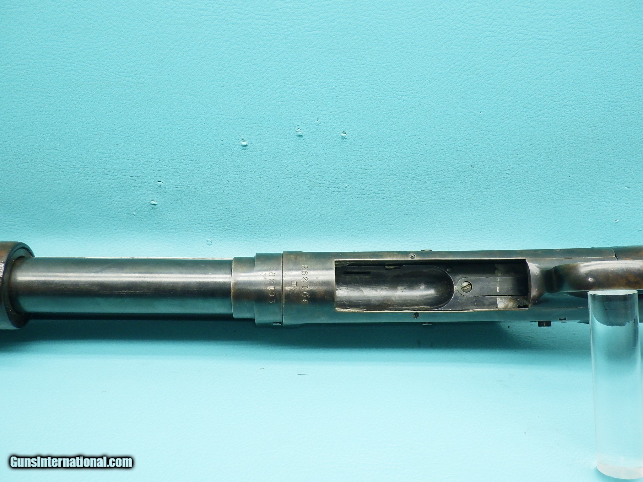 Description: Make: Winchester Model: 97 Finish: Blued Gauge: 12 Chamber length: 2 3/4 inch Action: Pump Barrel length: 18 1/2" (Shortened from it's original length) Bore(s): Shiny Choke(s): cylinder bore LOP: 14 3/8 inch Shock material: Walnut Sights: Front bead MFG Date: 1942 Features: Easy takedown, pistol grip stock, grooved forearm, Riot model apprearance with the shorter barrel, exposed hammer, 6 round magazine tube capacity, and Redhead vented rubber butt pad. Extras: None Condition: The has been refinished with some loss spots. The funiture is in nice condition with no cracks. The butt pad is not original has cracks as well as fitment issues which the photos show. Shipping Cost: $55.00 Tech: JT122023.499 The shotgun functions as it should with a smooth action and strong ejection. Please refer to the photos for the overall condition. FFL is required. SOLD 12-23-23 SOLD Shotgun Gauge: 12 Gauge Manufacturer: Winchester Model: 97 Serial Number: 901298 Barrel Length: 18 1/2 |