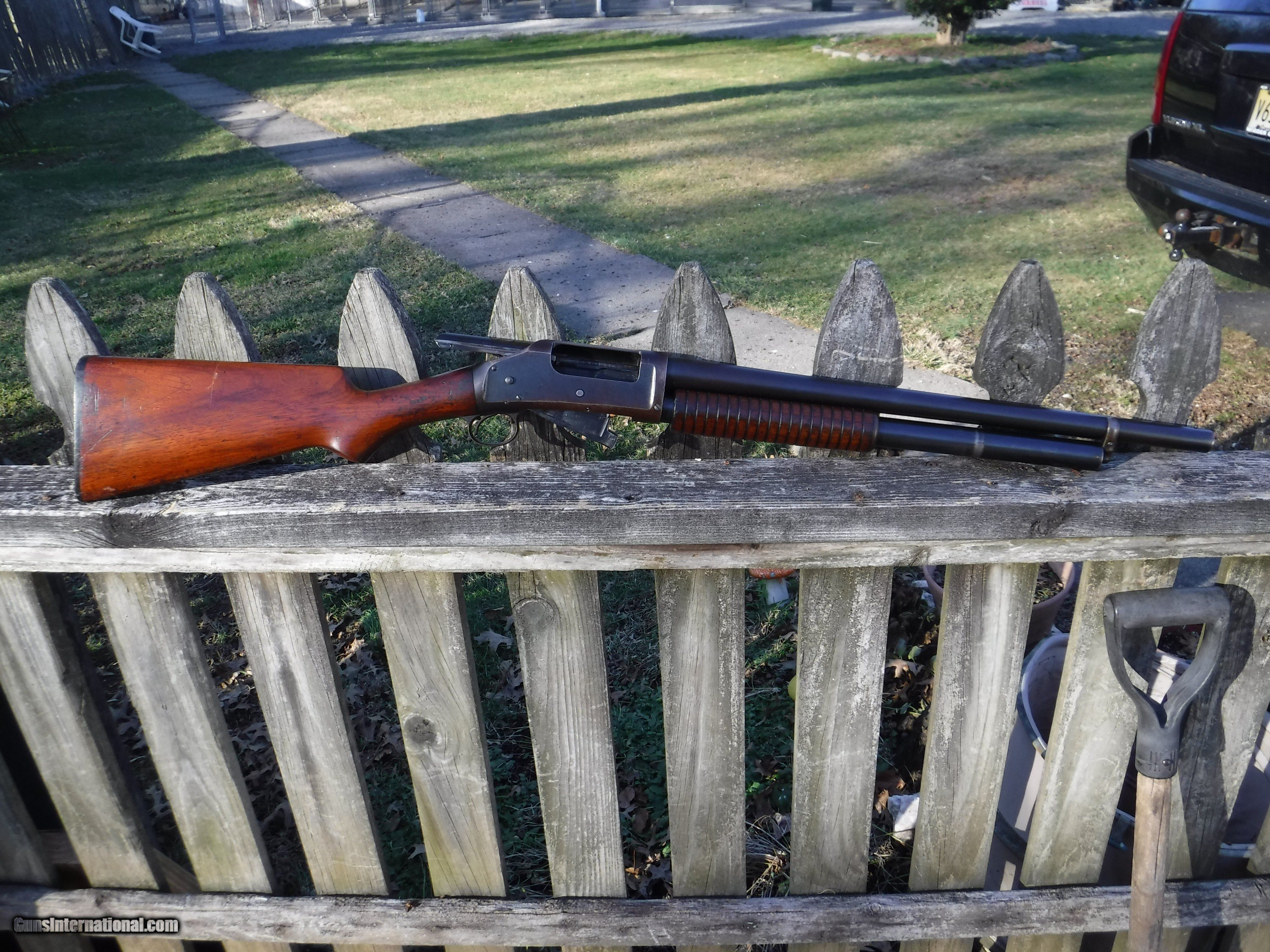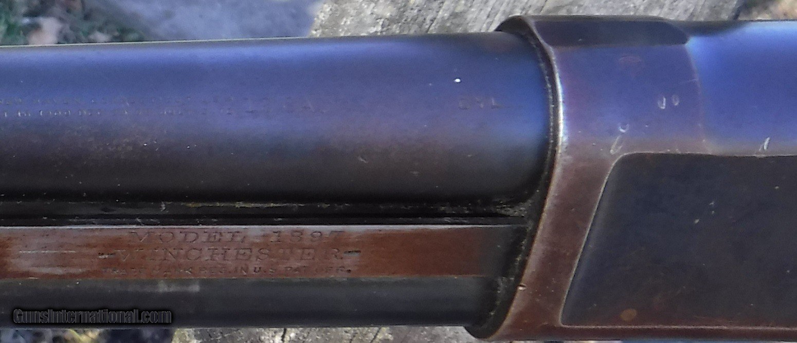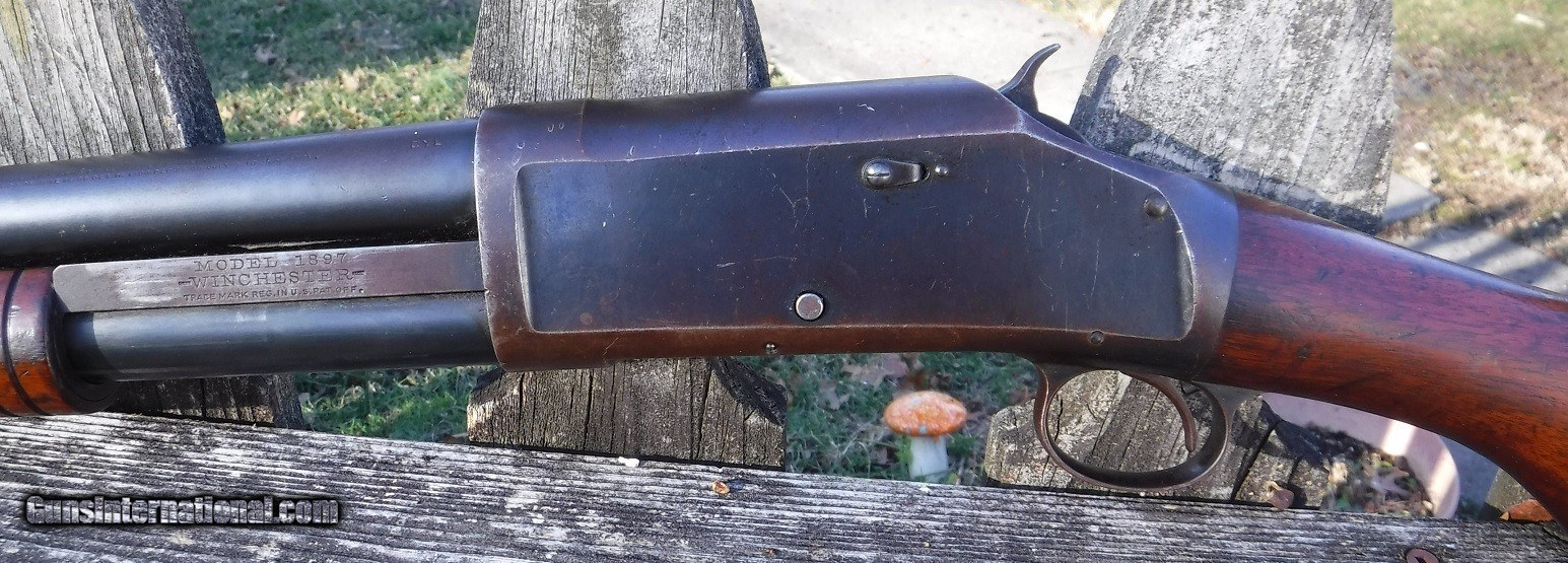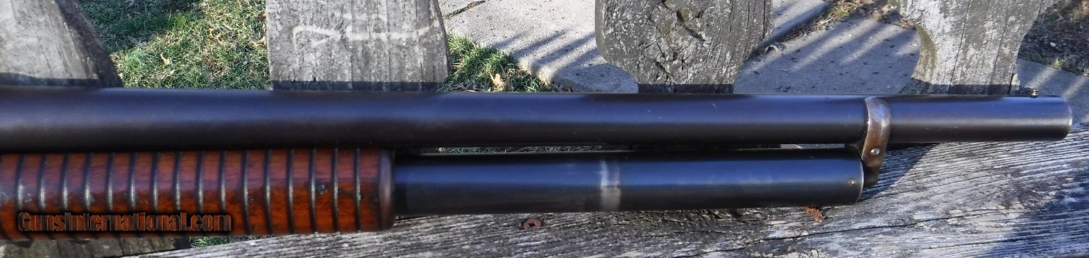 Description: WINCHESTER MODEL 1897 RIOT GUN - 12 GA. 20 INCH BARREL CHOKED CYL. - EARLY SOLID FRAME (NON TAKEDOWN )WEELL USED BUT NEVER MESSED WITH.- ALL ORIGINAL CONDITION - ROUGHLY 70% FINISH REMAINING - SOME PATINA BUT NO HEAVY RUST. - EXCELLENT BORE - SERIAL NUMBER DATES IT APPROXIMATELY 1917 - WELL SSED BUT NOT MESSED WITH. SOLD |