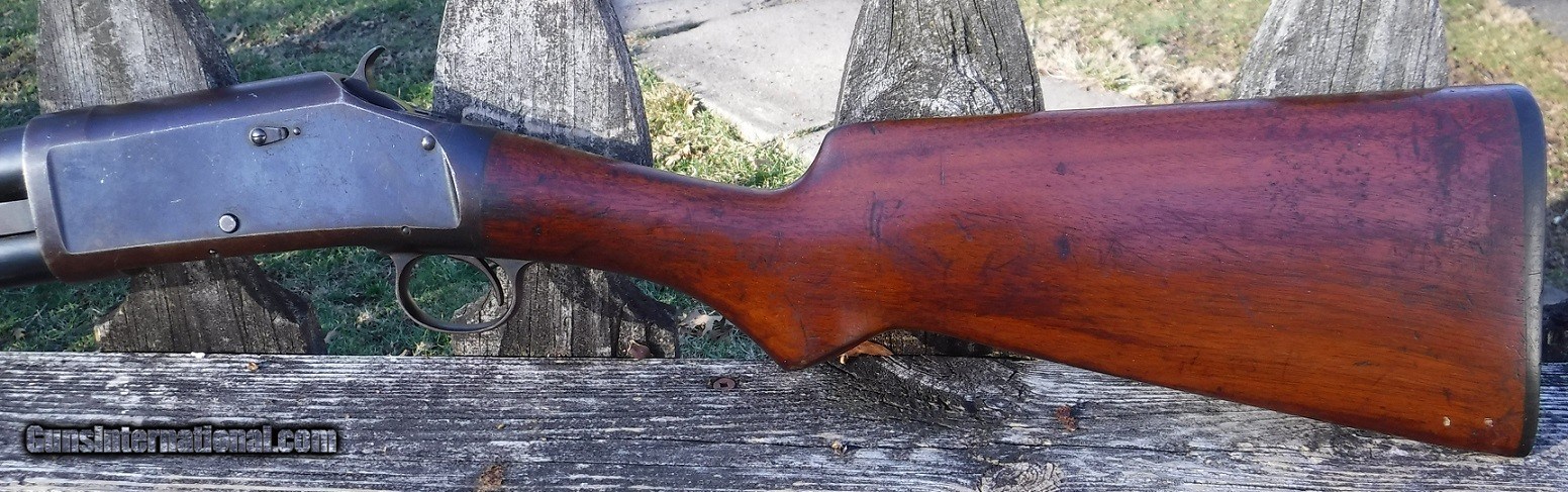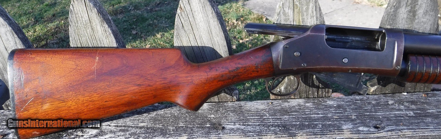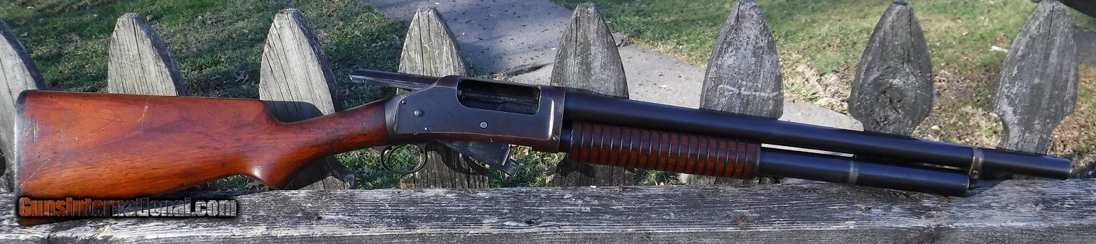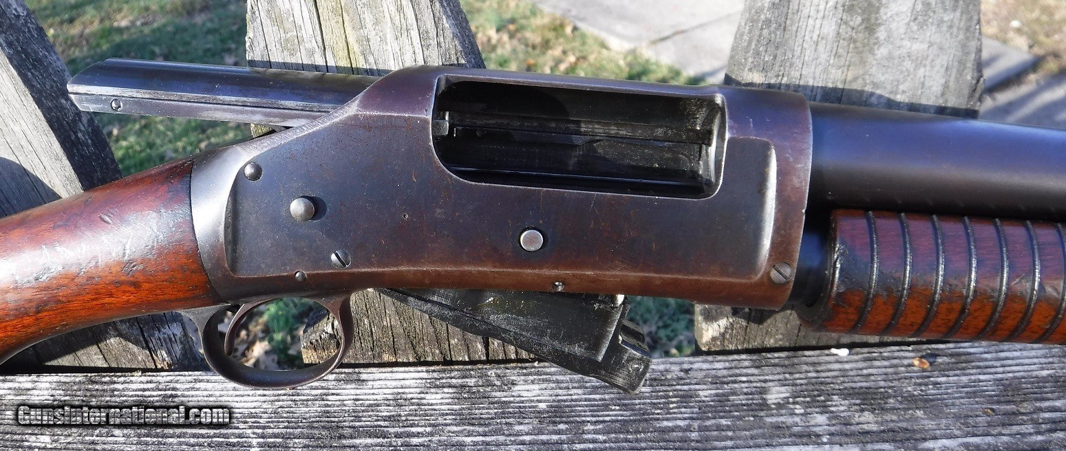 Description: WINCHESTER MODEL 1897 RIOT GUN - 12 GA. 20 INCH BARREL CHOKED CYL. - EARLY SOLID FRAME (NON TAKEDOWN )WEELL USED BUT NEVER MESSED WITH.- ALL ORIGINAL CONDITION - ROUGHLY 70% FINISH REMAINING - SOME PATINA BUT NO HEAVY RUST. - EXCELLENT BORE - SERIAL NUMBER DATES IT APPROXIMATELY 1917 - WELL SSED BUT NOT MESSED WITH. SOLD |