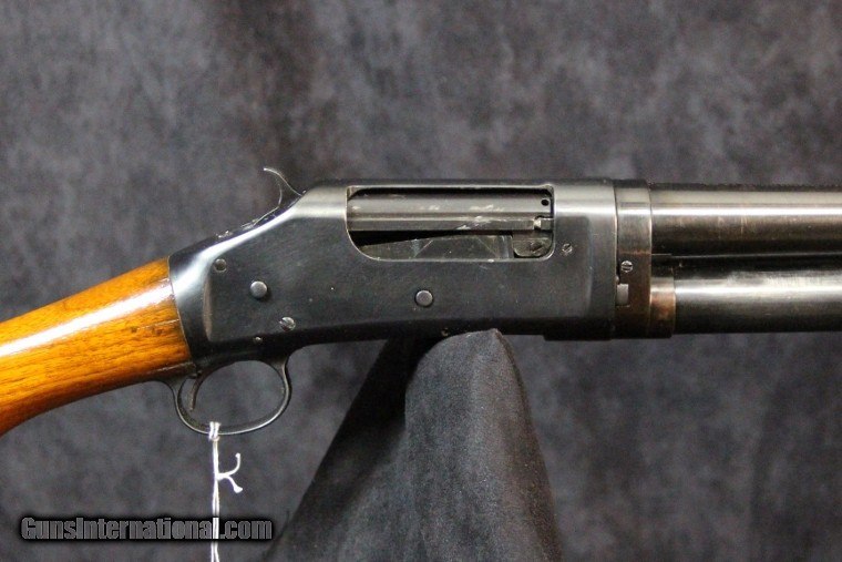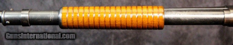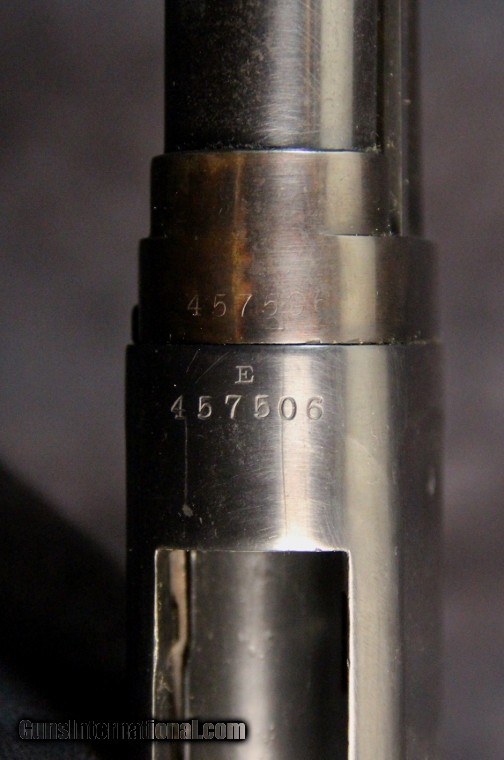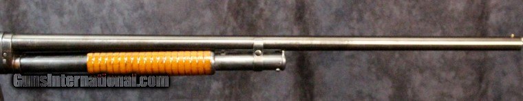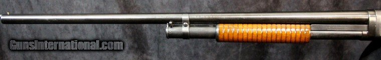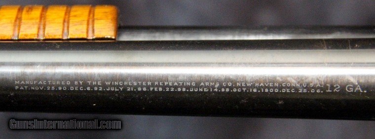 Description: 12ga, #457506, full choke, 30 inch barrel, blue finish, walnut stock and forearm, 1911. Condition: clean bright bore, 99% reblue remains,.stock has a repaired crack on the right sdide of the comb, new coat of finish on stock and forearm, excellent mechanically, excellent marks. SOLD Curio/Relic: Yes |