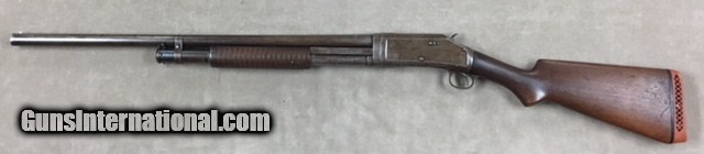 Description: This old Pre War Winchester Model 97 is a 12 Ga gun with an ORIGINAL 2.5 inch CHAMBER, mostly brown patina metal with some original blue on the magazine tube. Never refinished. Bore is excellent. Barrel is marked full and probably started life as a 30 inches but now measures 26 inches. Wood is all original with most finish worn and stock has a pad attached that is not properly fitted. Length of pull is 13 inches to the end of the wood - with a proper pad fitted would be 14 inches. Gun functions fine and appears to be totally original except for the ugly pad it has now. Would be a geat gun to turn into a Cowboy Action gun! And, priced right! SOLD Curio/Relic: Yes |