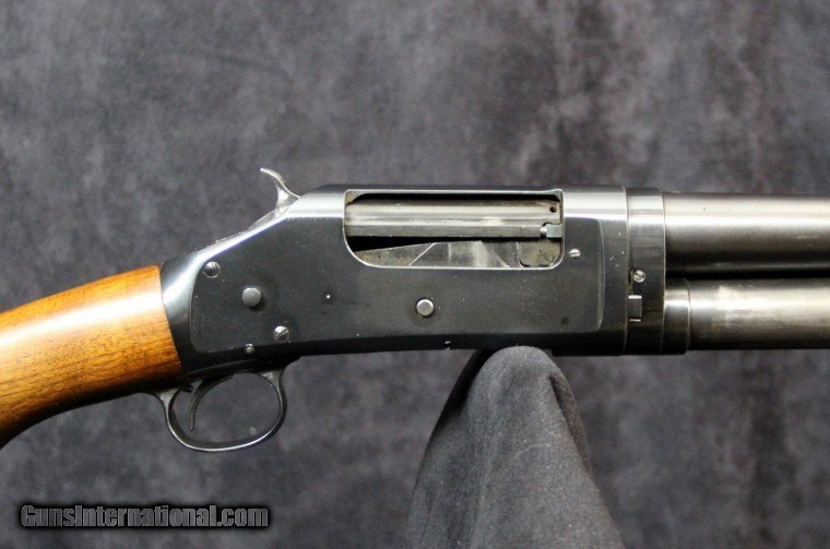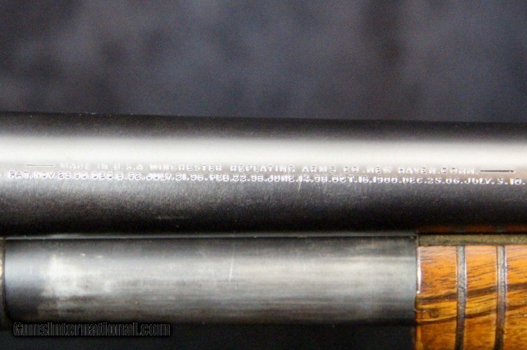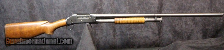 Description: 12ga, #923321, 30 inch barrel, full choke, 2 3/4 inch chamber, blue finish, walnut stock and forearm, 1947. Condition: bright bore, 98% blue overall excepting slide wear on magazine tube, excellent wood with some use dings, excellent mechanically, excellent marks. SOLD Curio/Relic: Yes |