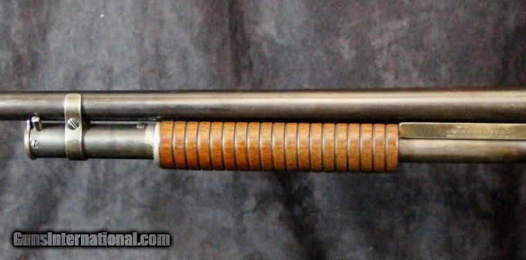 Description: 12ga, #778551, 32 inch barrel, blue finish, walnutstock and forearm, Red Head butt pad, LOP with pad 14 inches, 1927 Condition: bright smooth bore, 95% barrel blue with use scratches, 95% receiver blue thinning, excellent wood, excellent mechanically, excellent marks. SOLD Curio/Relic: Yes |