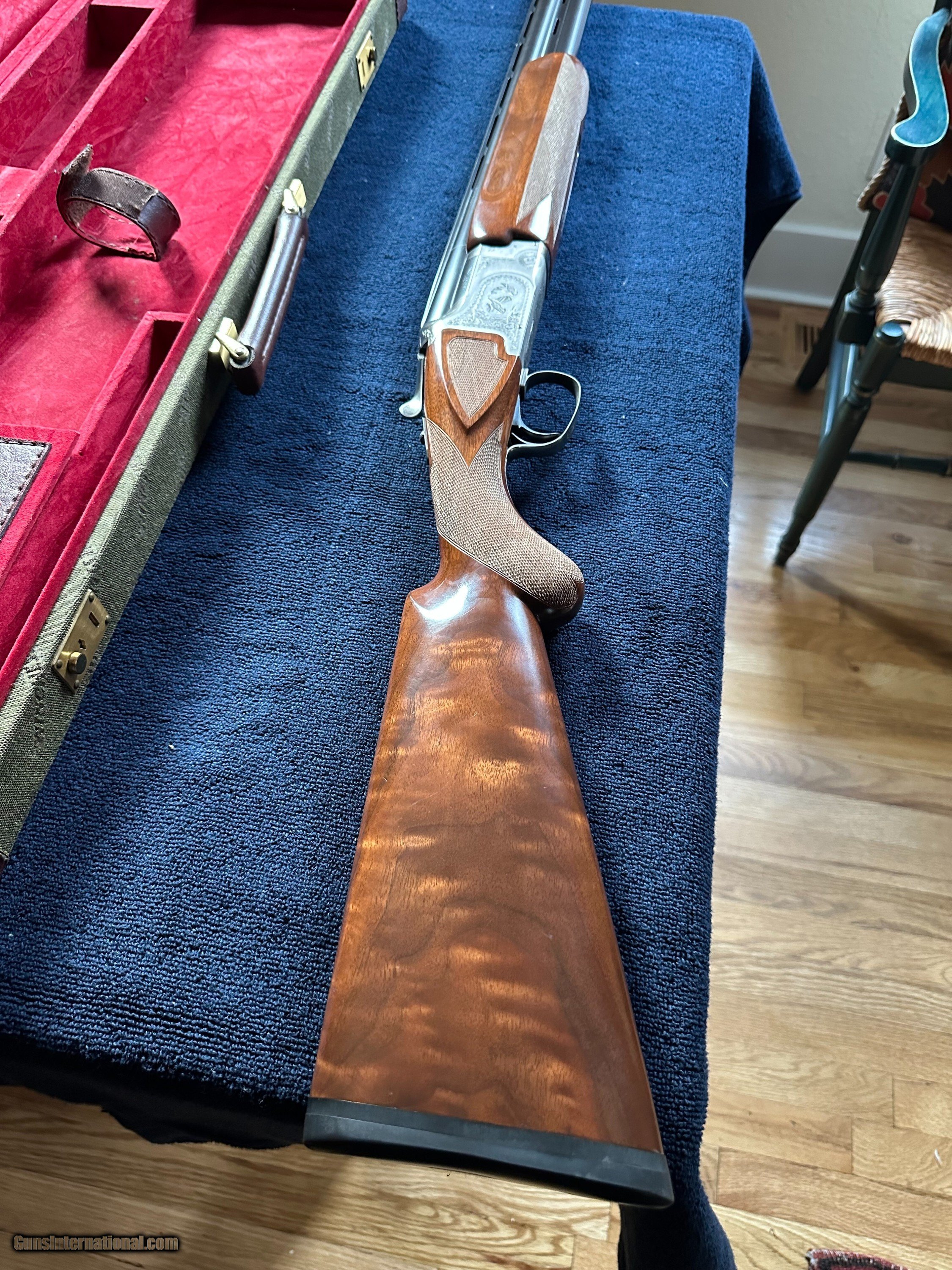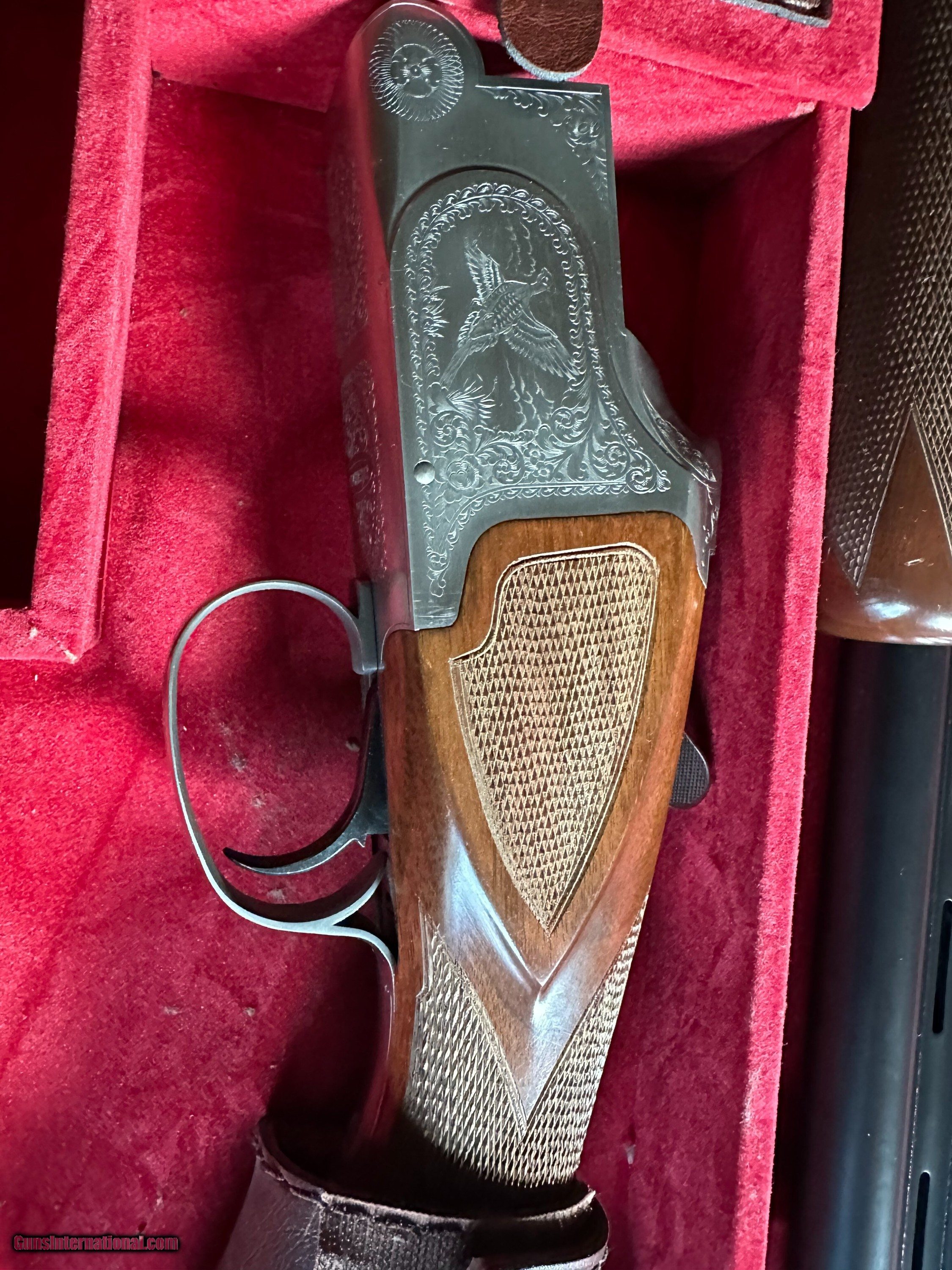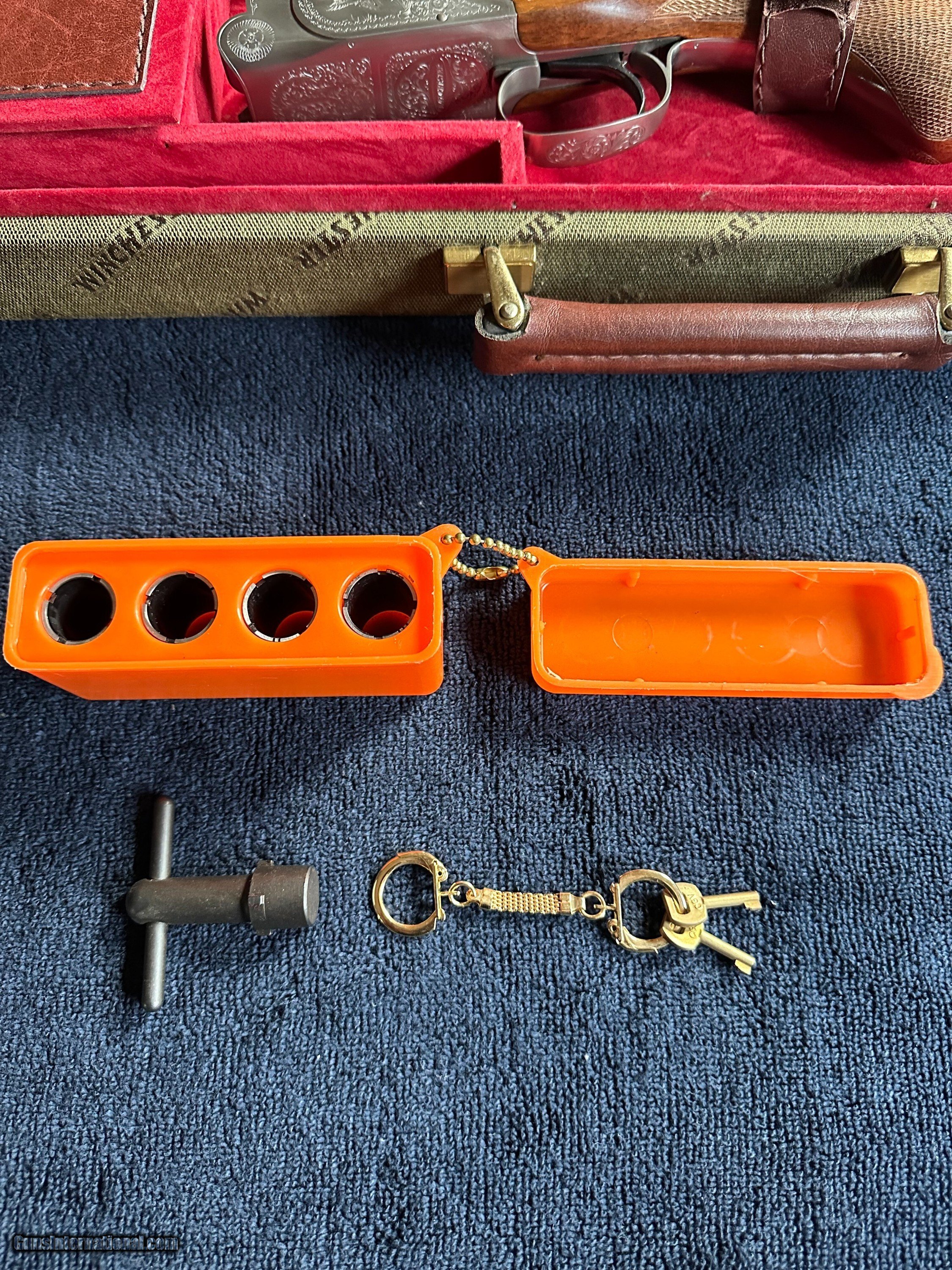Description: Winchester 101 Pigeon Grade lightweight, 12 ga, 27 barrels, highly figured walnut stock, shows very little use, 99% gun as in mint condition. Comes with the original Winchester case, and extra chokes. Shotgun Gauge: 12 Gauge Manufacturer: Winchester Model: 101 pigeon grade Bore Info: 12 ga Chambers: 2-3/4 Ejectors: Yes Condition: As New Metal Condition: As New Wood Condition: Mint Bore Condition: Clear Barrels: 27 inch Barrel Type: O/U Action: Pigeon Grade Triggers: Single Stock: Round Knob Rib: Ventilated Finish: oil finish Engraving: pigeon Extras: total of 6 chokes Case: yes Item Location: Oregon Price: $3,150.00 Buy Now Contact Seller |