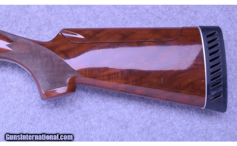 Description: Wood showsn a few light use/storage marks. Blue and bore remain excellent. Japan manufacture. No box. SOLD Manufacturer: S/N 478XXXE Caliber Info: 12 GA Chambers: 2 3/4 Metal Condition: Excellent Wood Condition: Very Good Bore Condition: Excellent Barrels: 34 Triggers: Factory Stock: Checkered Walnut Pistol Grip with Adjustable Comb Stock Dimensions: 14 1/2" LOP Fore End: Checkered Walnut Butt Pad: Black Vented Rubber Weight: 9 LB Sights: White Front Bead with White Mid-Bead Chokes: Choke Tube - Improved Modified Item Location: Wheeling, WV |
