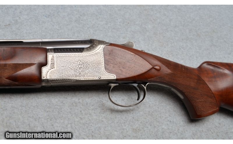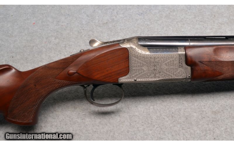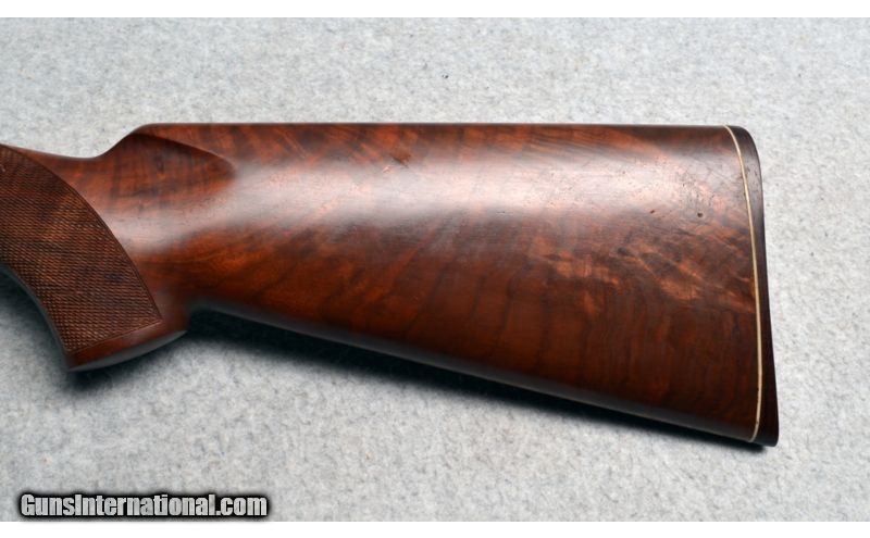 Description: Winchester has been a producer of high quality, innovative firearms since its very founding in the mid 1880s. This is a Grand European model, which features intricate metal engraving, fine wood grain, and polished blued barrels. SOLD Manufacturer: K441216 Caliber Info: 12 GA Chambers: 2 3/4 Inch Metal Condition: Very good with few handling marks Wood Condition: Very good with few handling marks Bore Condition: Bright and shiny. Barrels: 27 Triggers: Factory Stock: Checkered Walnut Stock Dimensions: 14.25 inch LOP, 1.75 inch DAC, 2 inch DAH Fore End: Checkered Walnut Butt Pad: Checkered wood butt plate Weight: 8 lbs. 5 oz. Sights: White front and mid bead Chokes: Fixed Item Location: Hazelwood, MO |